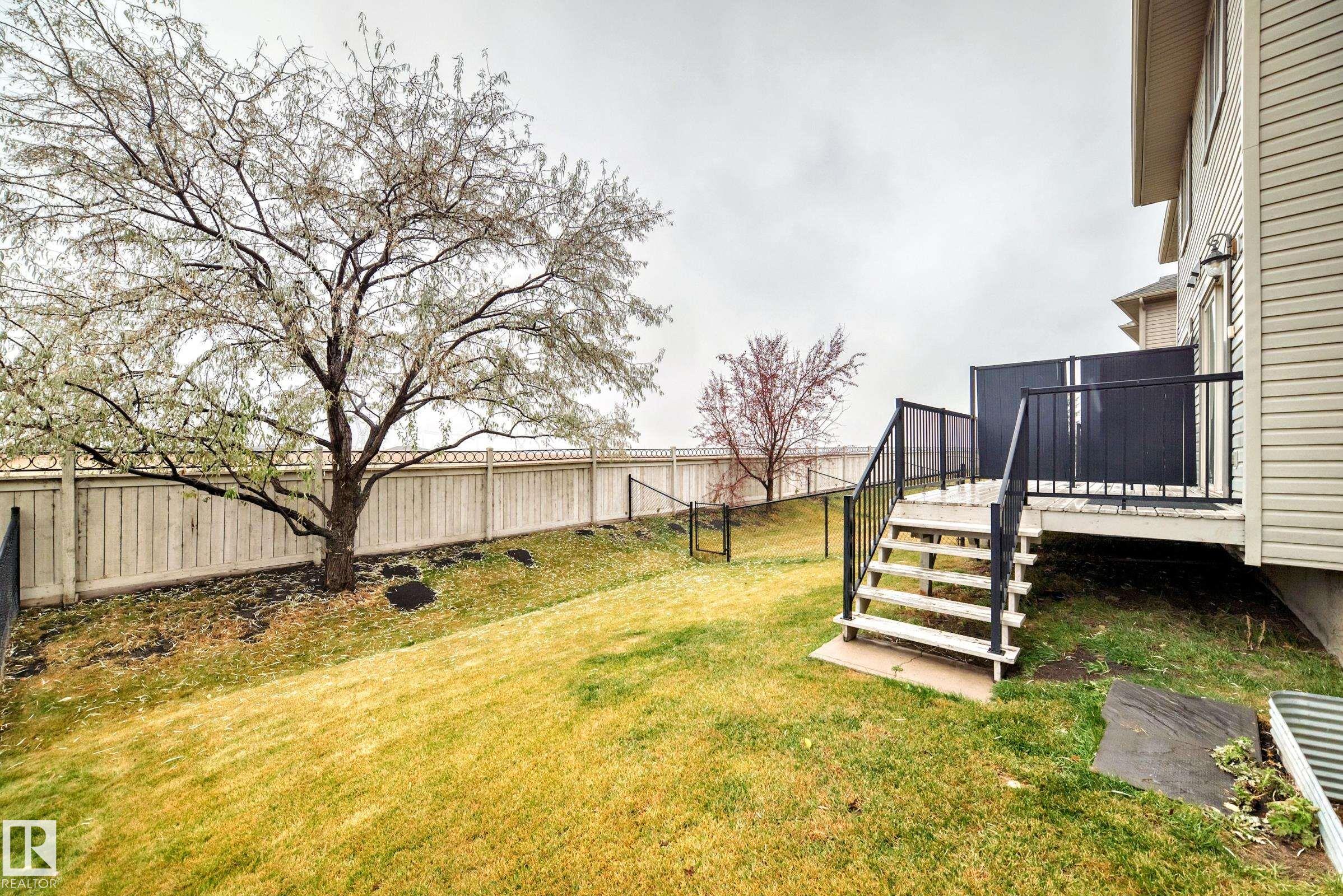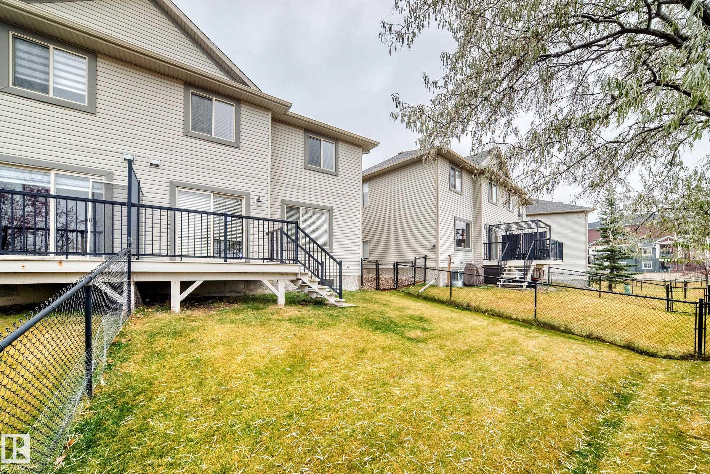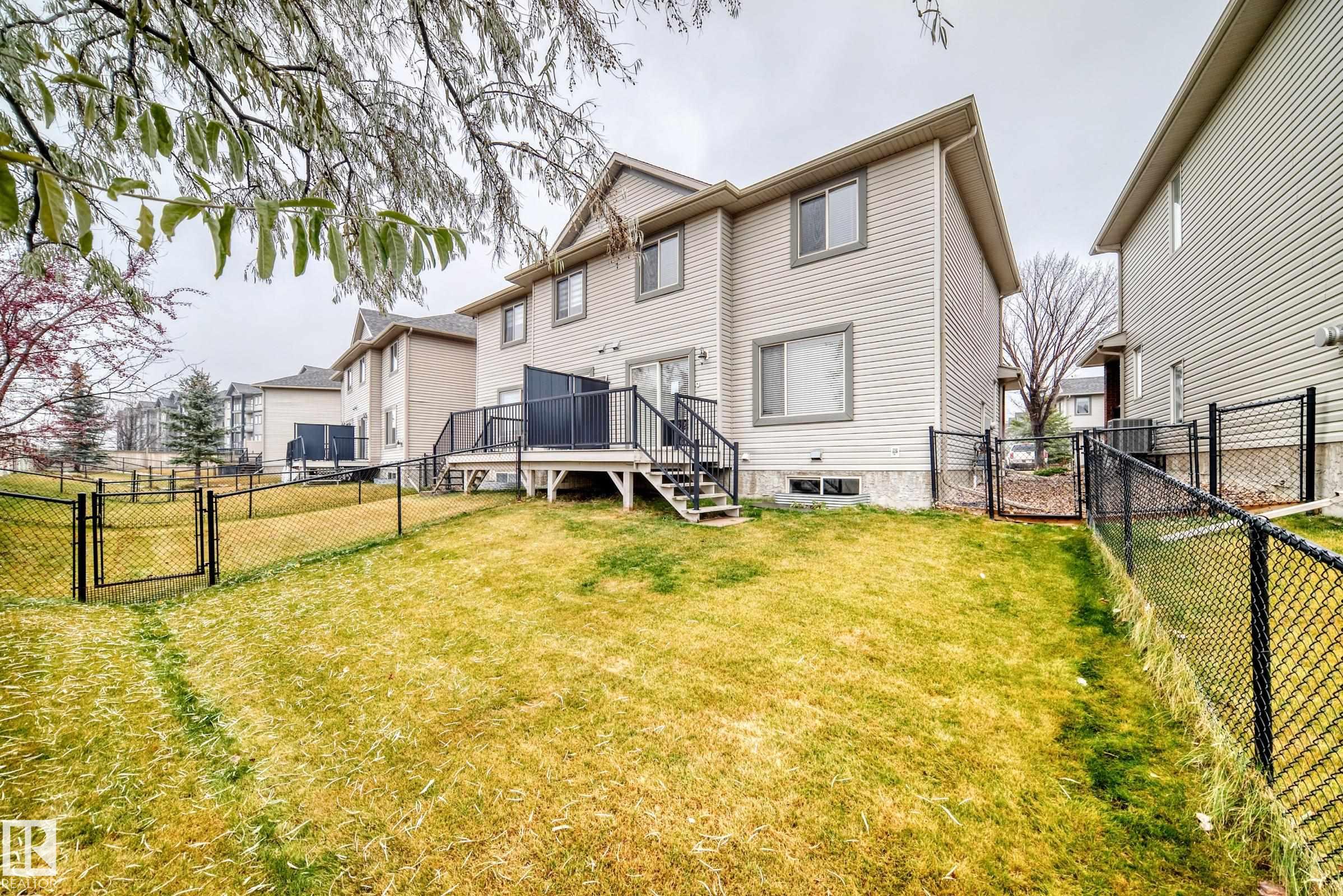 Best location in complex backing onto green space and easy access to Anthony Henday! This great open plan comes complete with Double attached garage, deck, fence, landscaping and ground maintenance, 3 bedrooms plus den,2.5 bathrooms, all appliances and all window coverings. Main floor features: spacious foyer, great room, dining room, kitchen w/raised eating bar & walk-in pantry, maple colored cabinets, tile backsplash. The upper level features: Spacious Master bedroom with large double closet and 4 piece ensuite with tub and shower. The 2nd and 3rd bedrooms are also located on the upper level along with another 4 piece bath. This unique plan boasts a den/flex area on the second floor. . Enjoy maintenance-free living at its best! MOVE IN READY..
