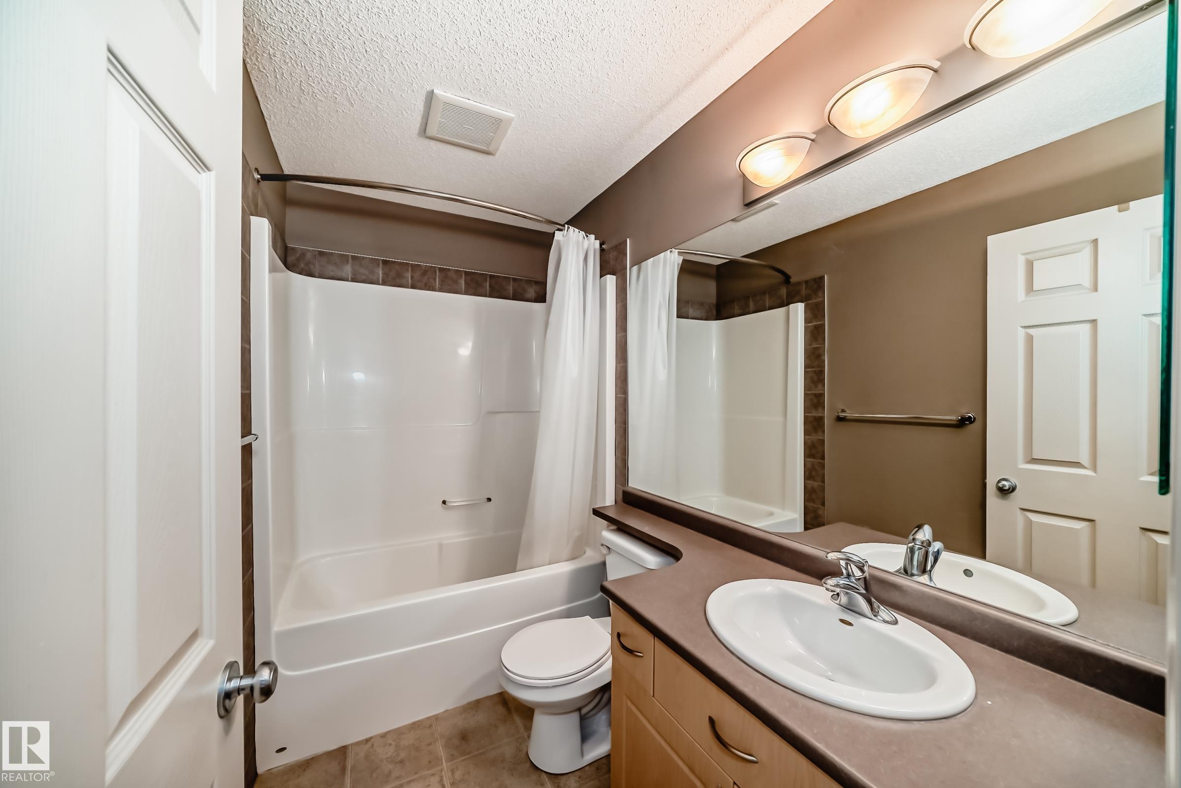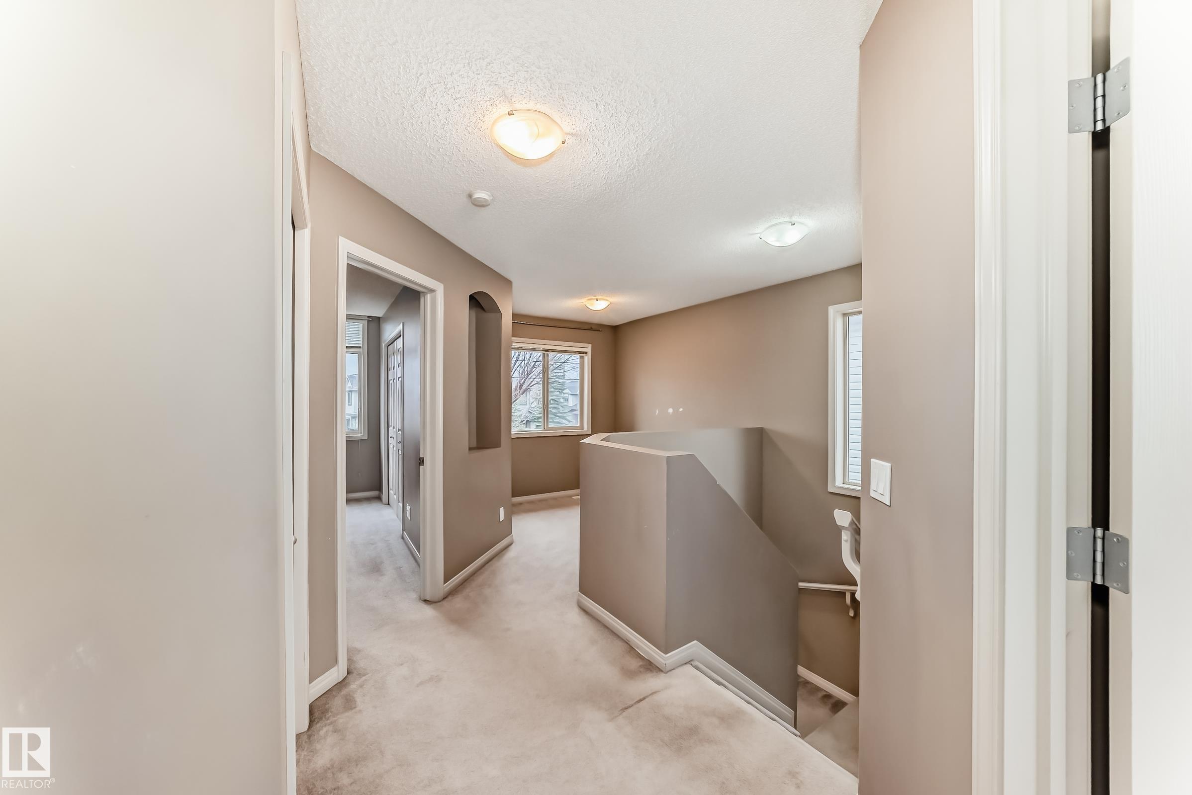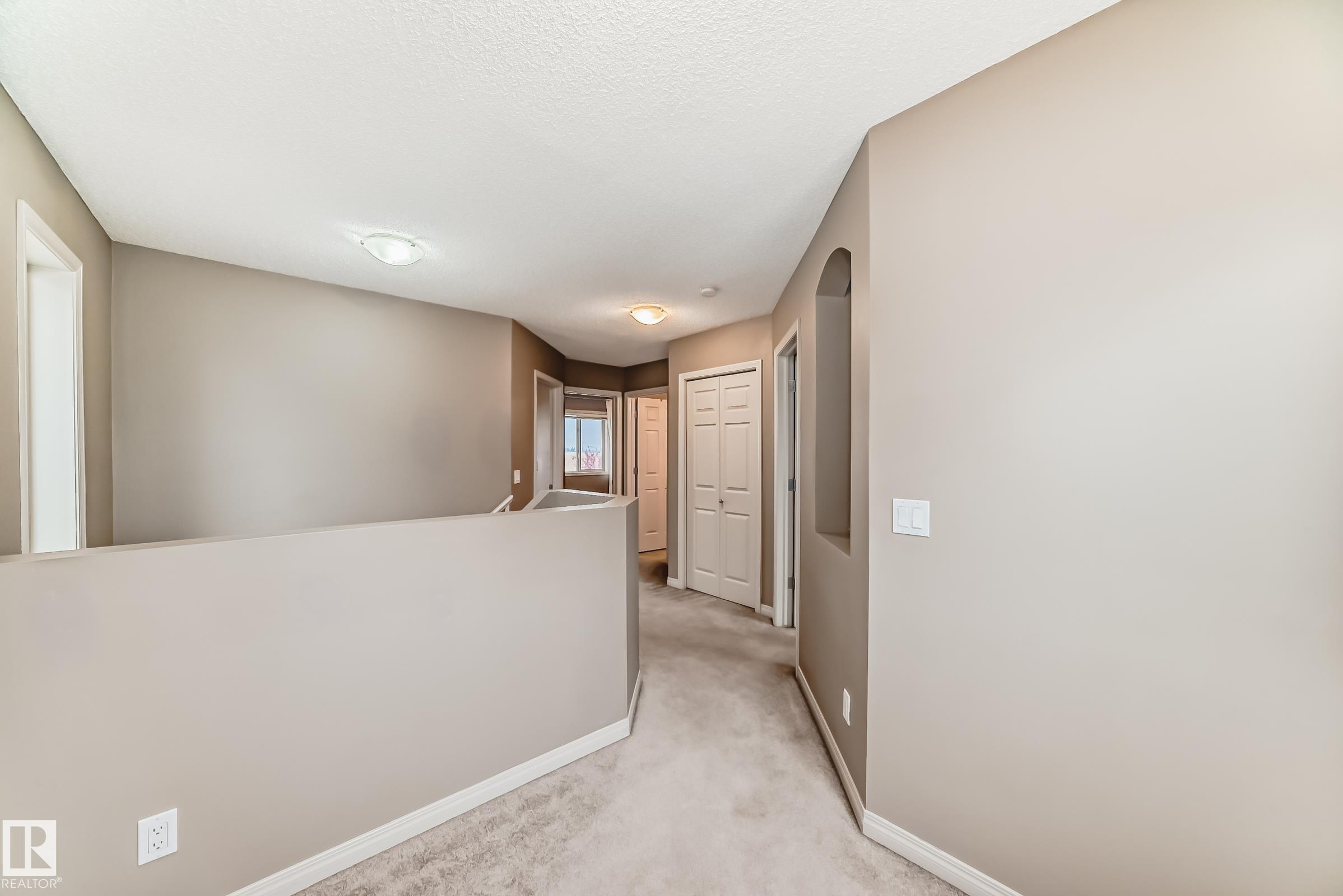 Best location in complex backing onto green space and easy access to Anthony Henday! This great open plan comes complete with Double attached garage, deck, fence, landscaping and ground maintenance, 3 bedrooms plus den,2.5 bathrooms, all appliances and all window coverings. Main floor features: spacious foyer, great room, dining room, kitchen w/raised eating bar & walk-in pantry, maple colored cabinets, tile backsplash. The upper level features: Spacious Master bedroom with large double closet and 4 piece ensuite with tub and shower. The 2nd and 3rd bedrooms are also located on the upper level along with another 4 piece bath. This unique plan boasts a den/flex area on the second floor. . Enjoy maintenance-free living at its best! MOVE IN READY..