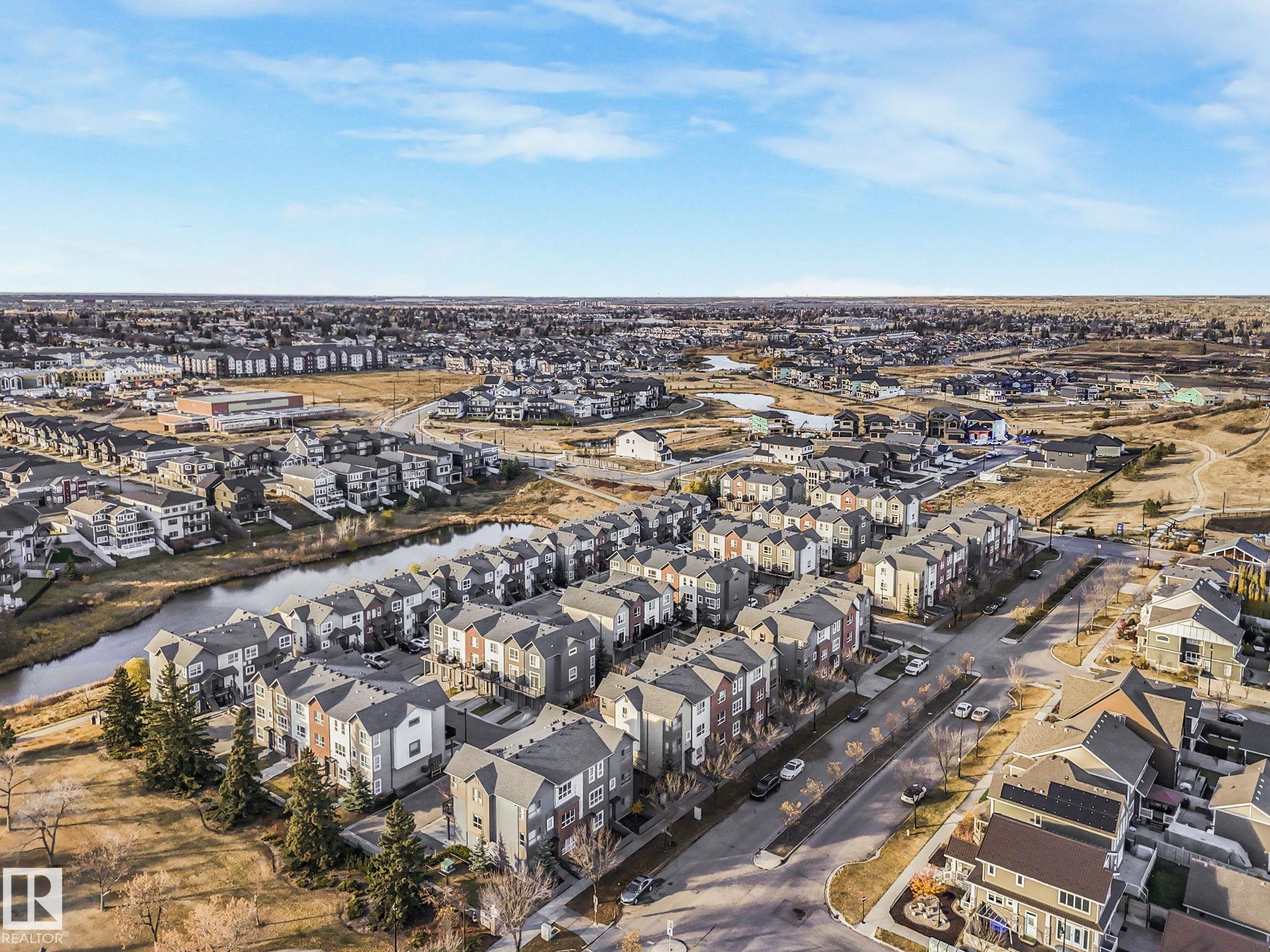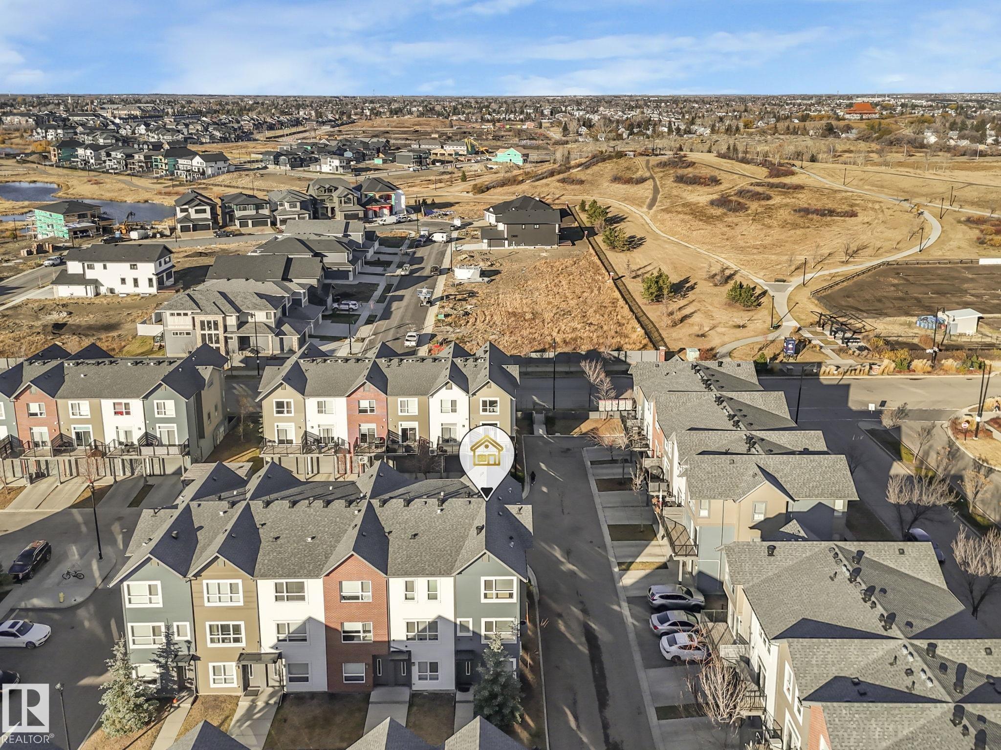 Welcome to this spacious and modern 3-story END UNIT townhome in the centre of Griesbach with AC! Stepping inside, everything you are looking for in your next home is here. On the lower level is a den, a 2-piece bathroom, storage, and access to your OVERSIZED SINGLE ATTACHED GARAGE! Upstairs is the main living area, greeted with the kitchen with quartz countertops, S/S appliances, and the centre island as the focal point. From the kitchen is direct access to your private BALCONY! Situated is the dining room & living room with massive windows bringing in tons of natural light. Upstairs are 2 well-sized bedrooms. The primary bedroom offers direct access to the 4-piece ensuite and HIS & HERS closets. On the other side of the home is the second bedroom separated by the shared 4 pc bathroom and a second flex/den space on the upper floor! Located 15 mins from downtown, nearby schools, walking trails, and shopping along 97 ST & Northgate Centre. Professionally managed complex with LOW CONDO FEES of $318/mo.