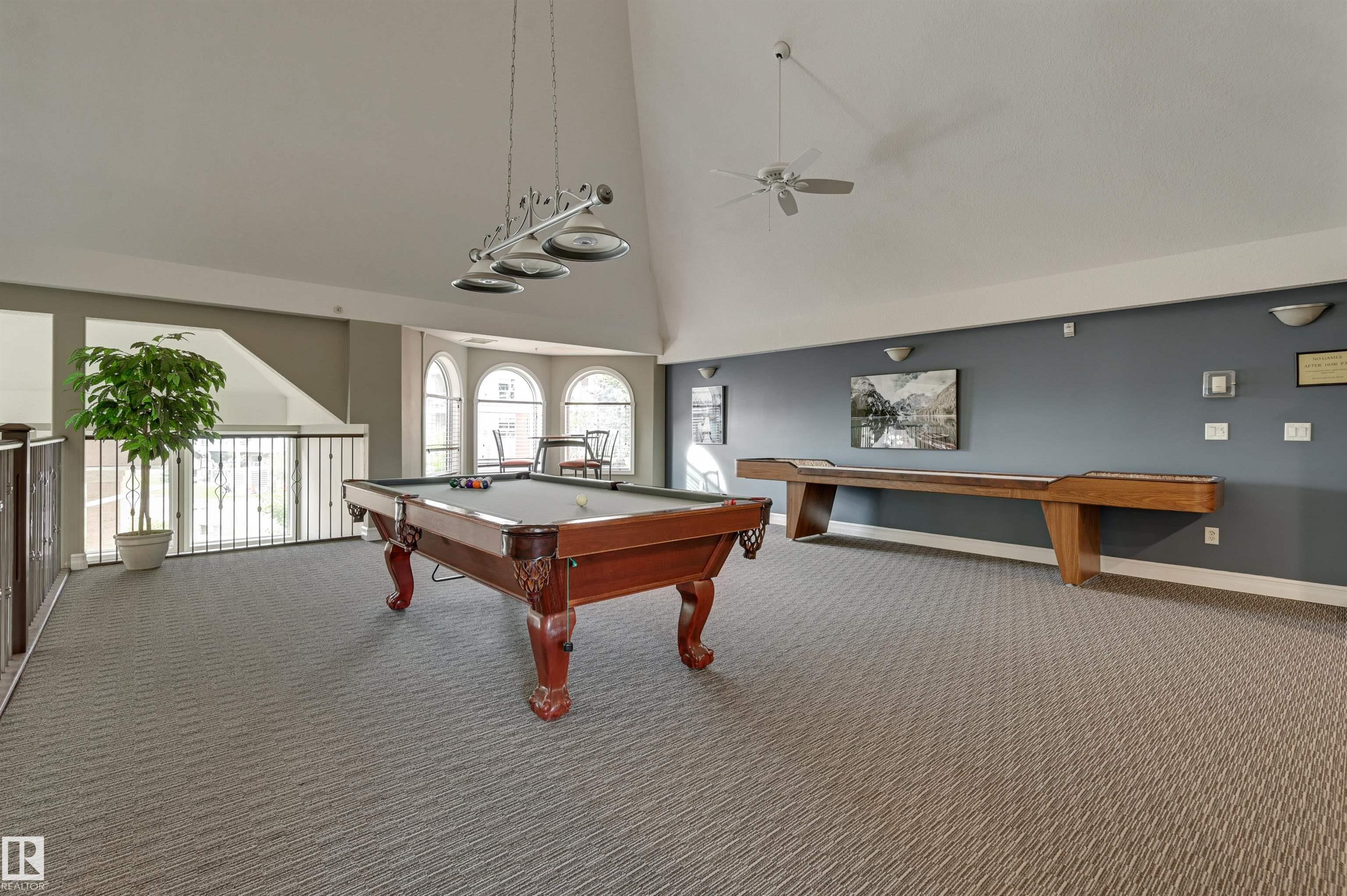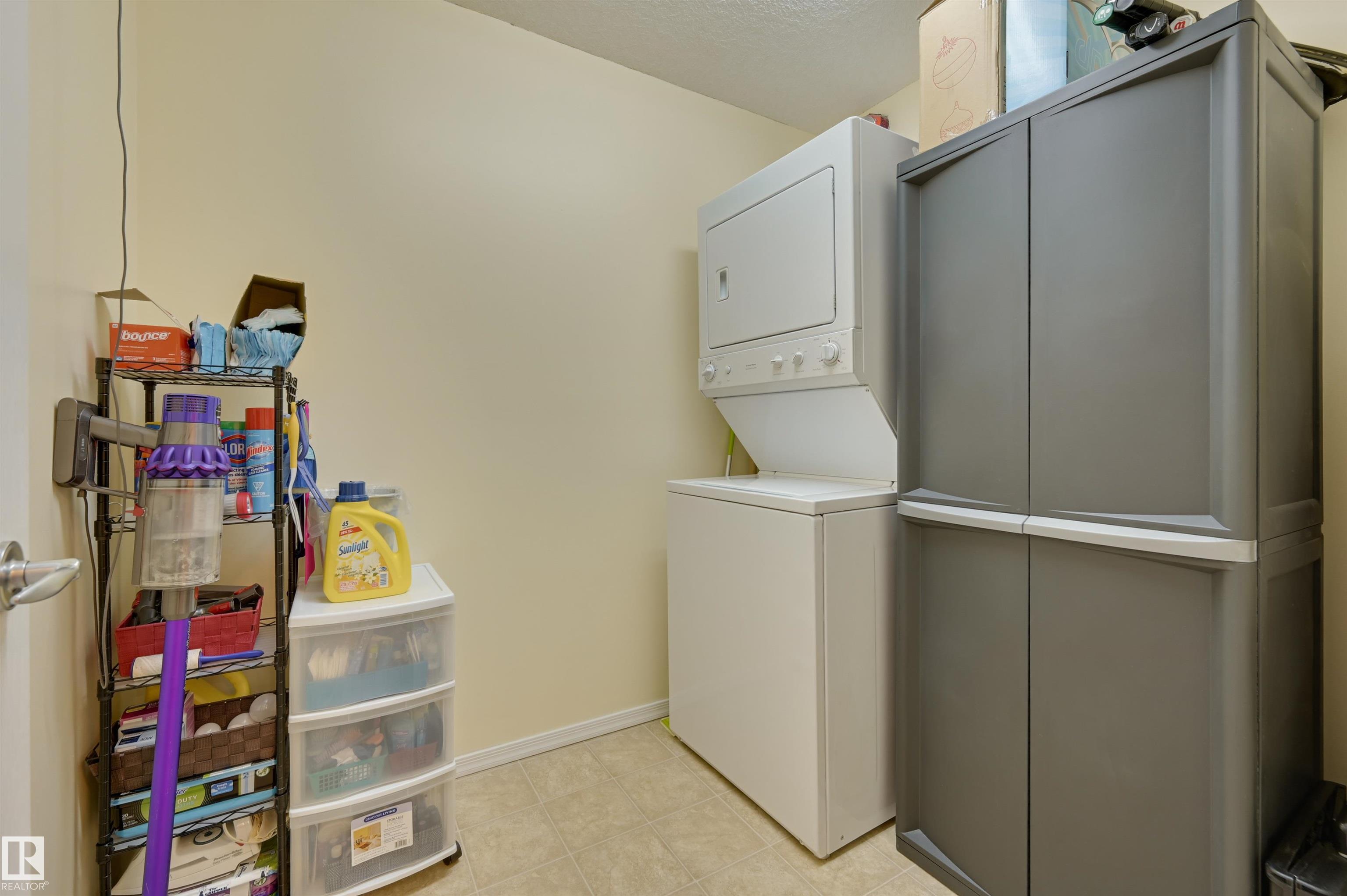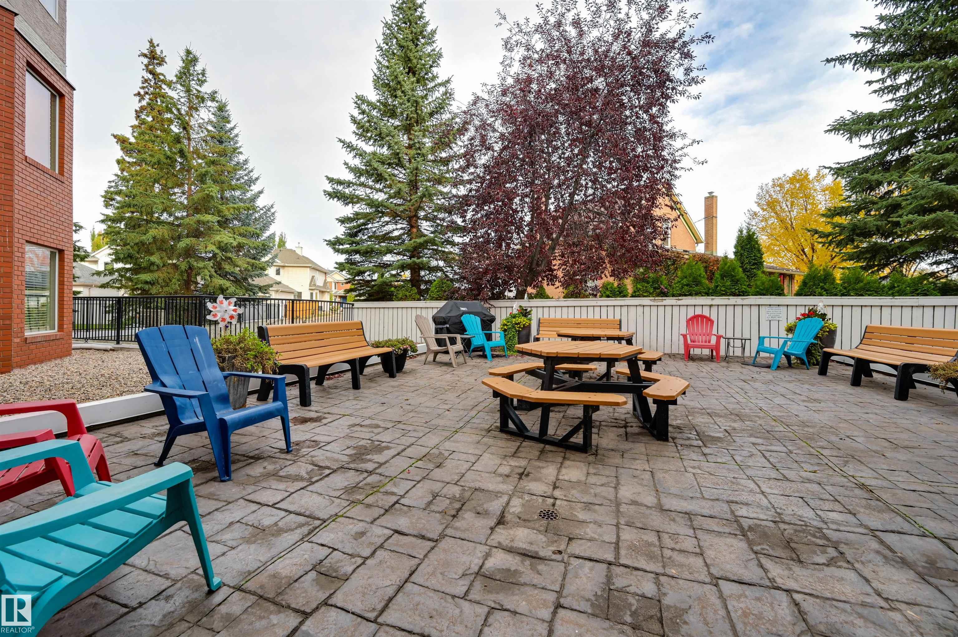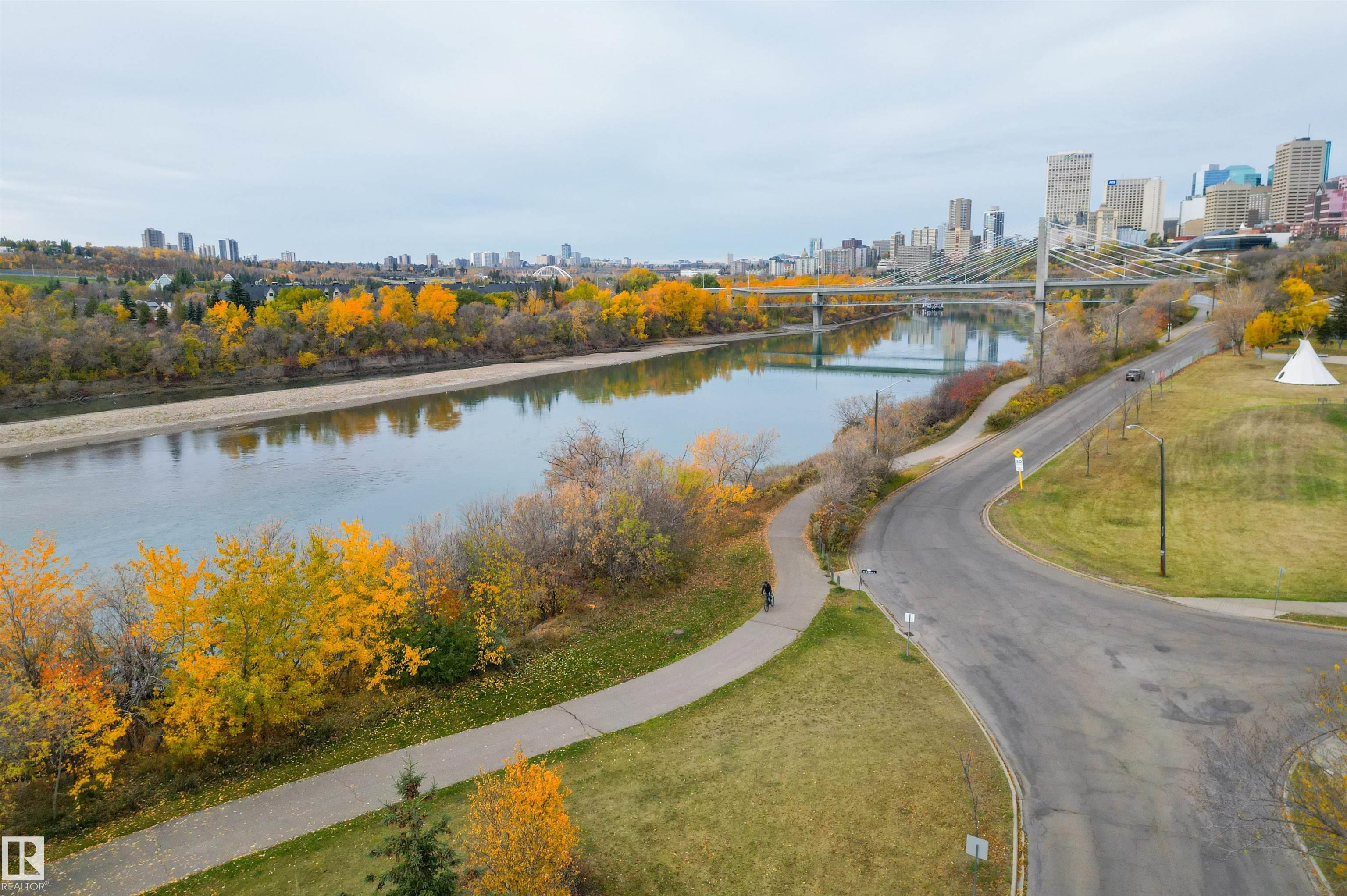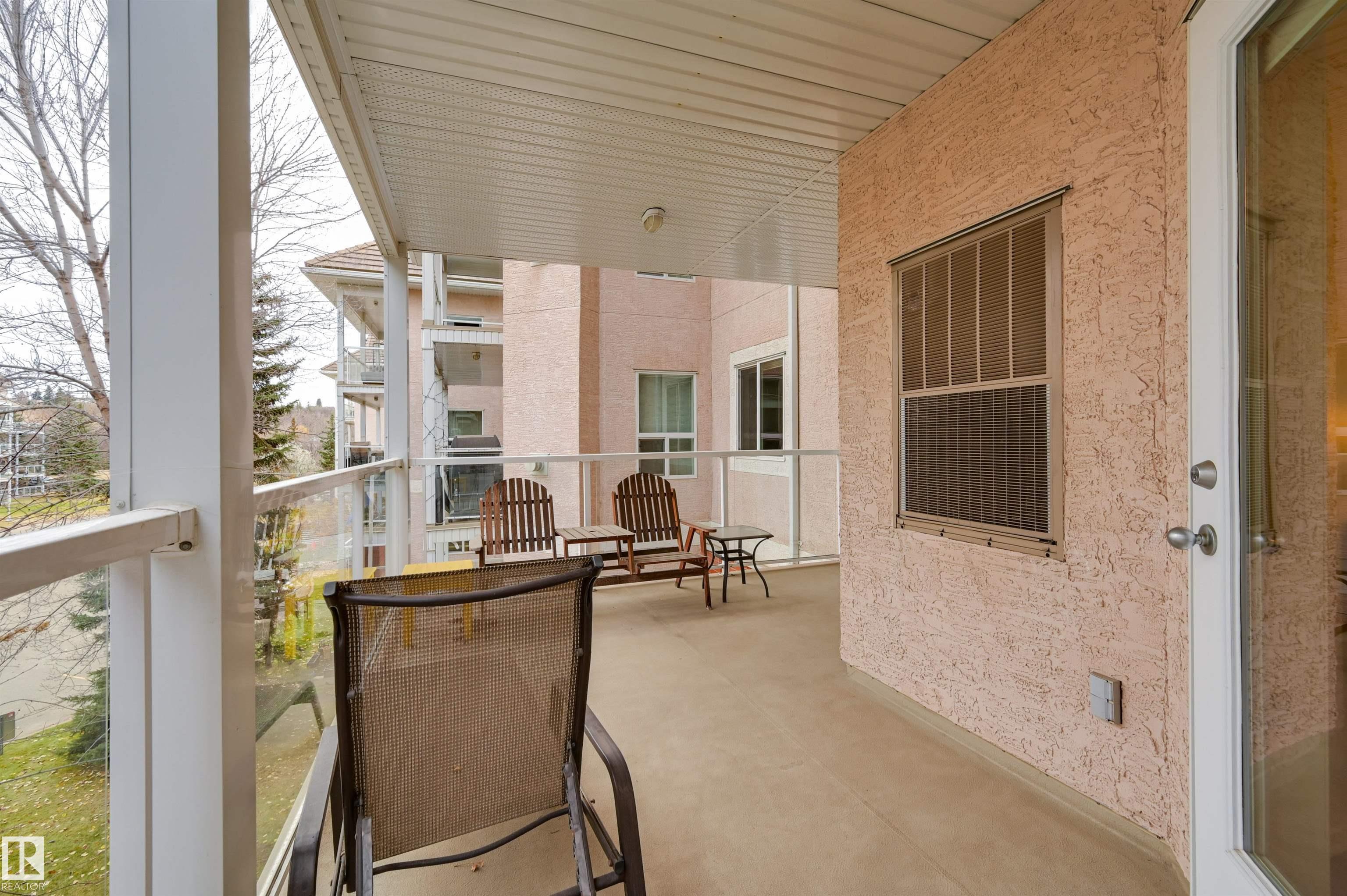 COURTYARD VIEWS from this IMMACULATE 2 bedroom 2 bathroom condo in the desirable RIVER GRANDE conveniently located with the river valley trails & transportation at your doorstep, minutes to Downtown & quick access to the U of A. This unit has an open concept layout with the bedrooms at opposite ends of the living area. The kitchen features white cabinetry, a raised eating bar & a pantry. Cozy gas f/p in the living room. Enjoy access to the southeast balcony with a gas BBQ outlet from the living room & primary bedroom. The primary bedroom has a walk through closet to the 4 piece ensuite & the 2nd bedroom is across from the 3 piece bathroom. The laundry room has storage. Included: stove, built-in microwave, fridge, dishwasher, INSUITE WASHER & DRYER, A/C, U/G PARKING & storage locker. Well managed, pet friendly building offering a fitness room, games room, social room, guest suite, car wash & visitor parking. Adjacent well maintained park with community amenities. Beautifully maintained home!