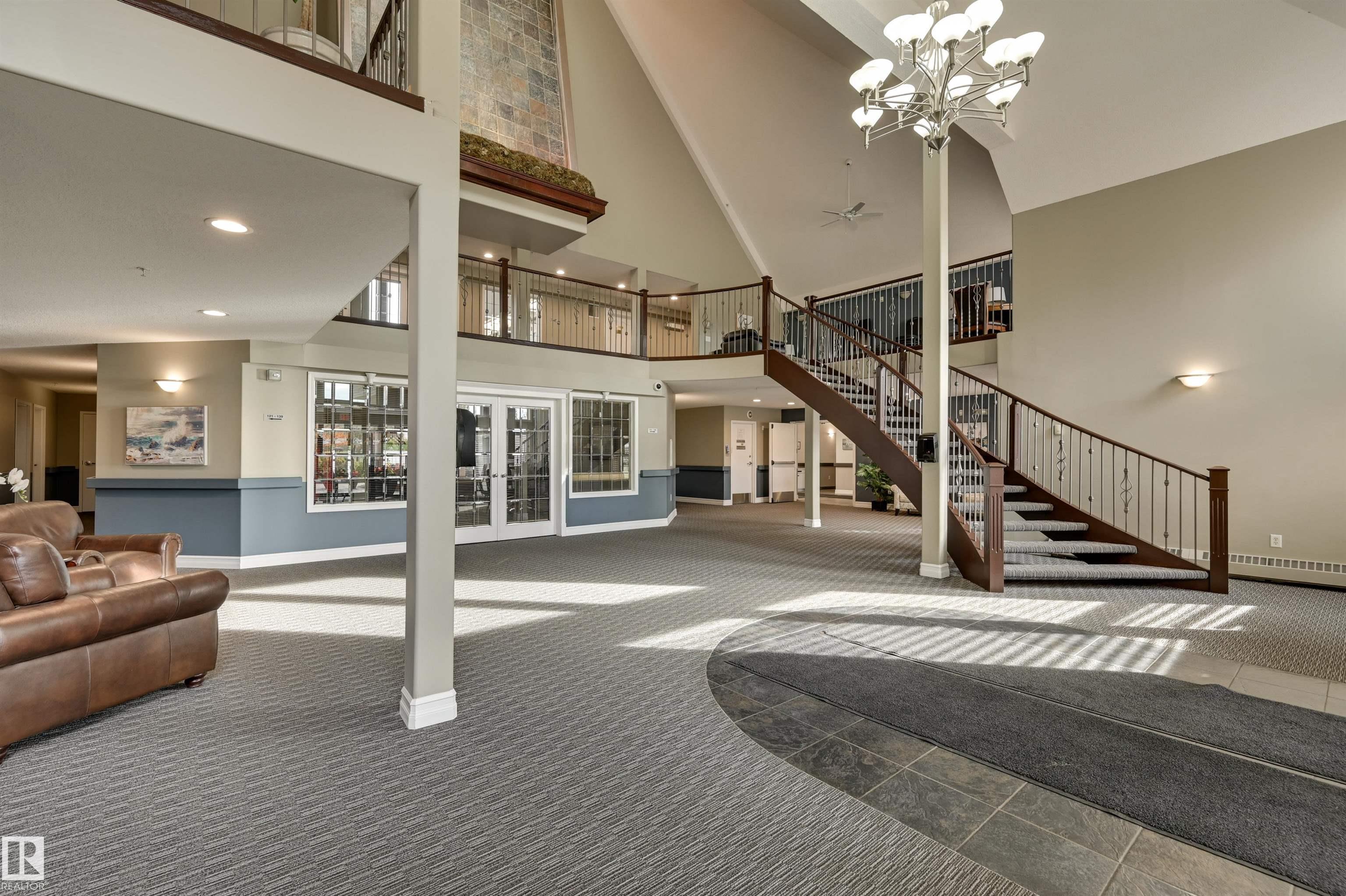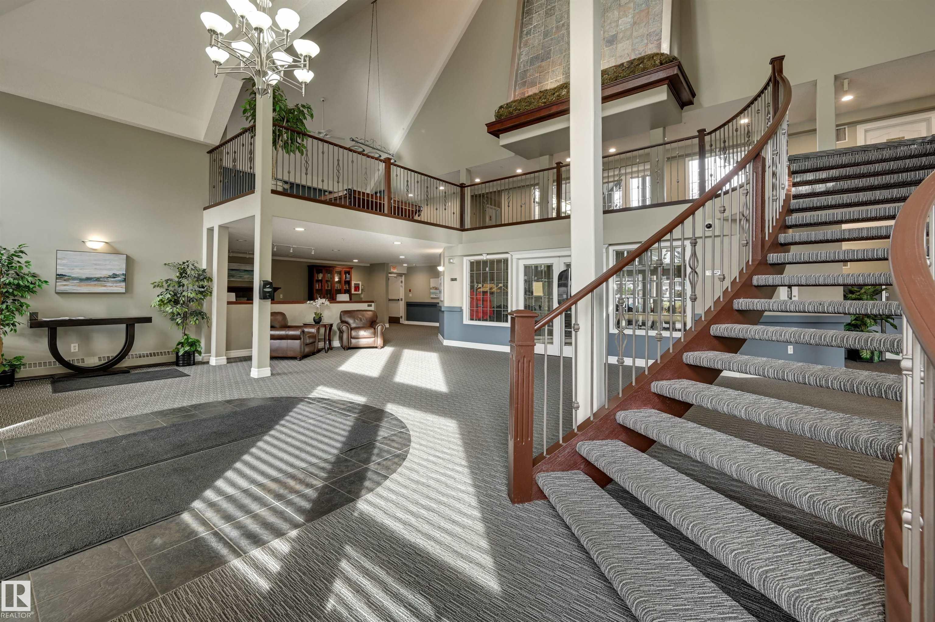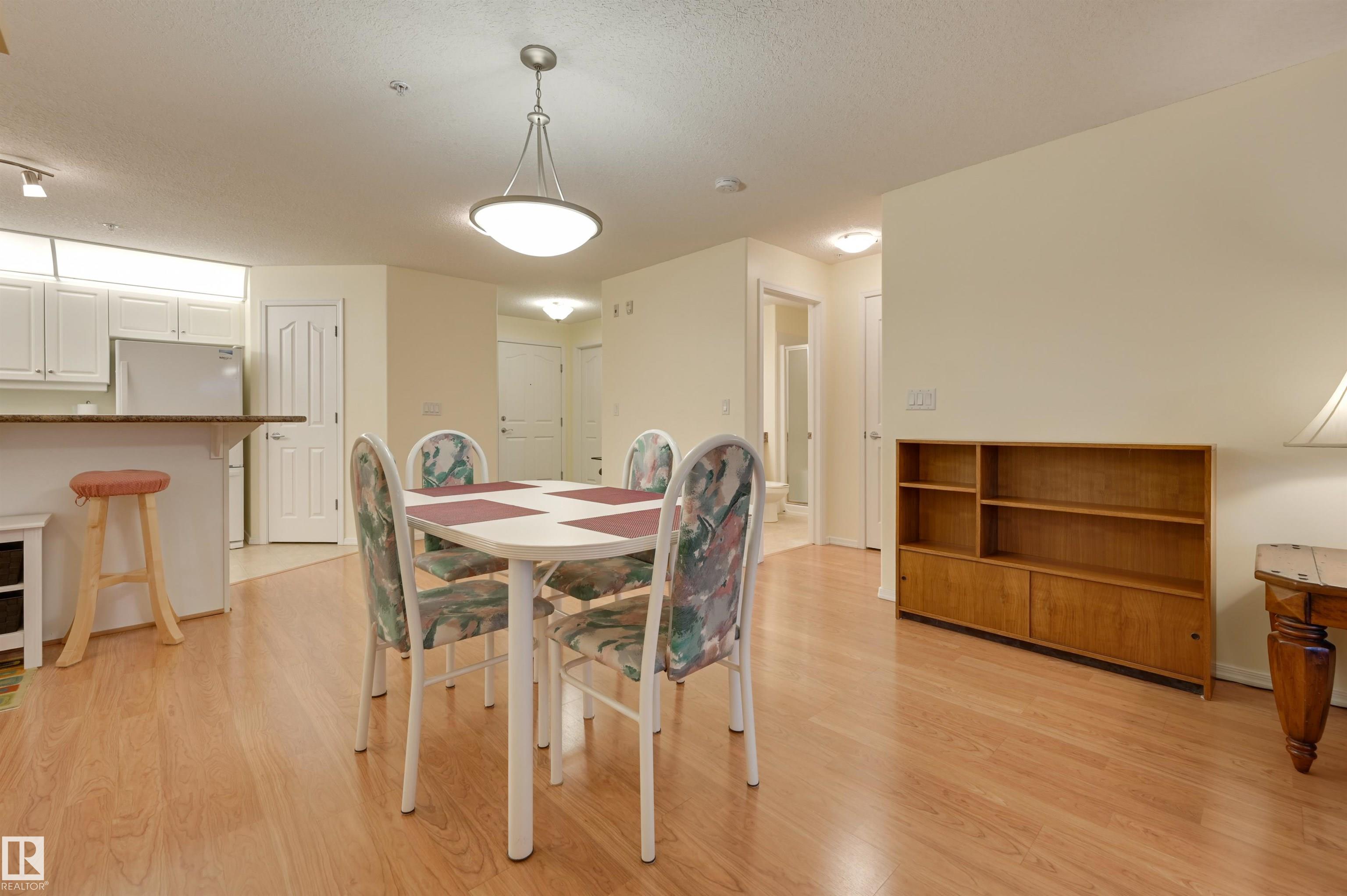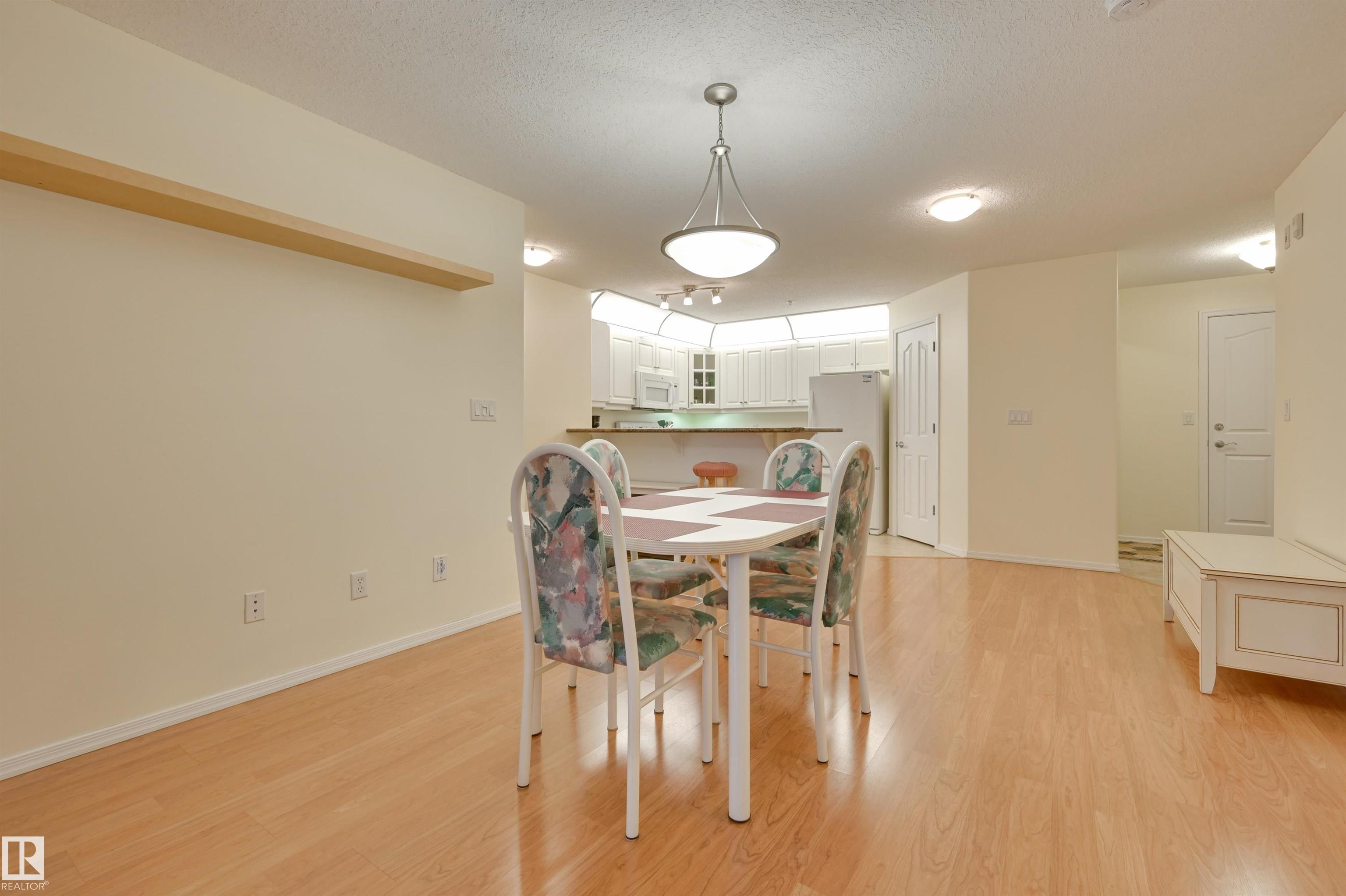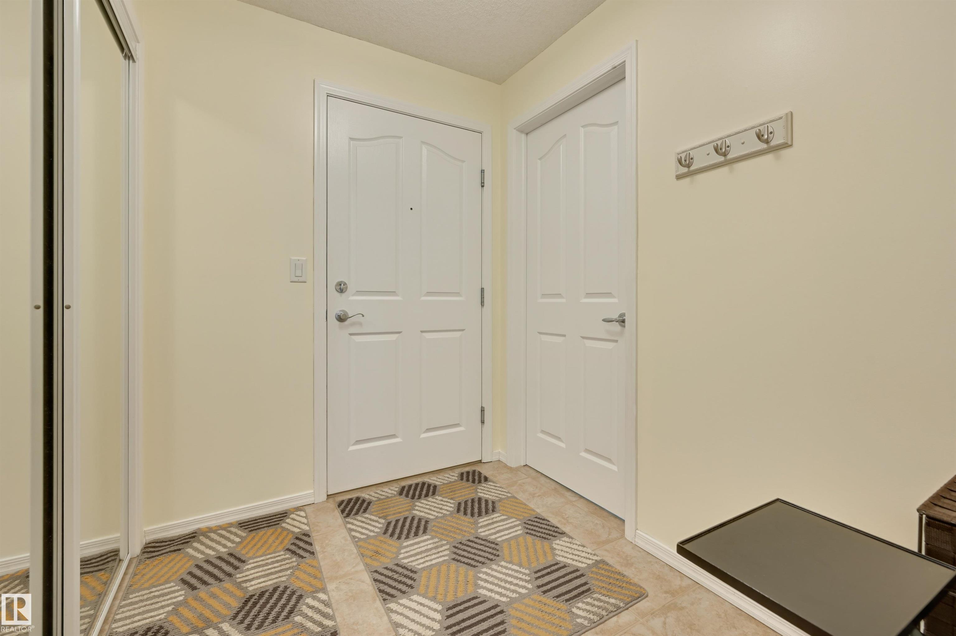 COURTYARD VIEWS from this IMMACULATE 2 bedroom 2 bathroom condo in the desirable RIVER GRANDE conveniently located with the river valley trails & transportation at your doorstep, minutes to Downtown & quick access to the U of A. This unit has an open concept layout with the bedrooms at opposite ends of the living area. The kitchen features white cabinetry, a raised eating bar & a pantry. Cozy gas f/p in the living room. Enjoy access to the southeast balcony with a gas BBQ outlet from the living room & primary bedroom. The primary bedroom has a walk through closet to the 4 piece ensuite & the 2nd bedroom is across from the 3 piece bathroom. The laundry room has storage. Included: stove, built-in microwave, fridge, dishwasher, INSUITE WASHER & DRYER, A/C, U/G PARKING & storage locker. Well managed, pet friendly building offering a fitness room, games room, social room, guest suite, car wash & visitor parking. Adjacent well maintained park with community amenities. Beautifully maintained home!
