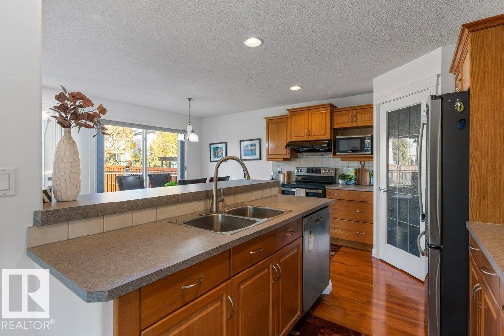 Beautifully maintained original-owner Jayman built custom 2-storey in desirable Haddow offering 2,235 sq/ft of living space plus a fully finished basement! The main floor welcomes you w/a stunning open foyer, elegant dining room & a spacious kitchen featuring oak cabinetry w/crown moulding, corner pantry, large eating nook, new fridge, stove & dishwasher. Enjoy abundant natural light from the large windows overlooking the 14?x16? red cedar deck & huge yard?perfect for kids & pets. Main floor also includes laundry, mud room & a 2-pce bath. Upstairs features a spacious primary suite w/walk-in closet & 4-pce ensuite w/corner soaker tub, along with a bonus room, two large bedrooms, full bath & ample linen storage. The fully finished basement offers a huge rec room, large bedroom, 4-pce bath & storage. Finished double attached garage completes this fantastic family home in a great community close to schools, parks, amenities, & major roadways including Anthony Henday Dr, Terwillegar Dr & Whitemud Dr!
