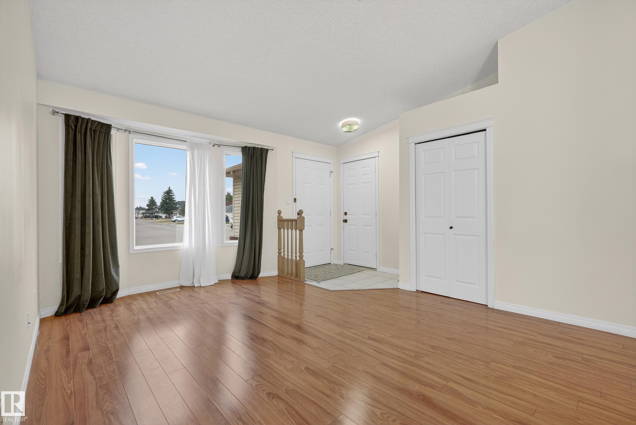 BEAUTIFUL FAMILY HOME ON A HUGE PIE LOT! Discover this spacious and impeccably maintained 4-level split in the sought-after community of Matt Berry ? tucked away in a quiet cul-de-sac, perfect for family living! You?ll love the bright, welcoming layout featuring a large living room with a picture window, a formal dining area, and stunning kitchen with granite countertops, solid oak cabinetry, s/s appliances, and a sunny breakfast nook that opens to a west-facing deck ? ideal for entertaining or relaxing in the sun. Upstairs, unwind in your private primary suite with a walk-in closet and stylish ensuite, plus two additional bedrooms & full bath. The cozy third level offers a warm family room with a stone fireplace, bedroom, laundry, and full bath. The finished basement adds even more living space with a huge rec room, cold room, & ample storage. Enjoy newer mechanical upgrades, a finished double garage, and an expansive fenced yard with fruit trees. A wonderful home in a prime family-friendly location!
