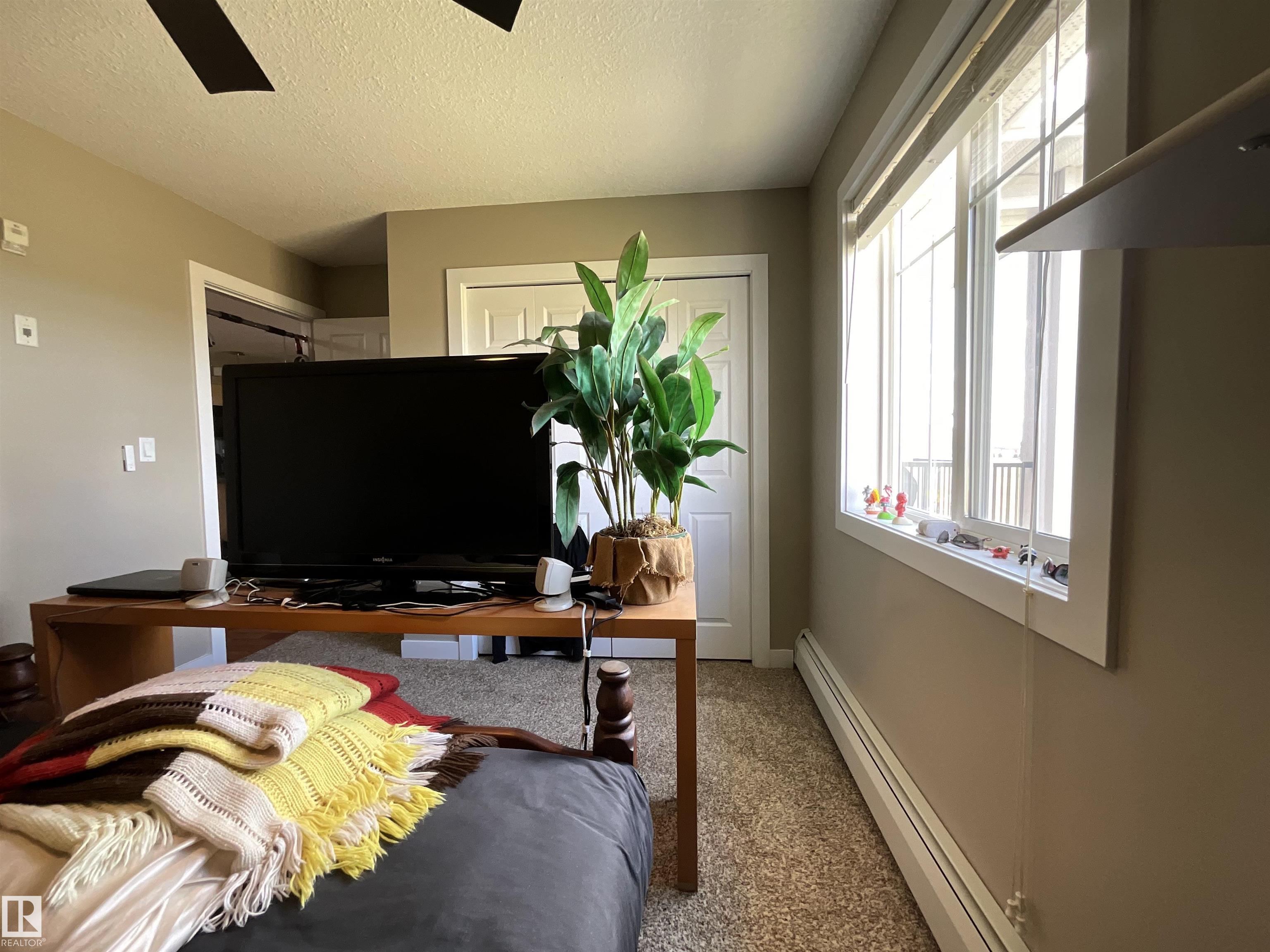 Welcome to this gorgeous, top floor unit, located in the vibrant community of South Terwillegar. The functional layout of this 1-bedroom plus den home, gives ample space for an individual or small family. Perks include in-suite laundry, a silent dishwasher, smart fans, and adjustable lighting. The West-facing balcony includes a gas line for BBQ, and shows off a serene view of greenspace, providing you with a relaxing nook to enjoy fresh air. This unit includes a titled, underground, secured, and heated parking stall, so there is no need to scrape your windshield every winter morning. Extra storage cage located behind your parking stall allowing you room for spare tires and other outdoor items. Conveniently located near the Anthony Henday, public transportation, shopping districts, parks, playgrounds, golf courses, and the river valley. To top it off, the building provides an exercise room, and the condo fees include heat and water.