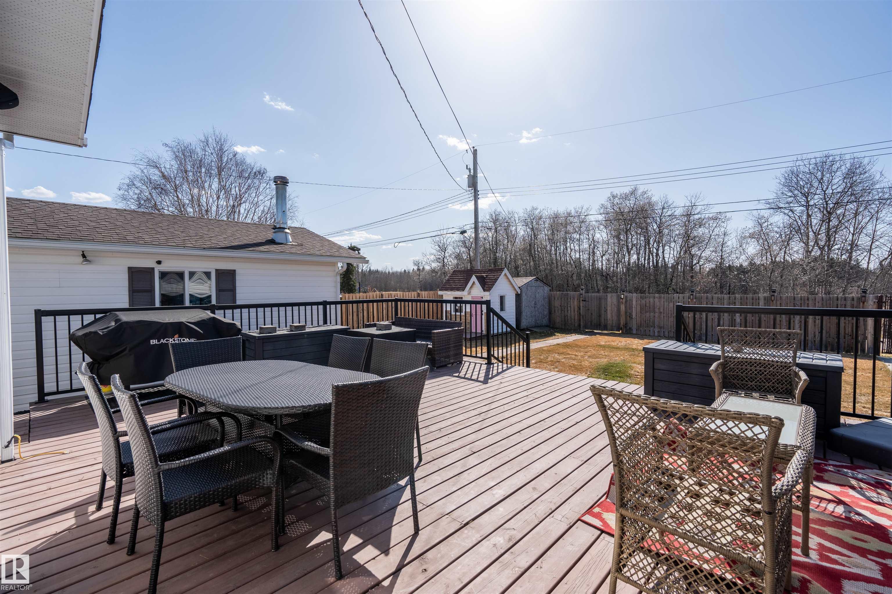 Don't let the age fool you..this bungalow with detached double garage(18X22 w/wood stove) has had oodles of updates:vinyl windows, on demand & furnace-2021,new flooring in bedrooms,kitchen & basement, all 3 bathrooms renovated,washer/dryer-NEW,shingles-2012,A/C & upper floor was just painted! The property is meticulous inside & out.A bright living room space greets you w/ BIG windows & hardwood flooring.The dining & kitchen have vinyl plank, concrete counters, white/grey cabinetry & stainless steel appliances.3 bedrooms on this level w/ the primary housing a 3 piece ensuite.The back entrance of this home will surely impress with/coat & shoe storage,bench & space for the whole family.The lower level family room has a wood stove, vinyl plank flooring,guest bedroom,4 piece bathroom & great storage.Full fenced w/ concrete parking pad, gate access,shed,playhouse & a paved alley access.Great location w/ trees & Lions park.Wood deck w/ aluminum railing, privacy panel & hot tub.Every detail of this home is A+