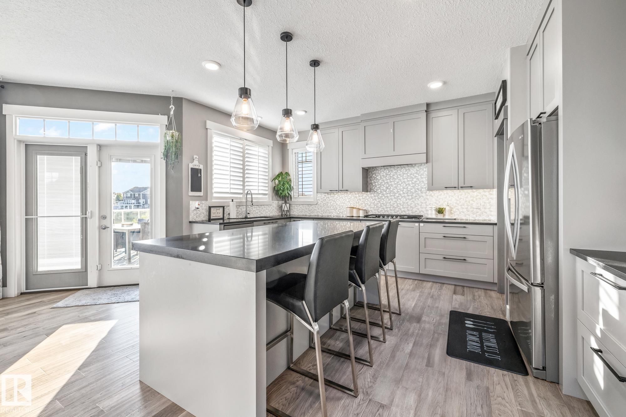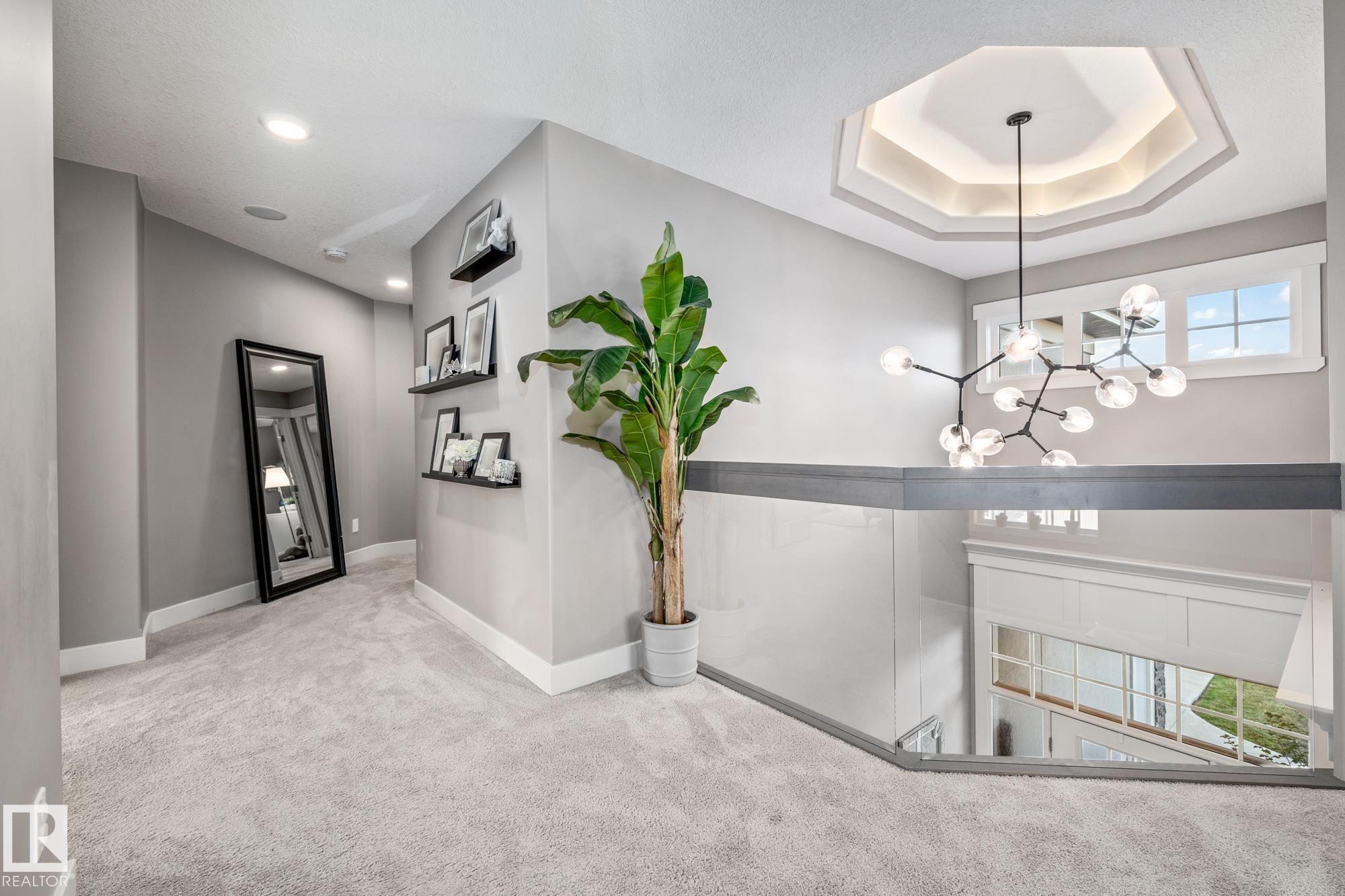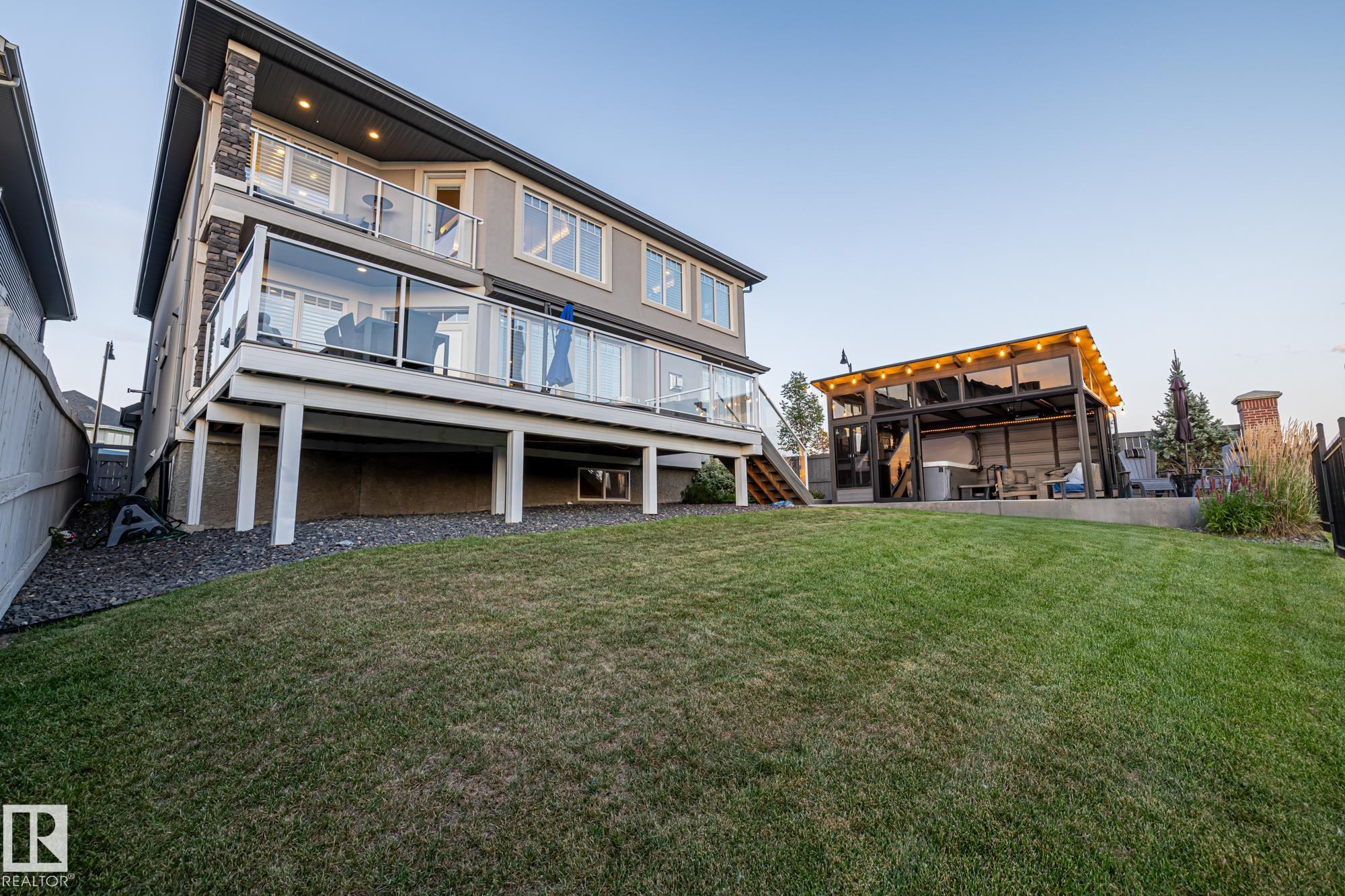 Style & elegance welcomes you to this luxurious former ?lottery? home backing the lake& green space,in the prestigious community of Griesbach.With a modern colour palette,this home has all the upgrades you can imagine.The stunning open layout features a designer kitchen w/upgraded chef?s appliances,high-end cabinets,quartz& walk through pantry.The living room has hardwood floors(extending through)& a cozy gas fireplace.There is a front den,foyer,2pc bath+mud room.The primary retreat boasts a balcony w/views of the lake,a 5pc spa ensuite+custom walk-in closet(w/access to the laundry room).The second level is complete w/a media room,two spacious bedrooms& a 4pc bath.Enjoy the beautifully landscaped southwest facing backyard w/$95K in upgrades,including a heated outdoor room(w/hot tub,lounge area&TV),concrete pad&oversized composite deck.Upgrades:Cabinets,Coffered Ceilings,Lighting,LED Shower,Custom Window Shutters,Finished Heated Oversized Garage(w/EV),A/C...The list is endless!Welcome to your dream home!