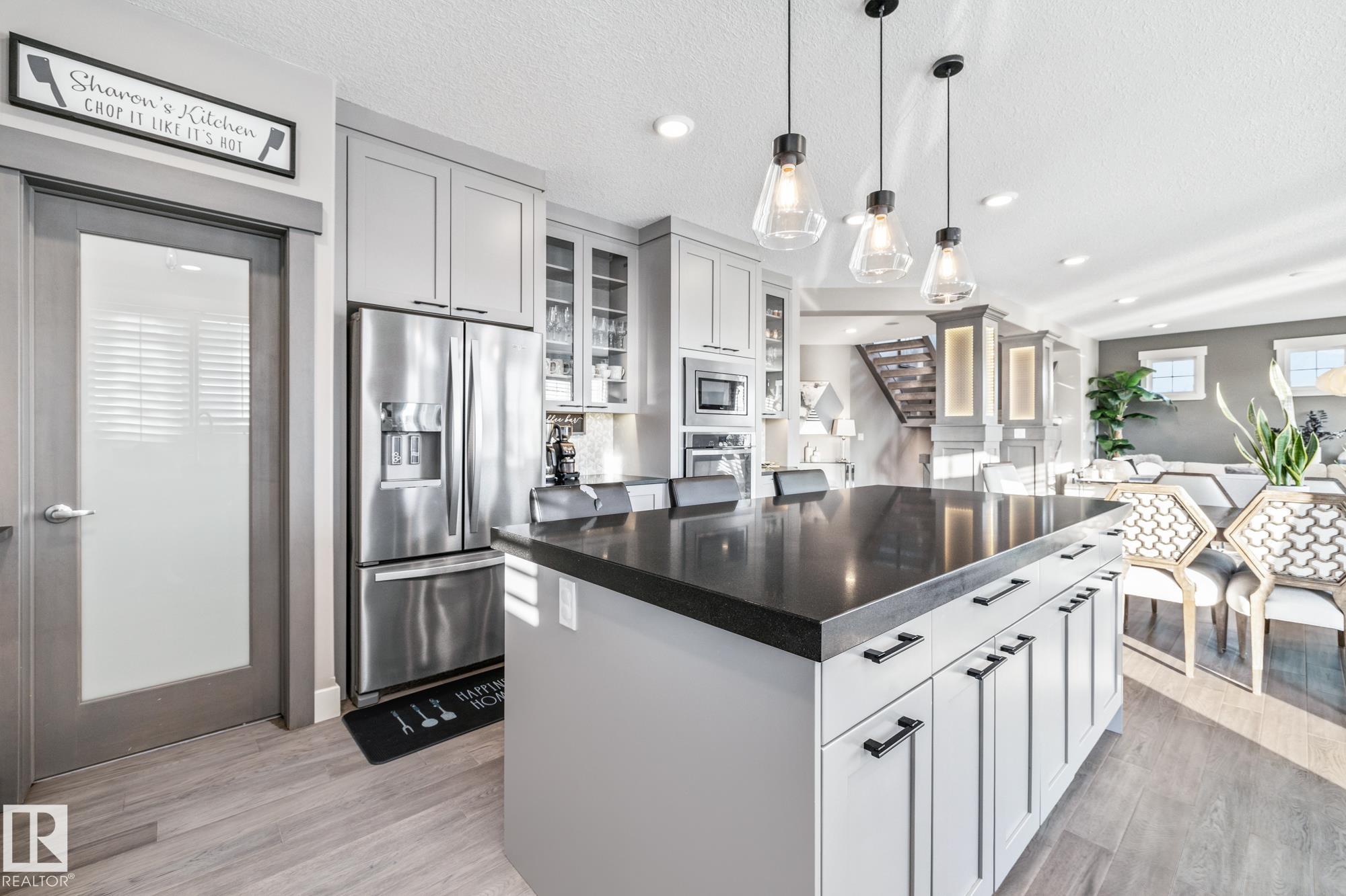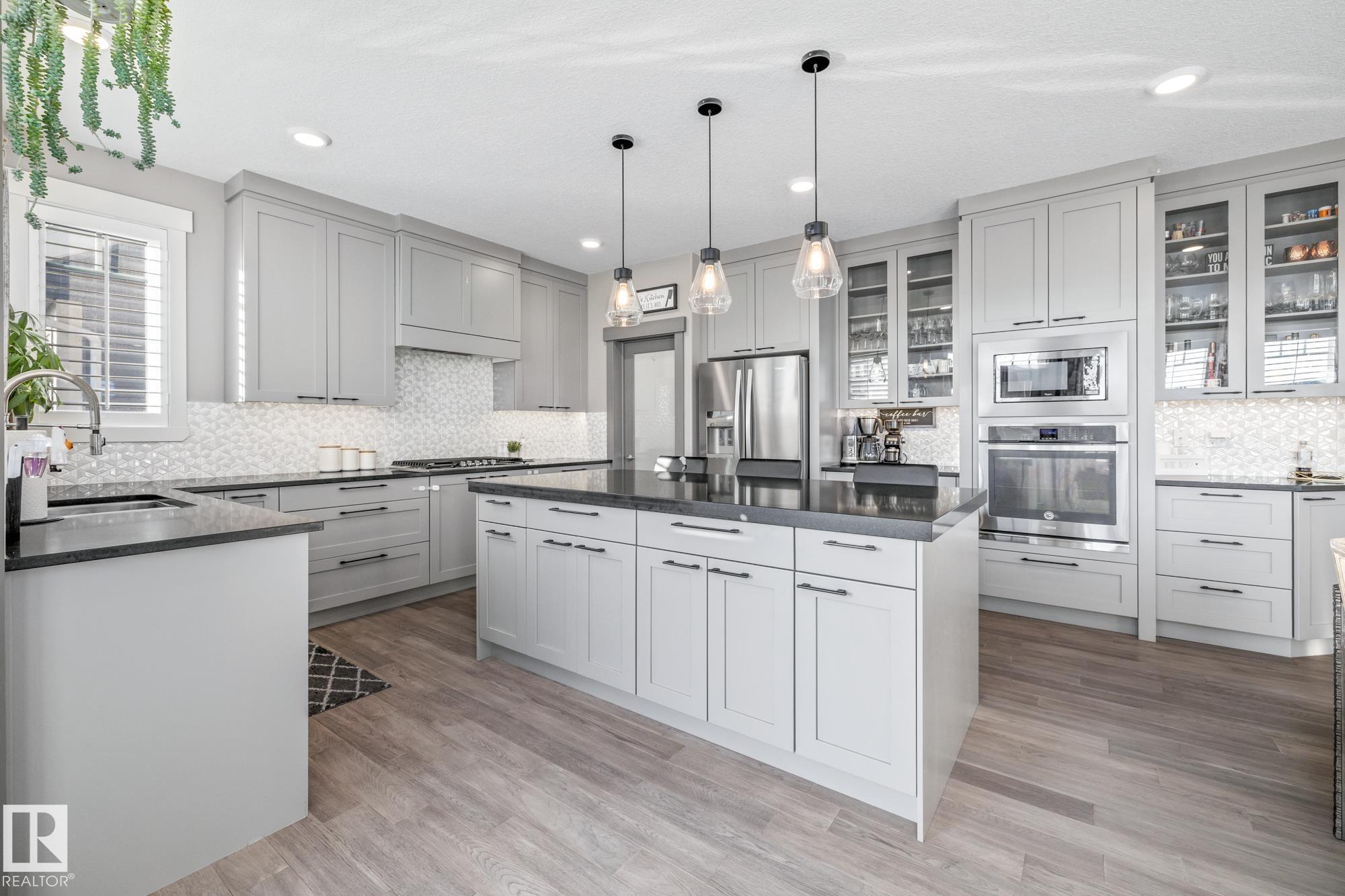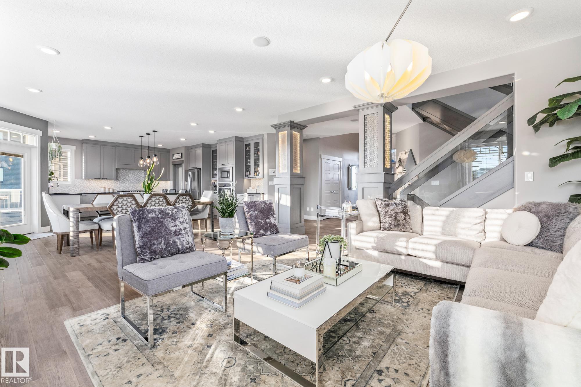 Style & elegance welcomes you to this luxurious former ?lottery? home backing the lake& green space,in the prestigious community of Griesbach.With a modern colour palette,this home has all the upgrades you can imagine.The stunning open layout features a designer kitchen w/upgraded chef?s appliances,high-end cabinets,quartz& walk through pantry.The living room has hardwood floors(extending through)& a cozy gas fireplace.There is a front den,foyer,2pc bath+mud room.The primary retreat boasts a balcony w/views of the lake,a 5pc spa ensuite+custom walk-in closet(w/access to the laundry room).The second level is complete w/a media room,two spacious bedrooms& a 4pc bath.Enjoy the beautifully landscaped southwest facing backyard w/$95K in upgrades,including a heated outdoor room(w/hot tub,lounge area&TV),concrete pad&oversized composite deck.Upgrades:Cabinets,Coffered Ceilings,Lighting,LED Shower,Custom Window Shutters,Finished Heated Oversized Garage(w/EV),A/C...The list is endless!Welcome to your dream home!