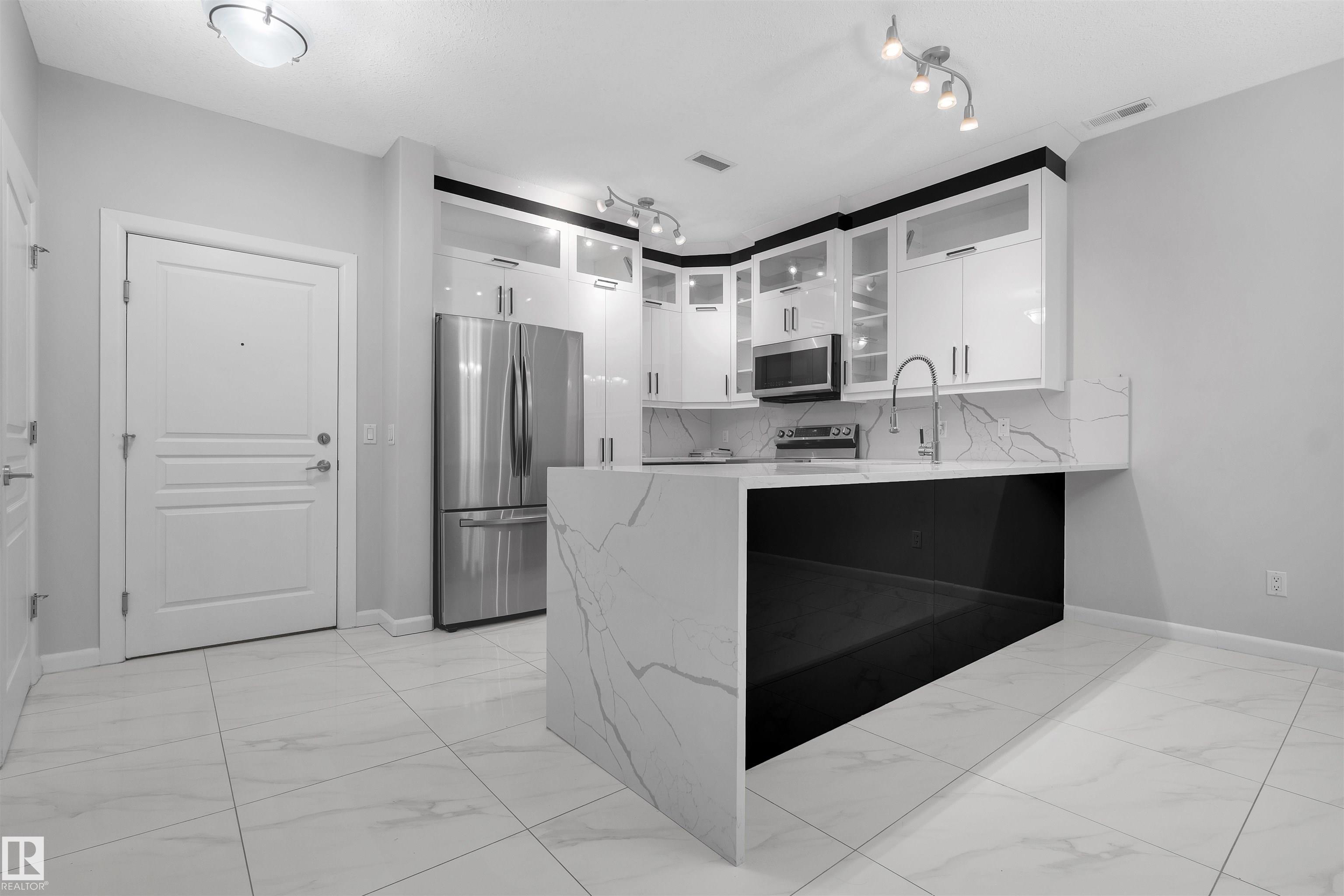 Enjoy your LUXURY LIVING IN MAGRATH MANSION! Located in one of Edmonton?s most premium neighborhoods, this fully renovated 1250+ sq.ft lower-level condo offers over $170,000 in modern upgrades, including elegant full-home tiling and designer wallpapers throughout. Featuring 2 bedrooms + den, 2 bathrooms, an open concept layout with 9 ft ceilings, a modern kitchen with stainless steel appliances, and a spacious primary suite with walk-in closet and stunning ensuite. Enjoy in-suite laundry, a private balcony, and 1 titled underground heated parking stall plus titled storage. This exclusive steel & concrete adult building (18+) features resort-style amenities: Social/Recreation room with kitchen and book library, Theatre Room, gym with sauna, steam room & hot tub, car wash bay, and outdoor BBQ area. Walking distance to shopping mall (next door), parks, and ravine trails. Perfect for adult living or as an investment ? you cannot get a better deal at this price.