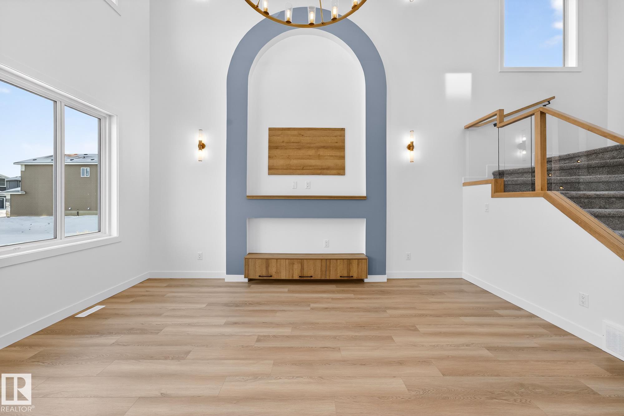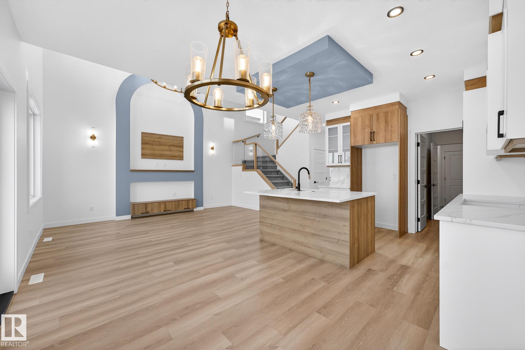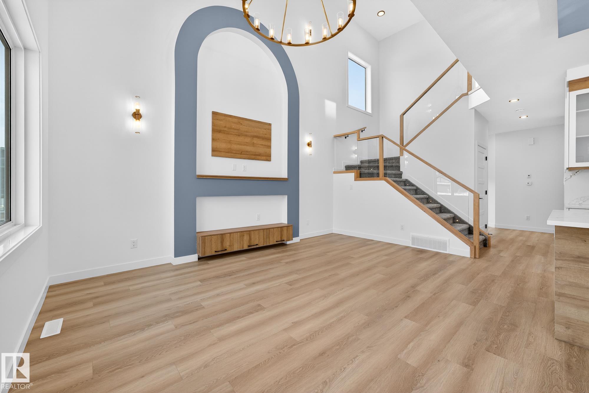 Facing the walking path that leads to a beautiful pond this 2116 Sq Ft 3 Bedroom 2-Storey Open to Below is a show stopper and the perfect family home! The Open Concept Main Floor Boasts Beautiful vinyl plank flooring, Large Den, Adjacent 3-piece Bath, White Modern Cabinetry, Full Appliance Pkg, Quartz Counter Tops, Large Island, Fireplace Feature Wall, Large Mudroom with storage leads to a Walk Through Pantry with cabinetry, Living Room boast large Windows, Coffered Ceiling showcasing a beautiful 18' Open to Below View from the Second Floor. Gorgeous Primary Suite with Coffered Ceiling and Large Ensuite with Soaker Tub, Large Tiled Shower with Double Sink! Spacious Bonus Room with coffered Ceiling, two more large bedrooms, Laundry Closet and Full Bath! Basement is unfinished but with side entrance and 9' Ceiling the potential is endless!
