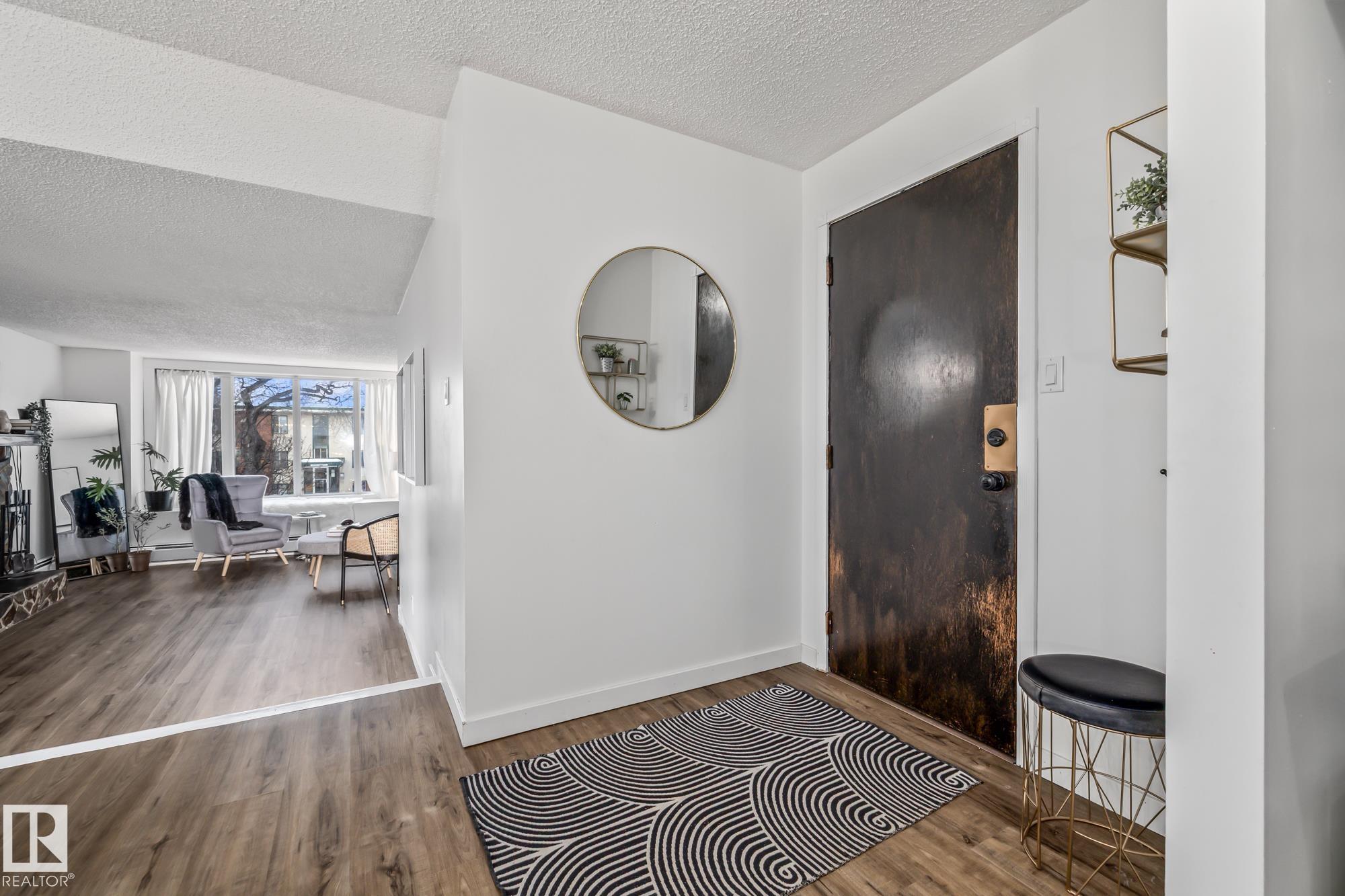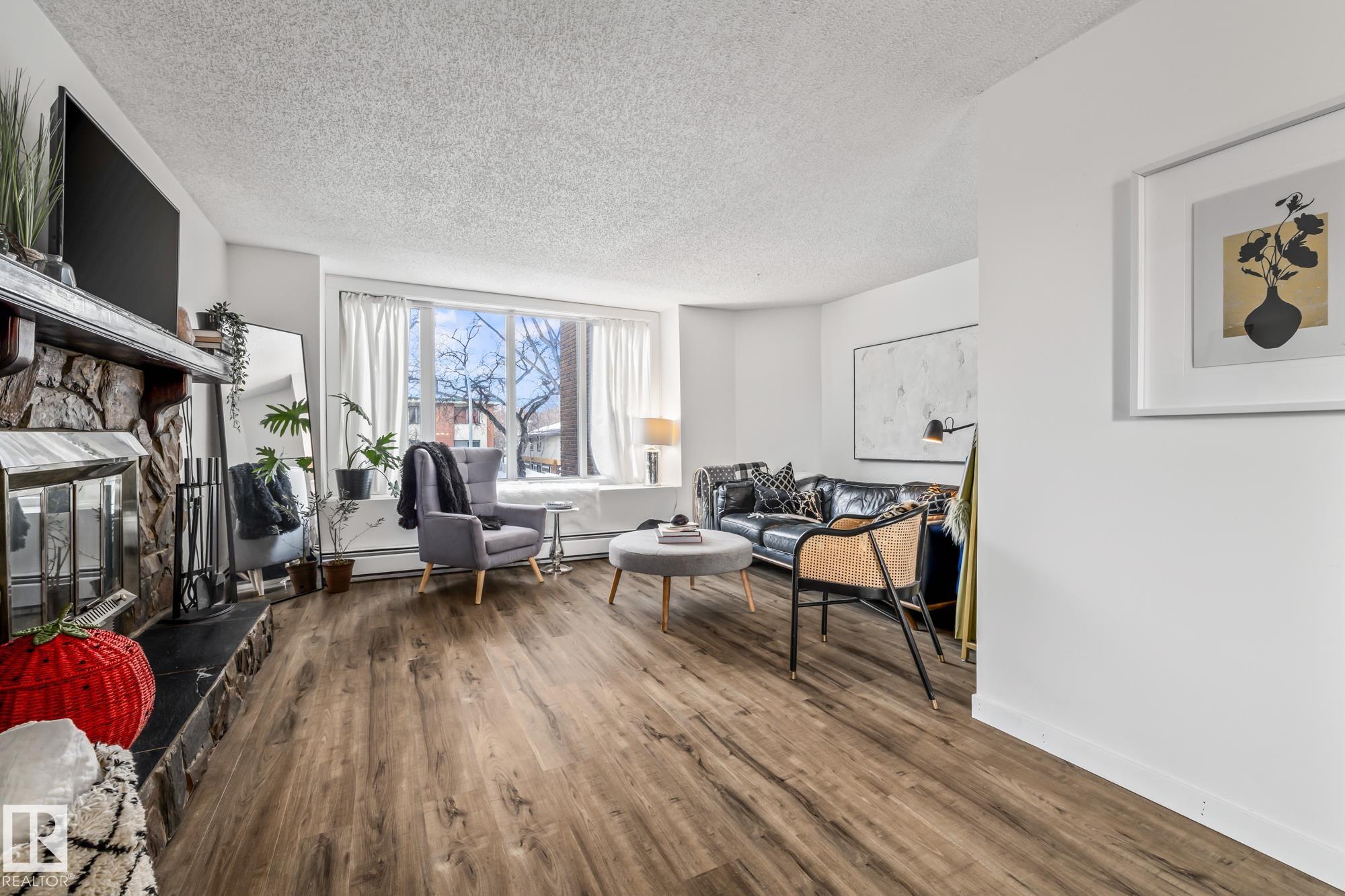 Fully Renovated over 900 sq ft one bedroom full bathroom Condo located on second floor. Upgrades include Kitchen, flooring, appliances, paint and light fixtures plus more. Nice open concept with sunken Living room and wood burning fireplace. Insuite laundry plus balcony off a good sized master bedroom with closet with built in shelving. Bathroom has two entrances plus comes with one assigned outside stall with power. Very secure building and great location to the downtown area. Condo is self managed and includes Heat Water AND Sewer.