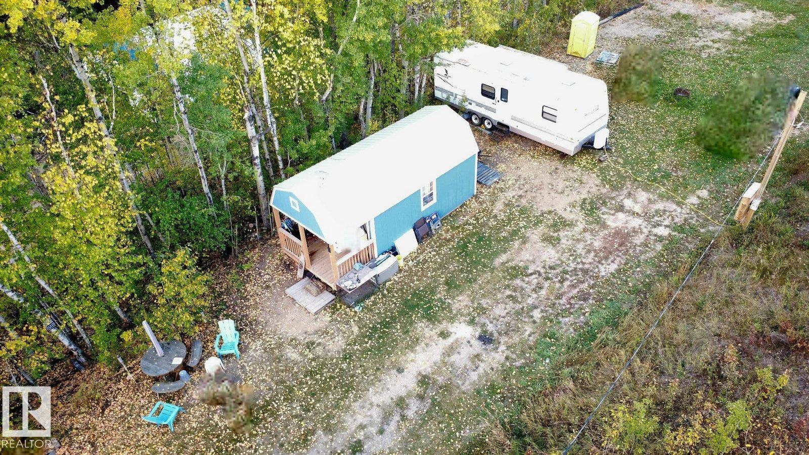 SKELETON LAKE - 4 ACRES!! fully serviced lot. Privately located near the boat launch & quad trails not far from town amenities. Treed for added privacy and ambience. Land includes a '20x'10 lofted mini cabin with power all set up with a covered deck to enjoy your morning coffee with nature, a 26' bumper pull RV in mint condition ready to use for with bathroom and kitchen etc, 40'x30' quonset shop with drive through rolling doors to store equipment & toys, 2nd smaller quonset storage, wooden storage shed and an outhouse included. Loop around driveway provides easy access to the land. property sold 'as is'.