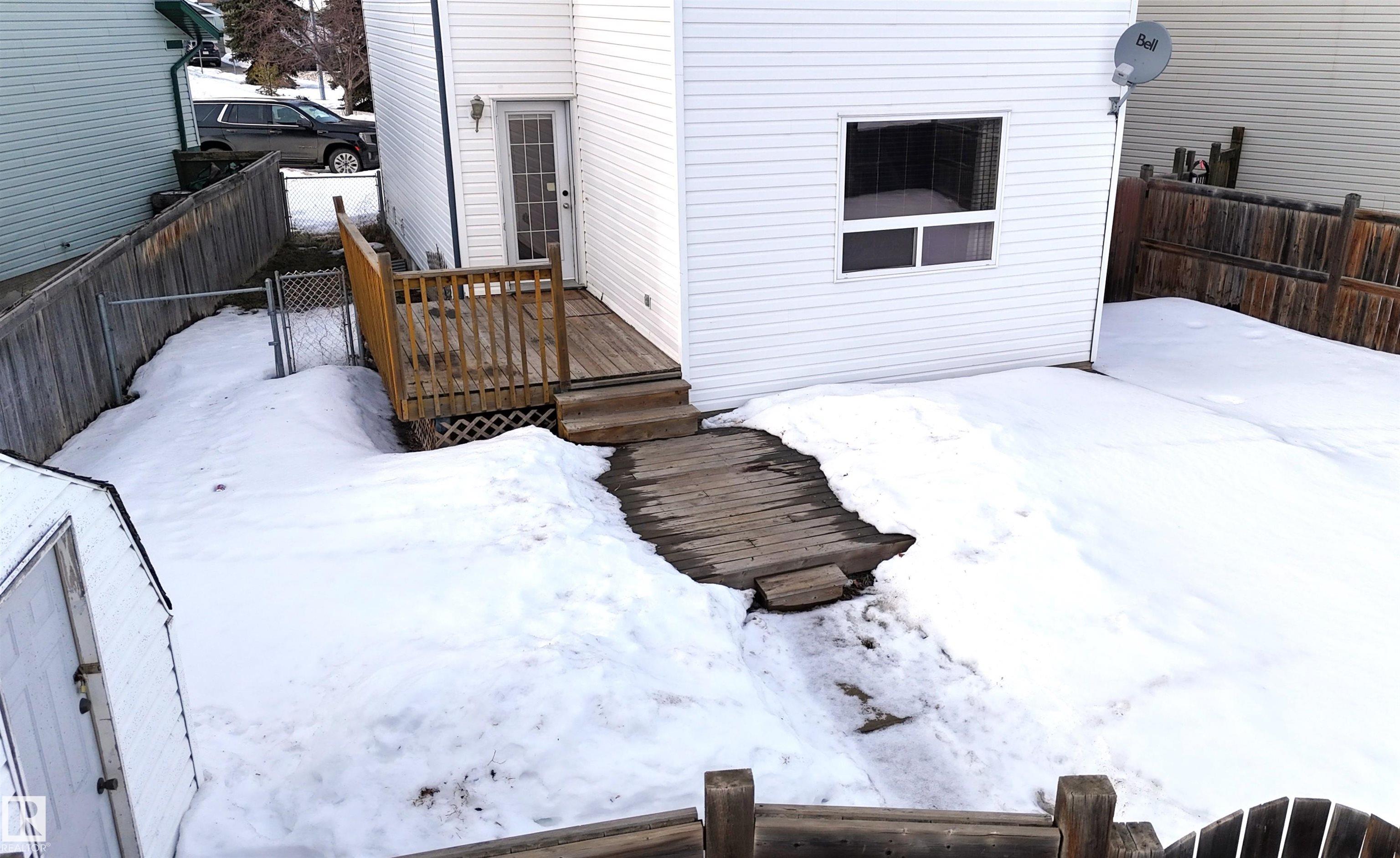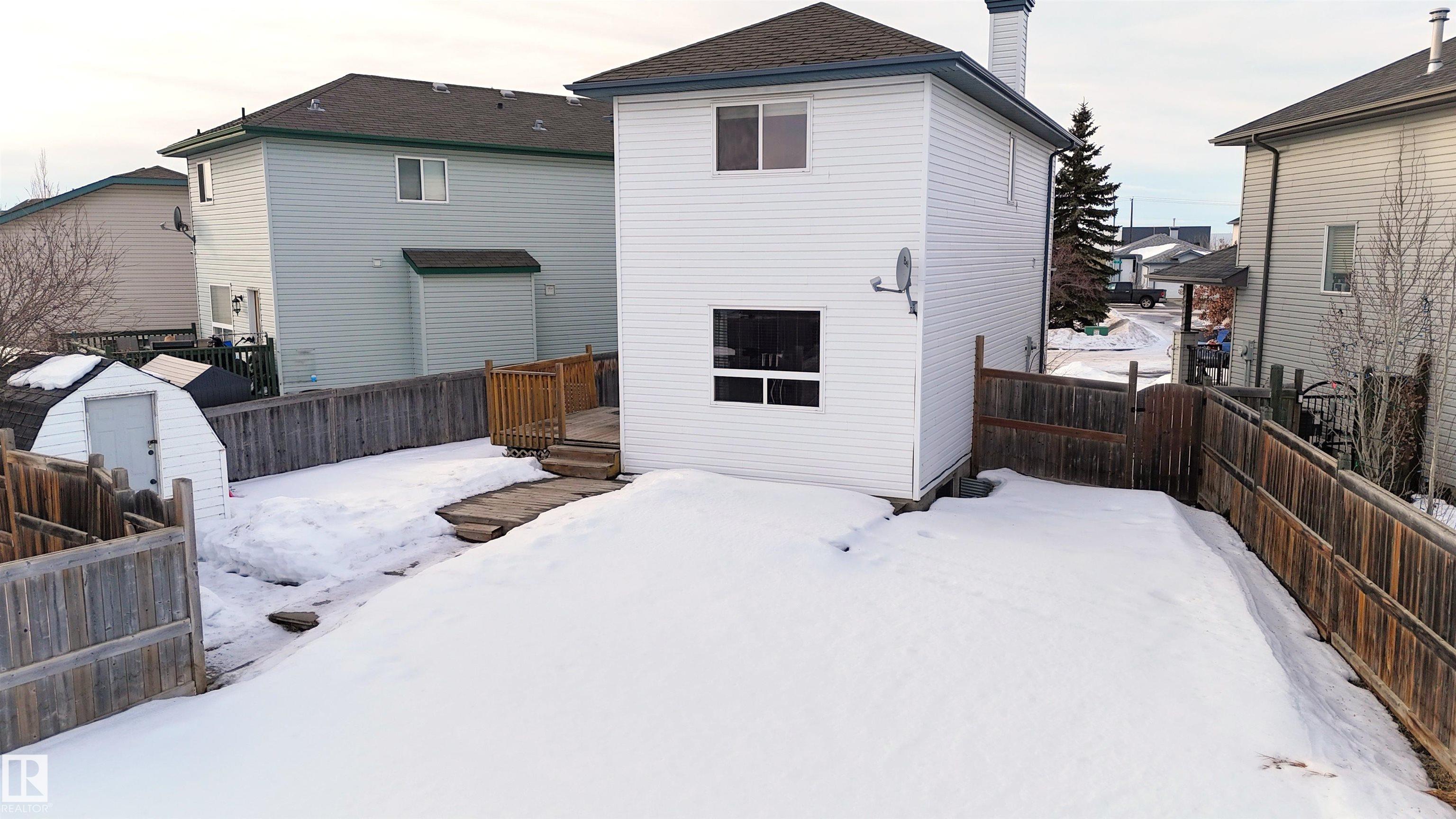 Charming 2-storey on a large pie-shaped lot in Carlton, steps to parks and Elizabeth Finch School. This 1,420 square foot (plus full, finished basement) home features central air conditioning and a great open floor plan. On the main level: front office with large window, 2-piece powder room, living room, dining area with deck access and gourmet kitchen with eat-up island, corner pantry and new appliances. Upstairs: 3 generous sized bedrooms including the owner?s suite with walk-in closet and cheater door to the main 4-piece bathroom. In the basement: a spacious family room, 3-piece bathroom and laundry room. Outside: huge fully-fenced yard with two-tiered deck & storage shed. Parking includes two stalls with back-alley access; plenty of space for a future detached garage. Located at the end of a dead-end street, minutes from shopping and the Anthony Henday. Must see!