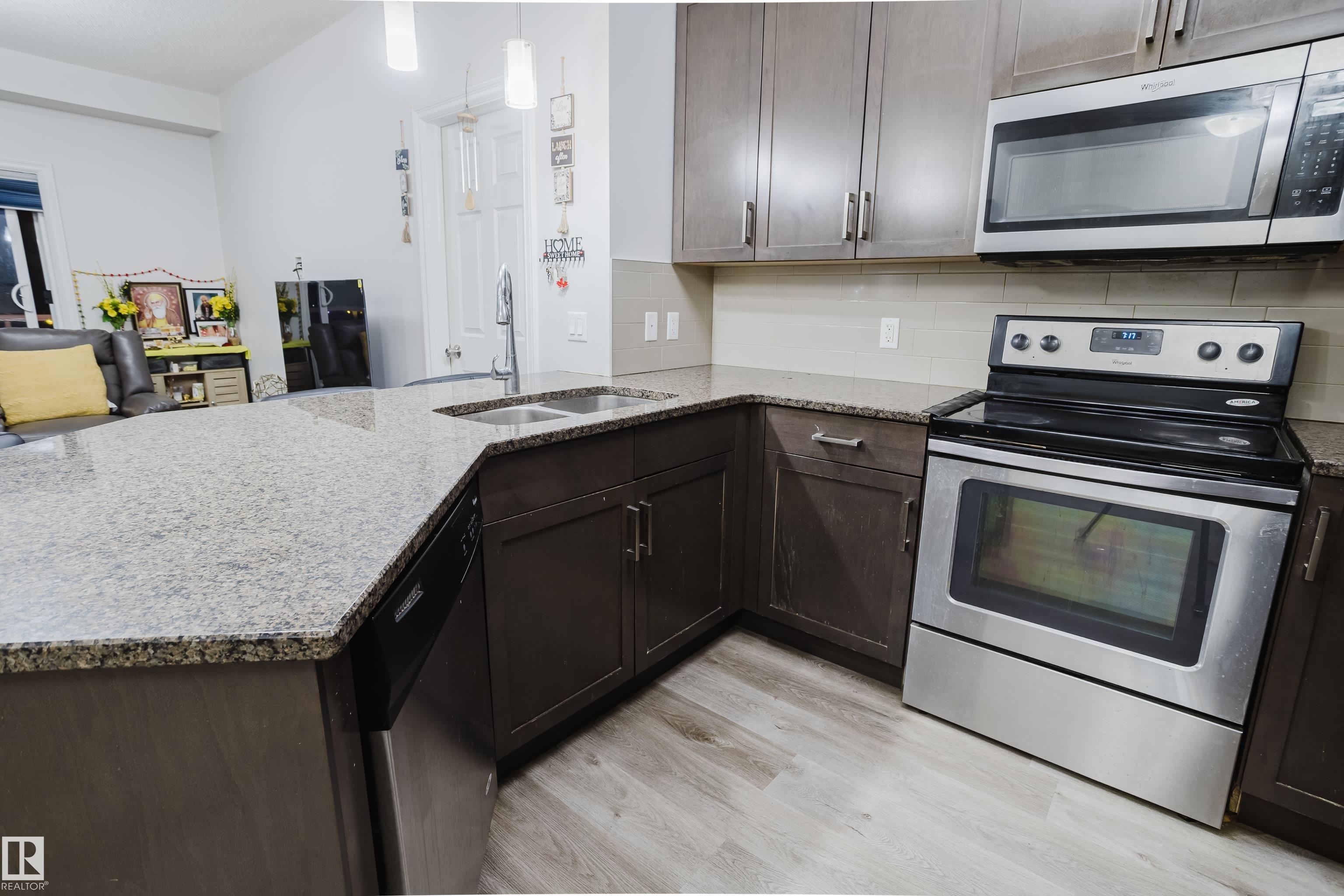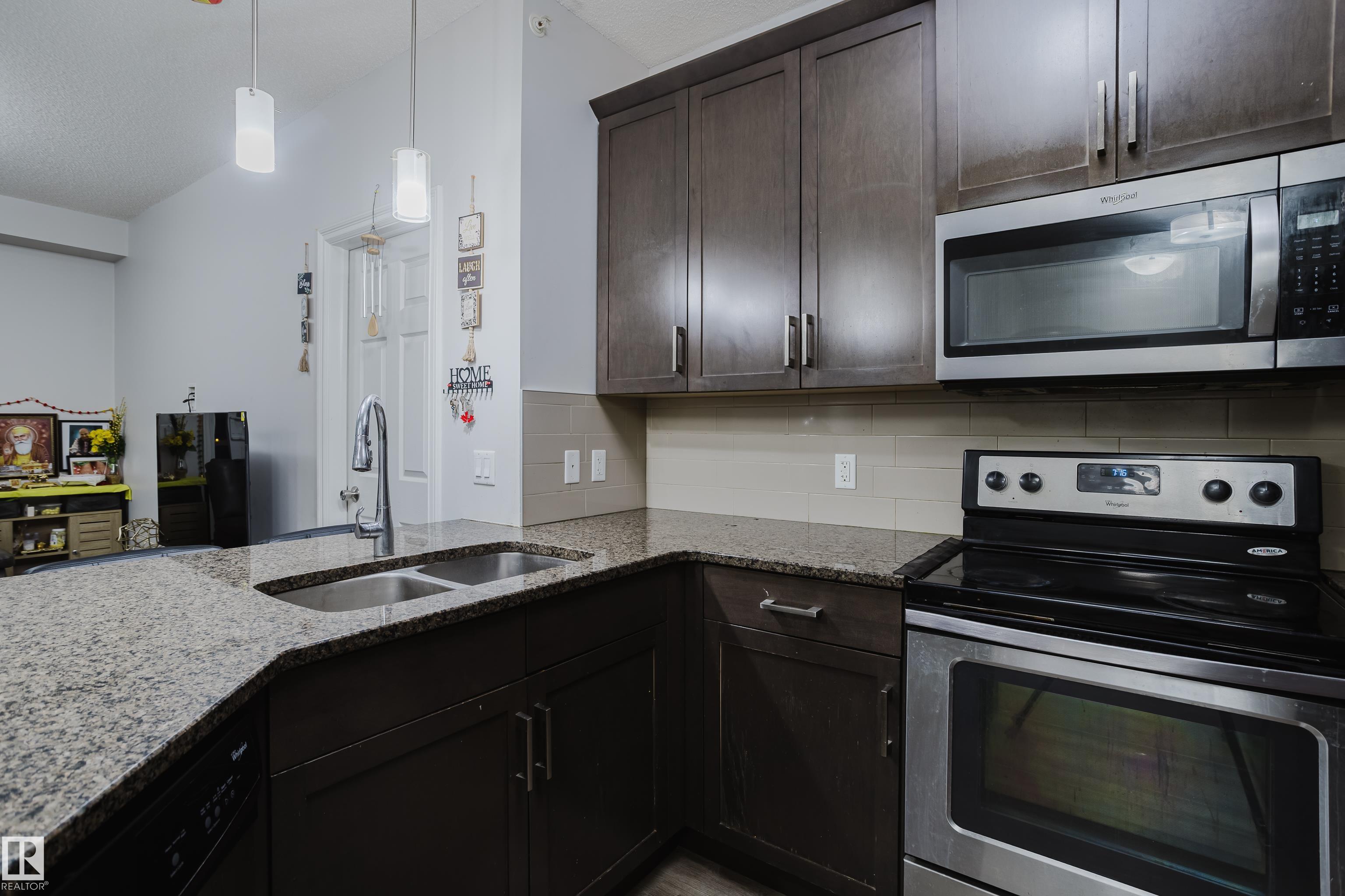Welcome to this stunning top-floor 2-bedroom, 2-bathroom condo, ideally located in the heart of The Meadows within the quiet community of Larkspur. Just steps from every amenity you could need, this spacious 865 sq. ft. unit is one of the largest in its class. The home showcases a modern and stylish living space with an open-concept layout, abundant natural light, and a contemporary kitchen fully equipped with stainless steel appliances, granite countertops, and ample storage. The refrigerator is brand new, adding extra value and peace of mind. Both bedrooms are generously sized with plenty of closet space, offering comfortable areas to relax and unwind. Enjoy the convenience of in-suite laundry with a new washing machine, as well as one underground parking stall. The well-maintained Aspen Meadows complex offers excellent amenities, including a fitness center and a social room.
