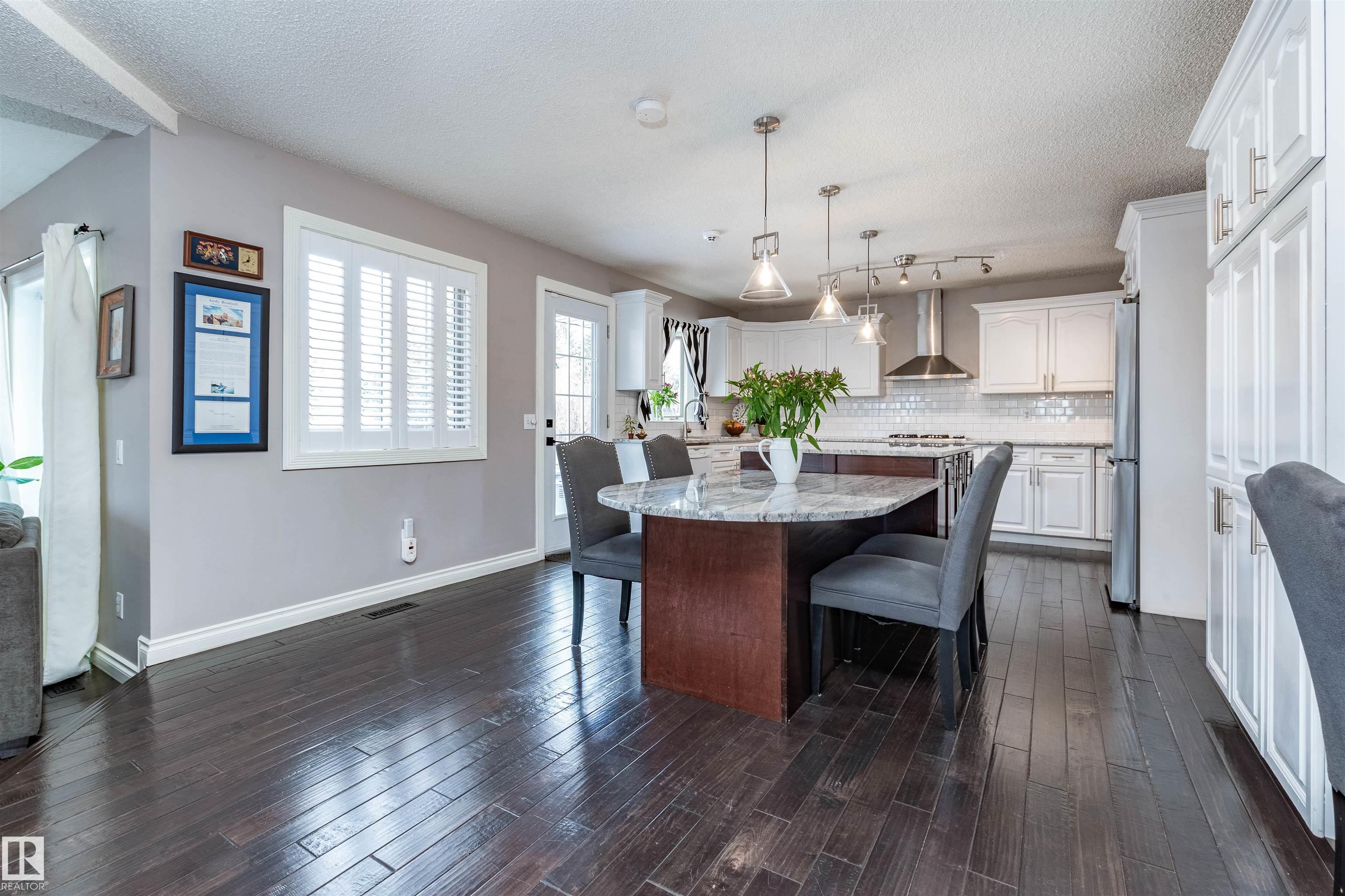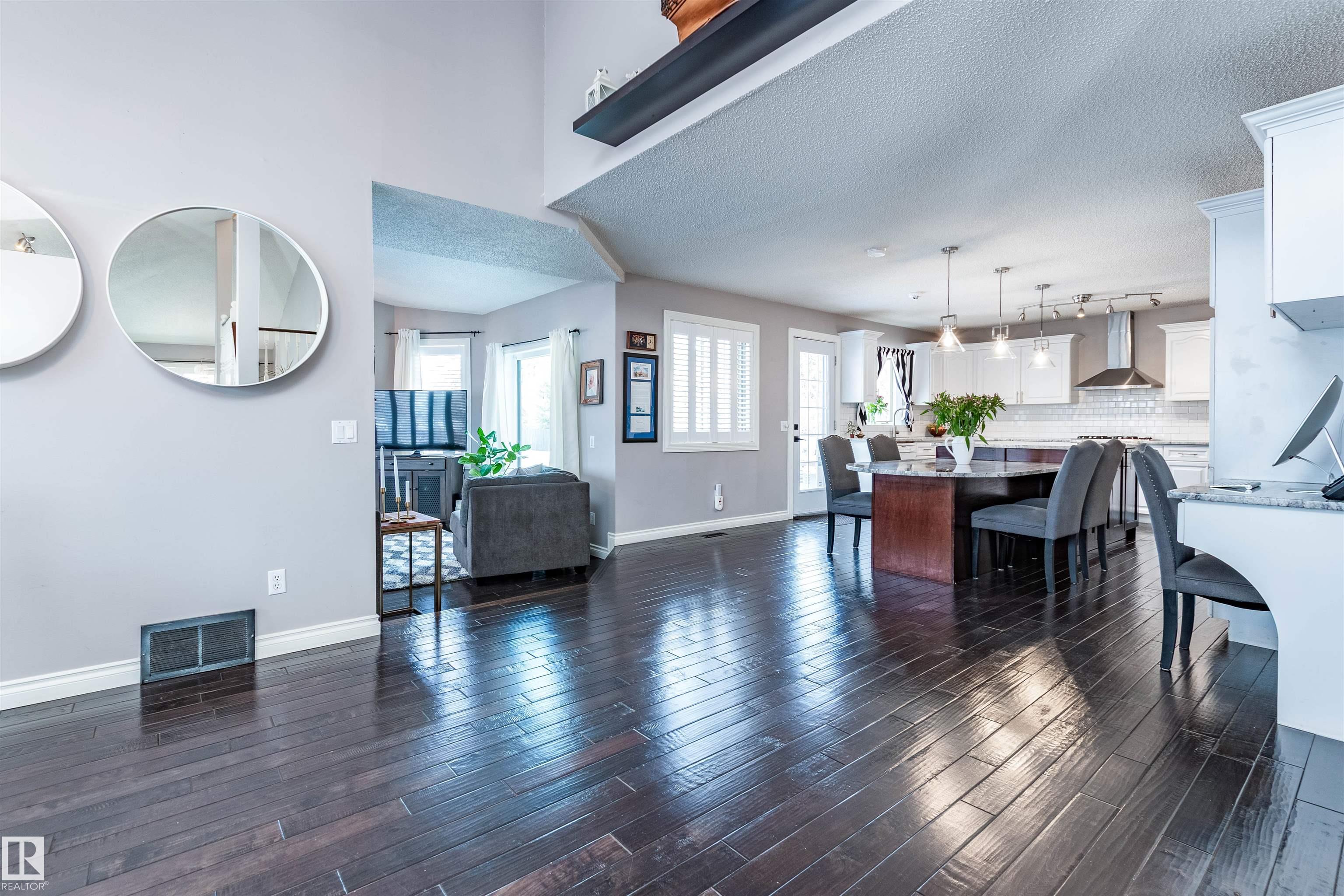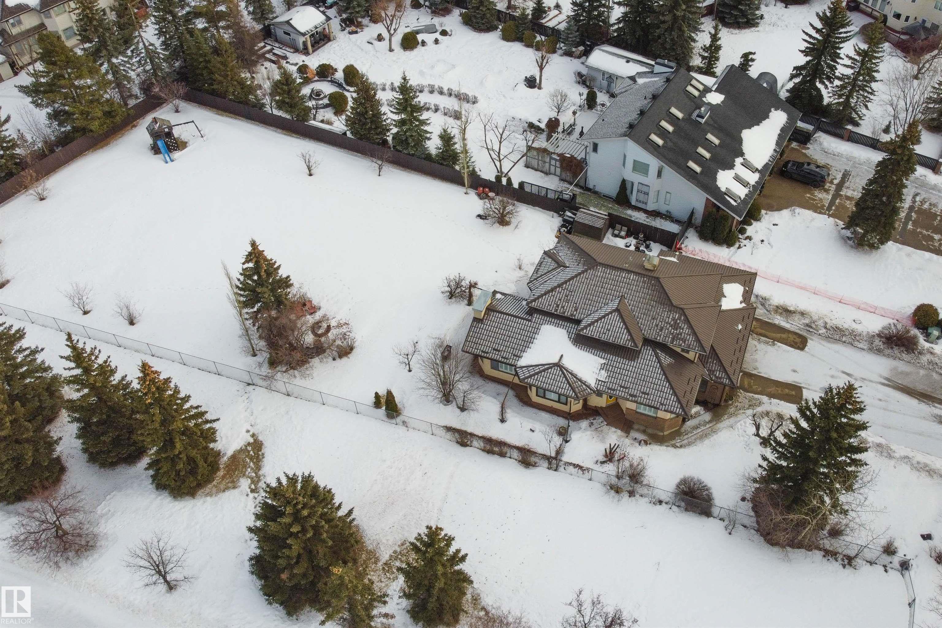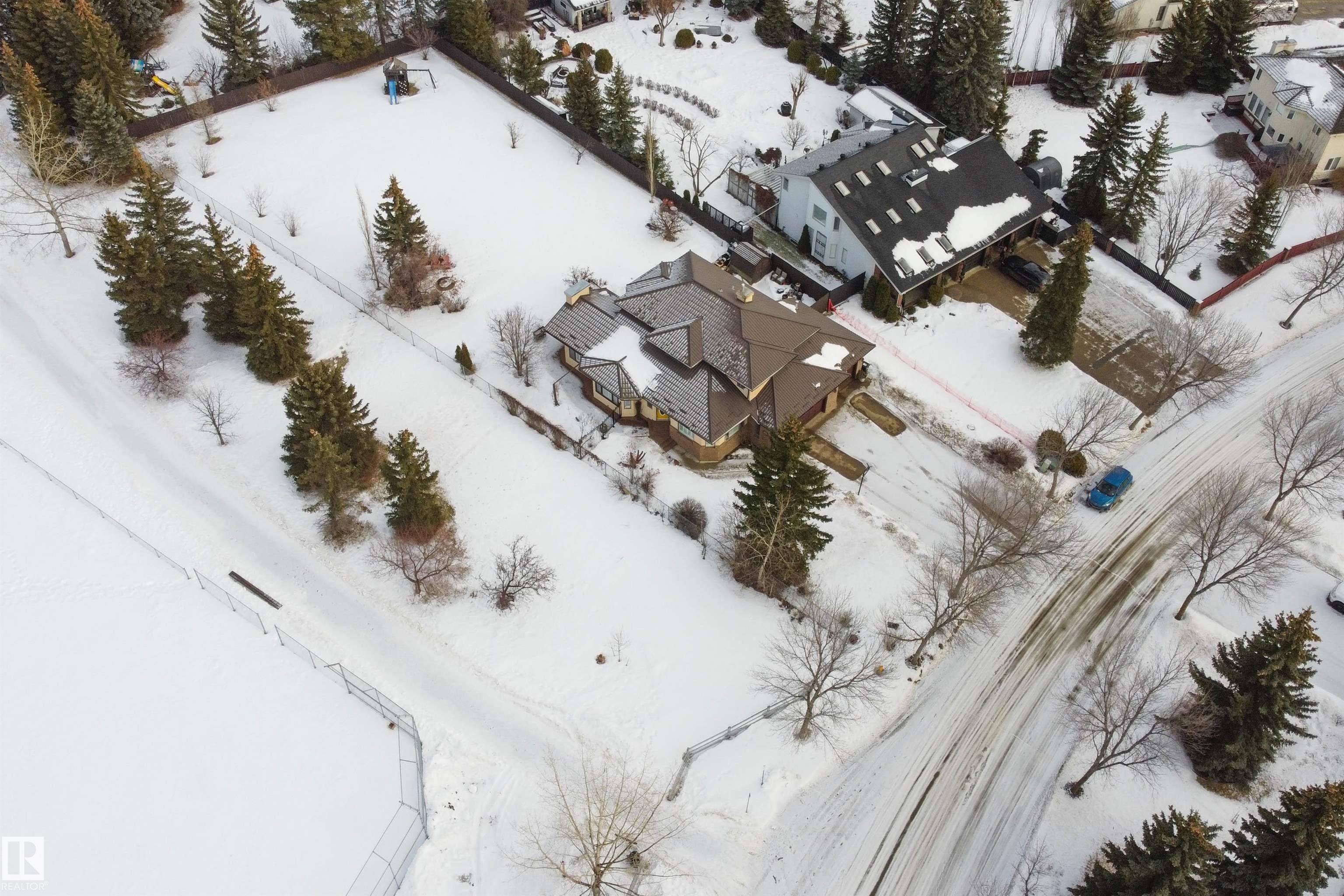 Situated on a rare ˝-acre lot in the sought-after Estates of Sherwood Park, this exceptional property offers the perfect balance of acreage living with urban convenience. Located adjacent to a baseball diamond, a soccer field and an ODR, outdoor recreation is right at your doorstep. This stunning 4 bed, 4 bath home features a heated triple-car garage and an oversized driveway with parking for up to 6 vehicles. Inside, the open-concept layout delivers a warm inviting feel, highlighted by a chef-inspired kitchen with a show-stopping 12-foot granite island?ideal for entertaining. The main floor boasts 2 beautiful living rooms surrounded by walls of windows that flood the home with tons of natural light. Step outside to the ultimate backyard with 2 private patios, and offering over 10,000 sq/ft of outdoor living space, perfect for a future hockey rink, swimming pool, and fabulous summer gatherings. Walking distance to restaurants and groceries, this is truly a one-of-a-kind property in an unbeatable location!