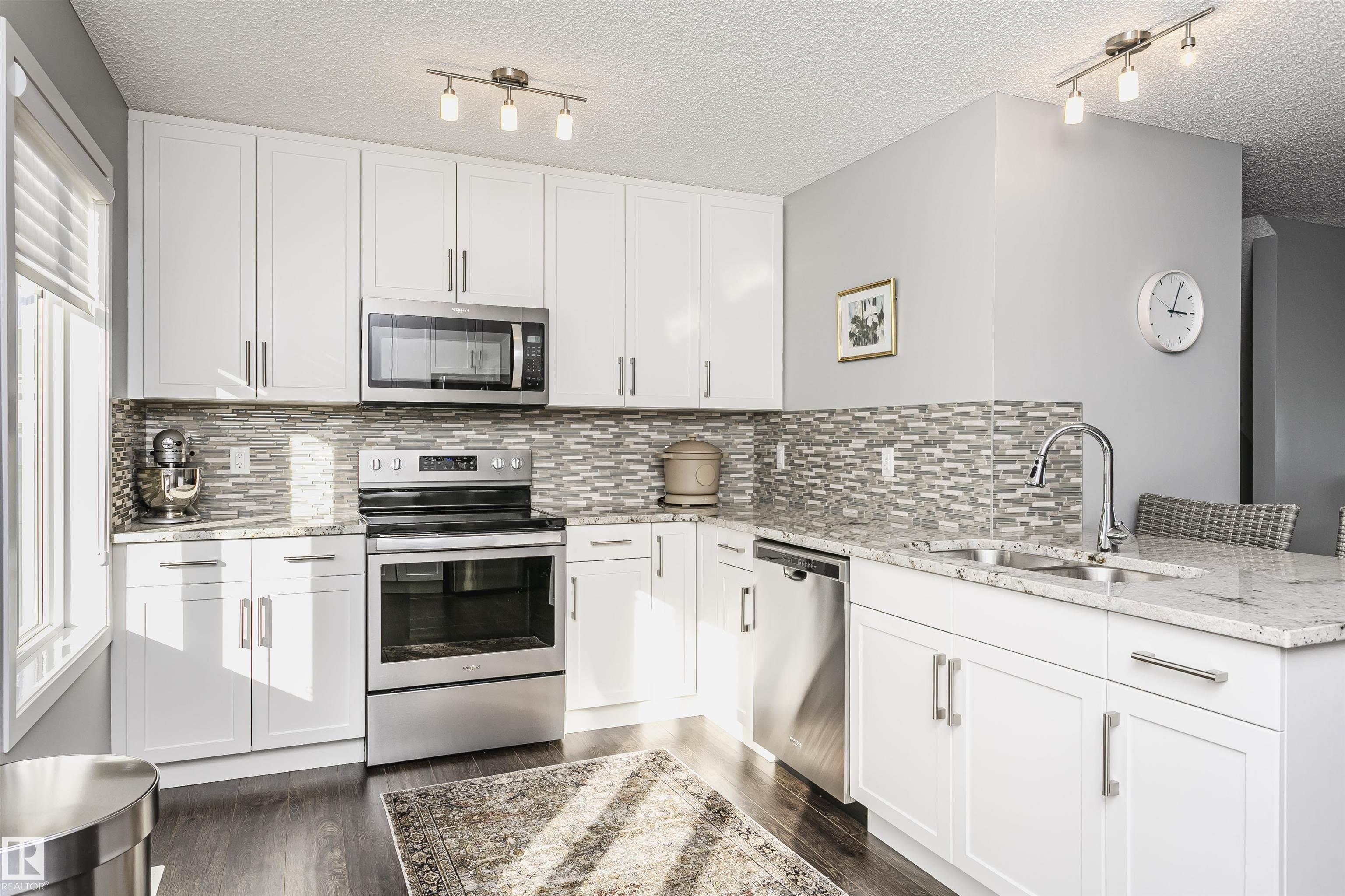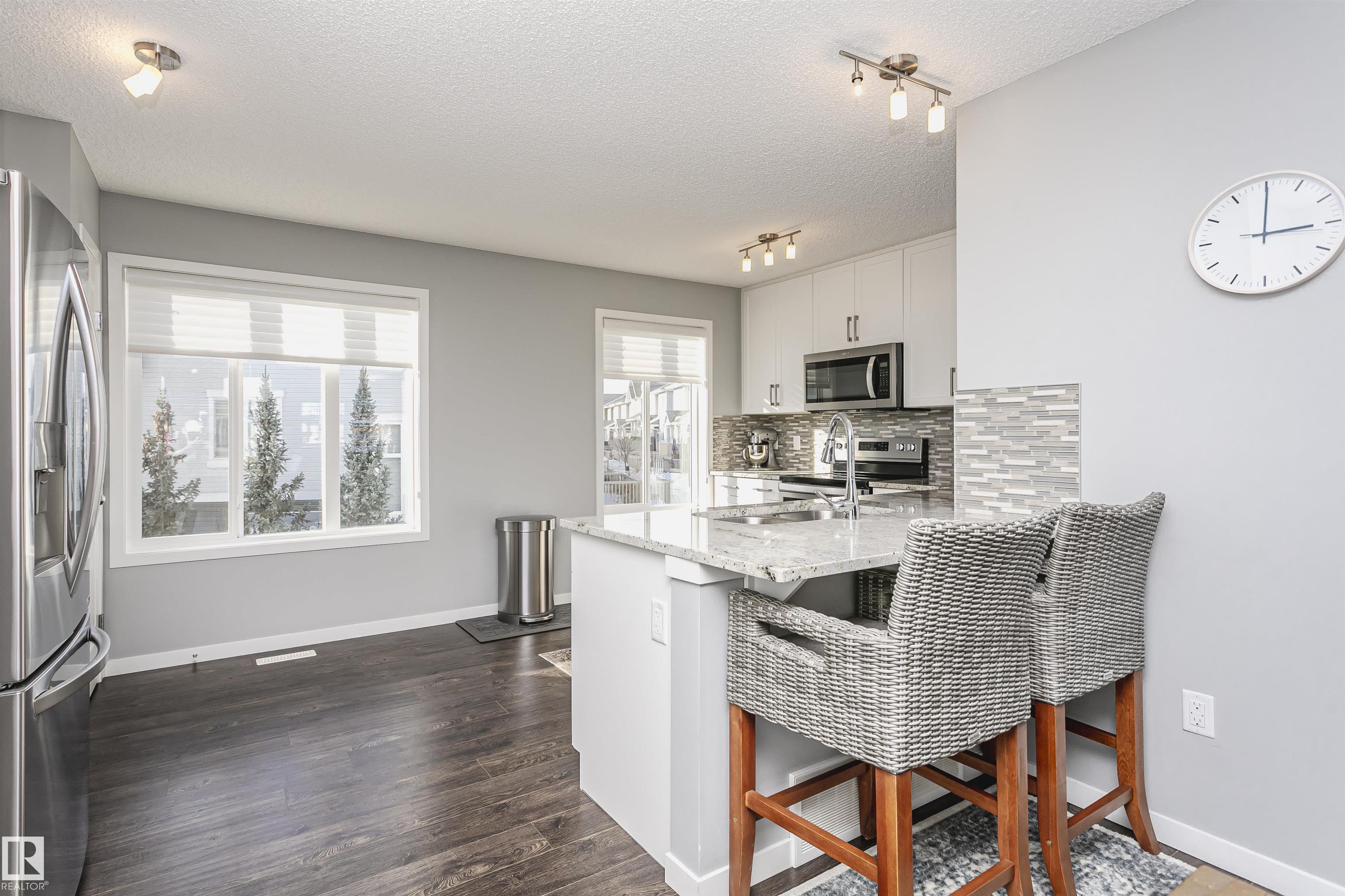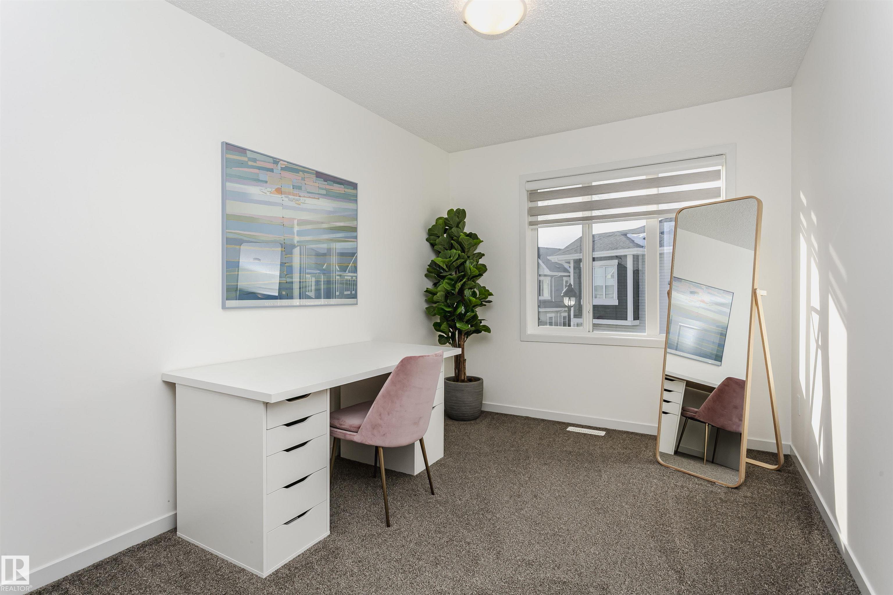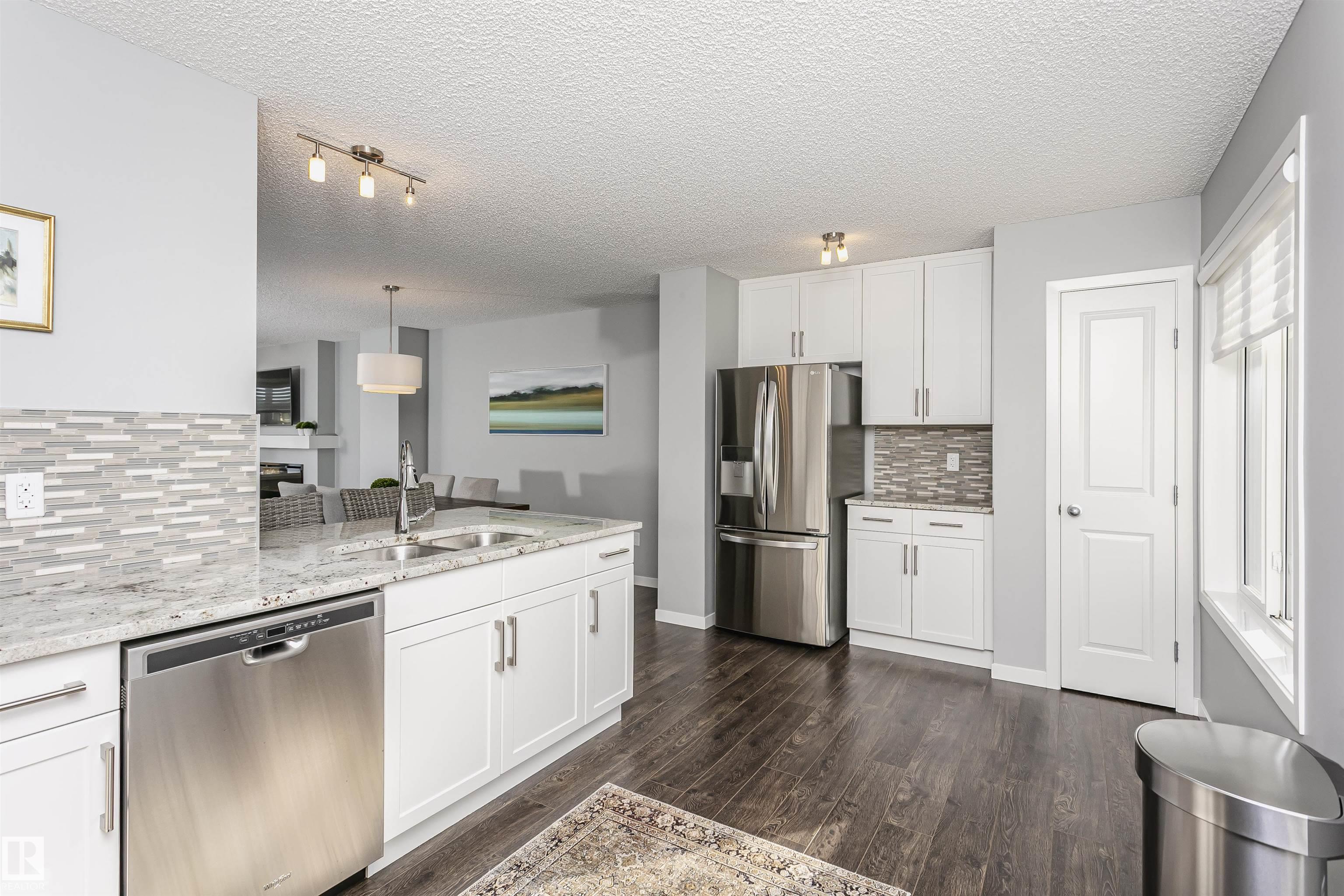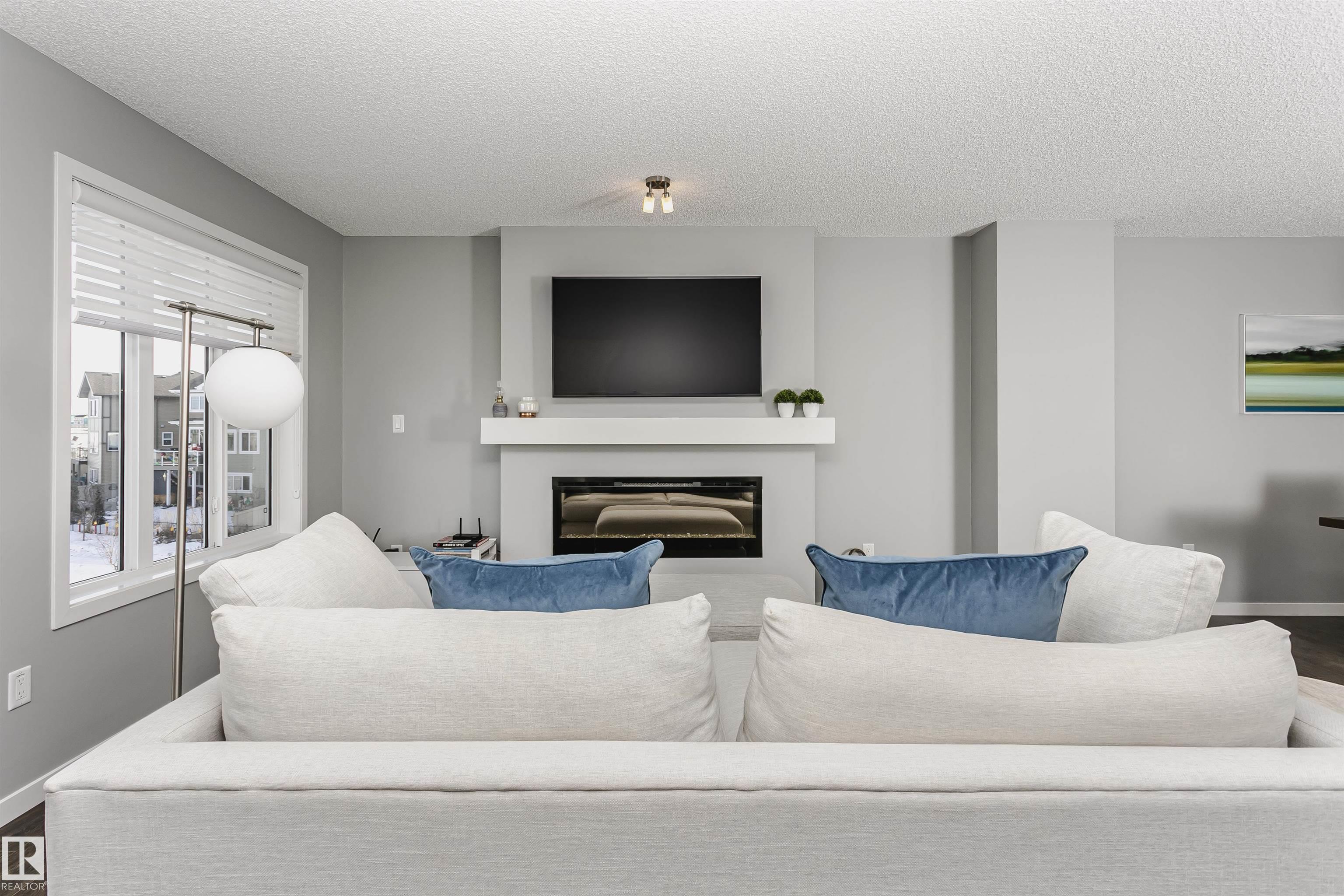 Better than new with breathtaking pond views!! Welcome to this beautiful, immaculately maintained townhouse with 1678 sq/ft of living space. This home offers modern living with 3 bedrooms plus a private den, and a 2-car attached garage. Bright open-concept main floor with living room and access to the balcony, the perfect spot to savor your morning coffee while enjoying the serenity of a pond. Designer dream kitchen with oversized countertops with an eating bar, elegant tile backsplash, upgraded stainless steel appliances and loads of cabinetry. A generous dining area, a convenient powder room completes this level. The primary suite on the upper level has a walk-in closet and a full ensuite, while 2 additional bedrooms, a full bathroom and a laundry room provide plenty of space for the whole family. Ground level offers a welcoming foyer and a flexible den/flex room with incredible views of the pond and direct access to the garage. Front fenced yard is perfect for BBQs with family & friends. Welcome Home!