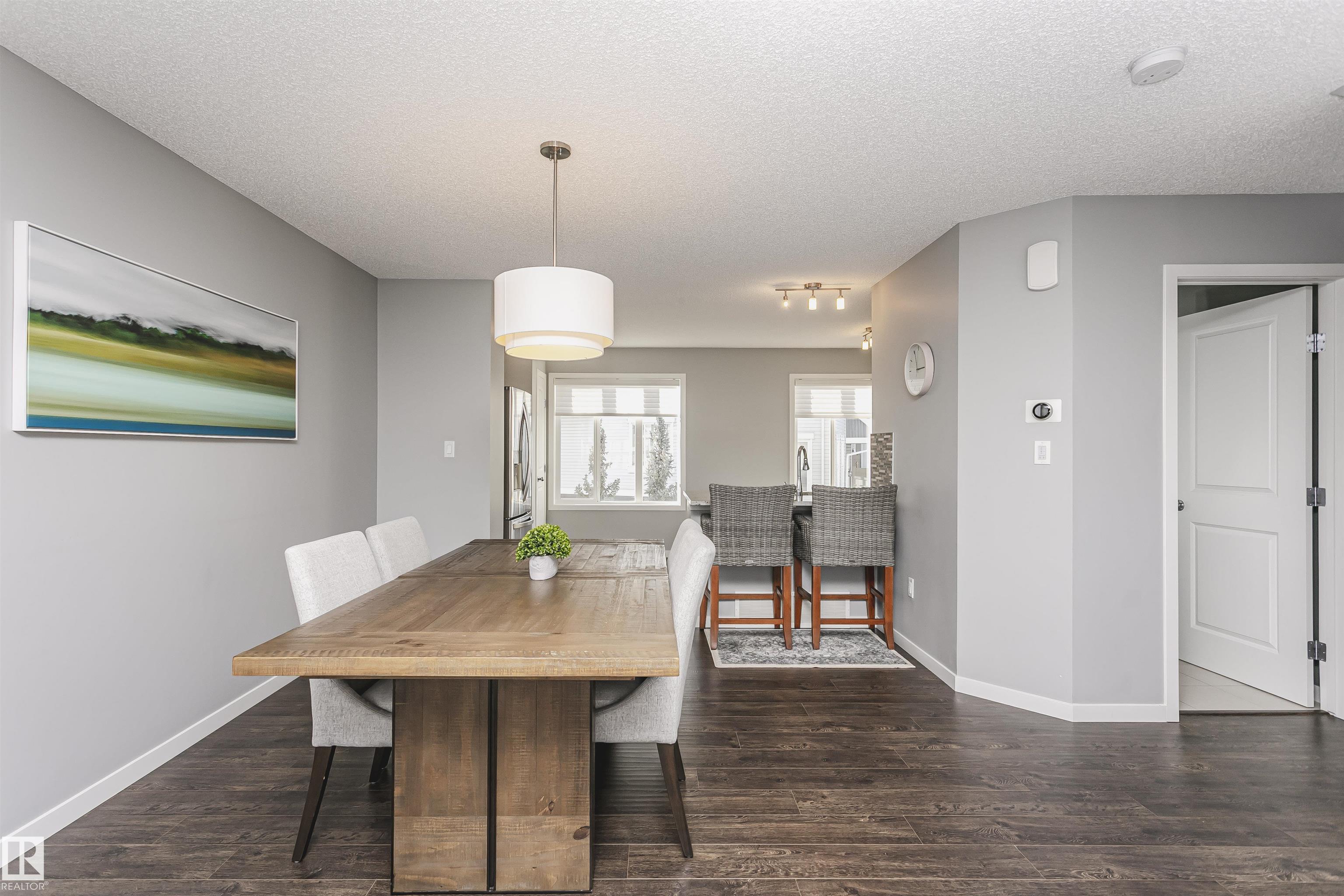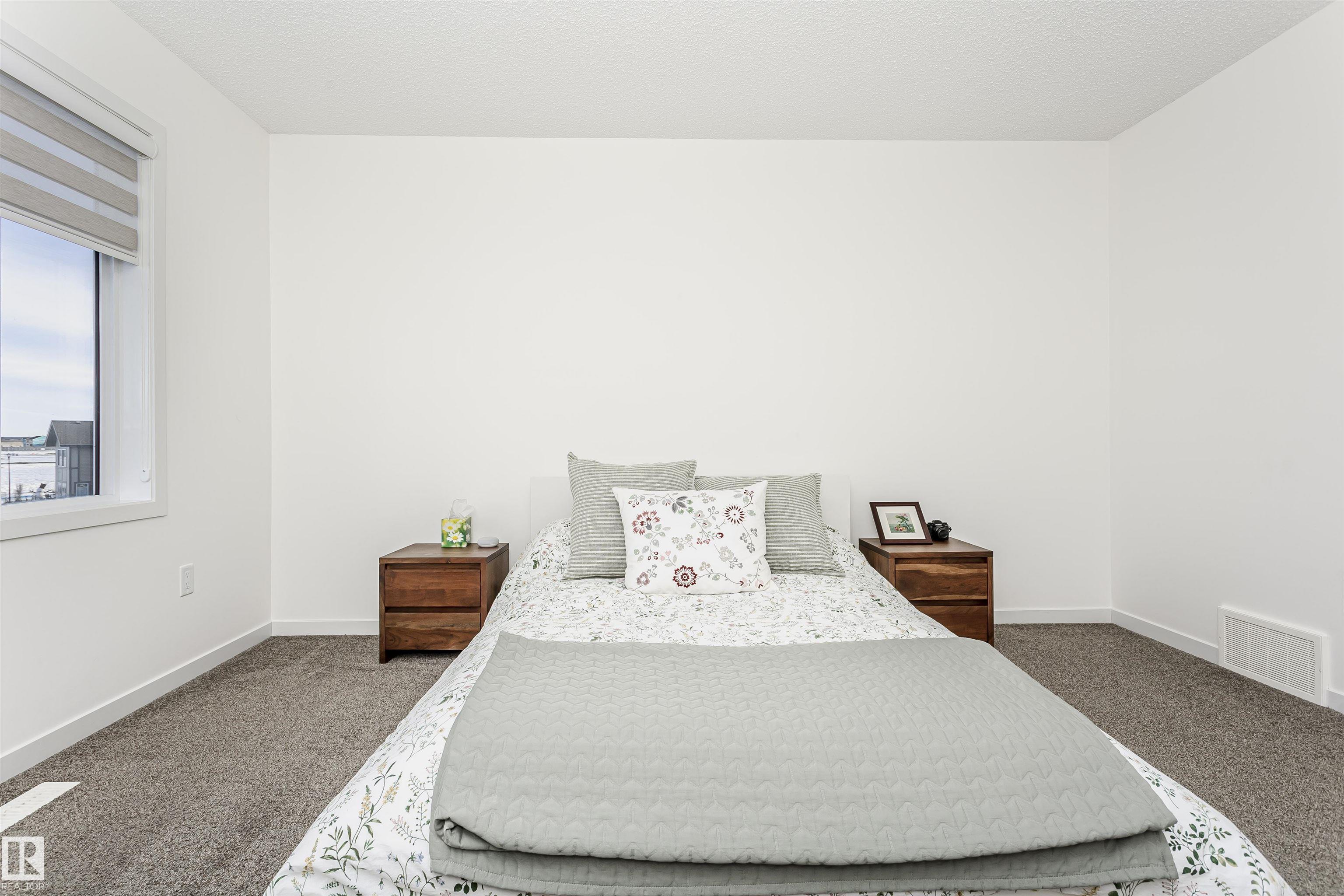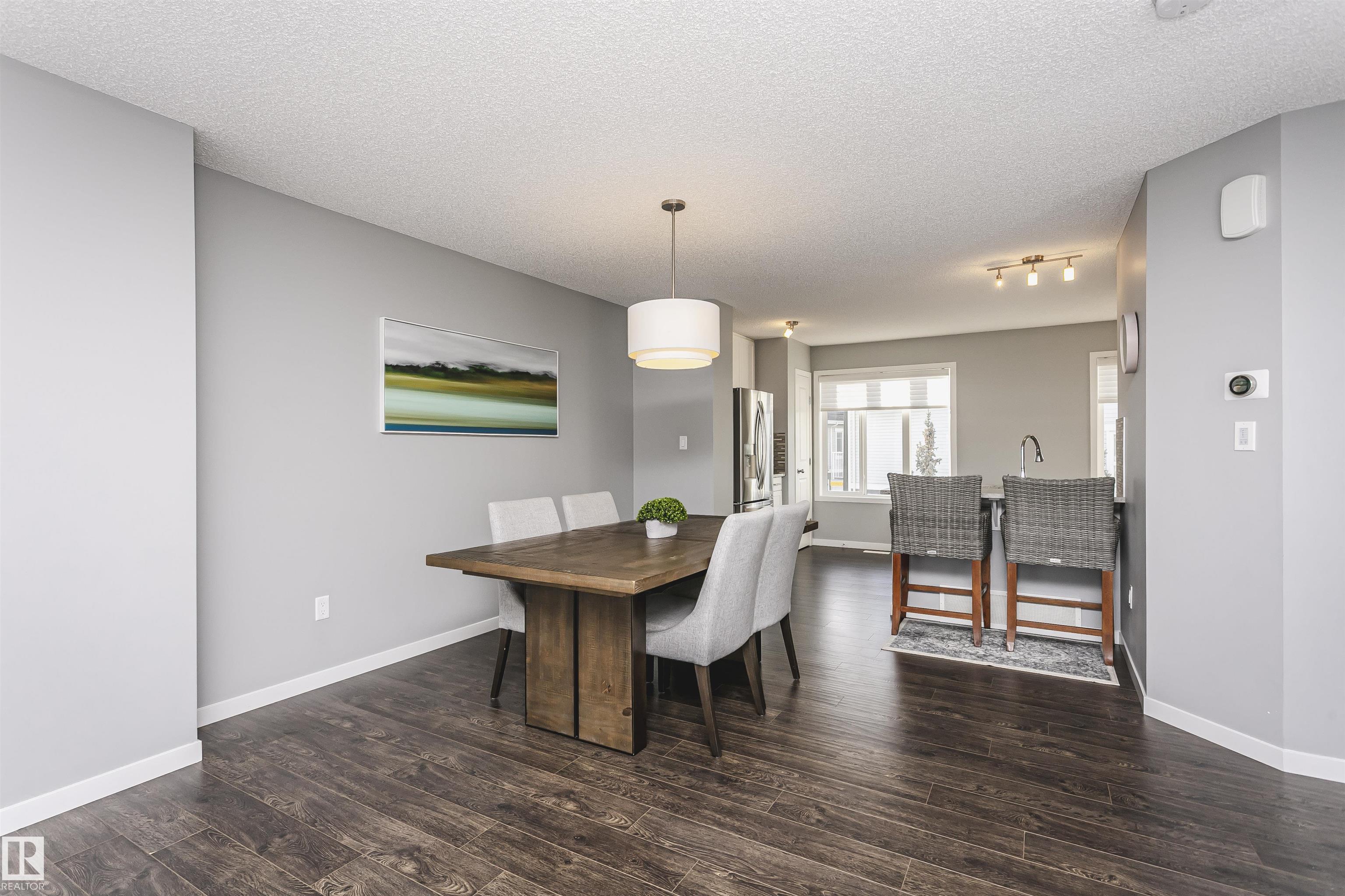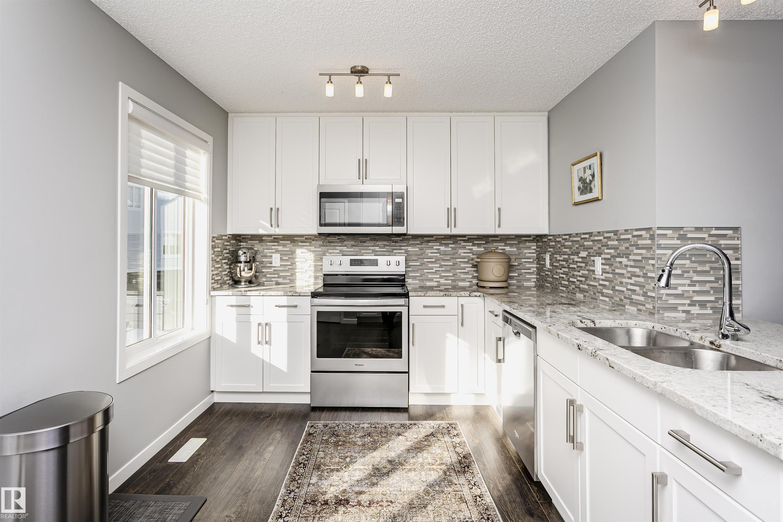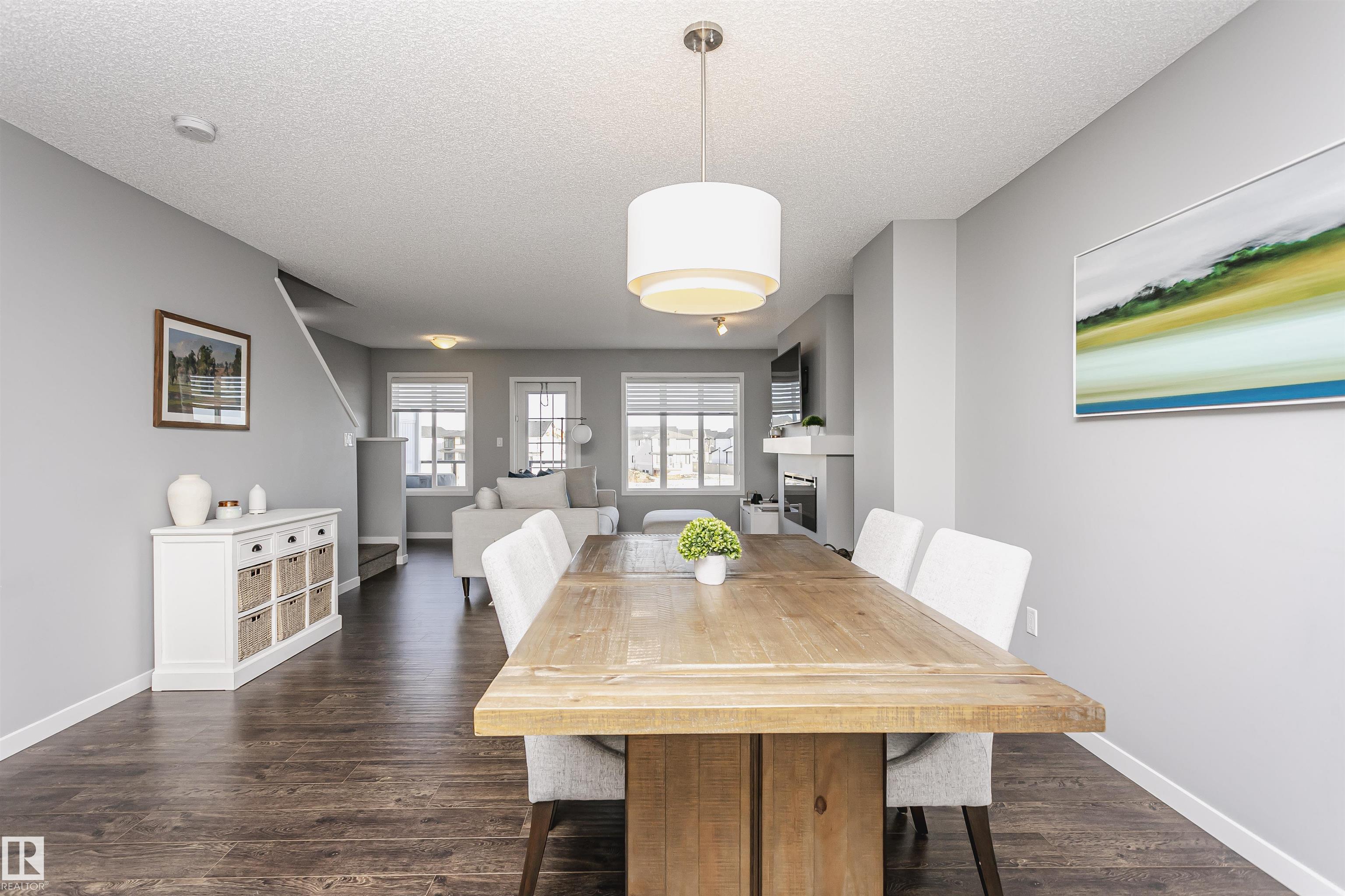 Better than new with breathtaking pond views!! Welcome to this beautiful, immaculately maintained townhouse with 1678 sq/ft of living space. This home offers modern living with 3 bedrooms plus a private den, and a 2-car attached garage. Bright open-concept main floor with living room and access to the balcony, the perfect spot to savor your morning coffee while enjoying the serenity of a pond. Designer dream kitchen with oversized countertops with an eating bar, elegant tile backsplash, upgraded stainless steel appliances and loads of cabinetry. A generous dining area, a convenient powder room completes this level. The primary suite on the upper level has a walk-in closet and a full ensuite, while 2 additional bedrooms, a full bathroom and a laundry room provide plenty of space for the whole family. Ground level offers a welcoming foyer and a flexible den/flex room with incredible views of the pond and direct access to the garage. Front fenced yard is perfect for BBQs with family & friends. Welcome Home!