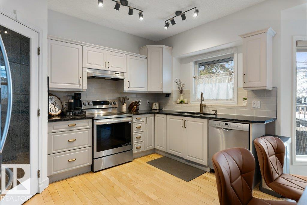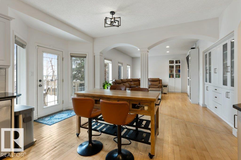 Just steps from the Sturgeon River, Botanic Park & Woodlands Water Park, this fully finished home blends space & comfort. With five bedrooms & four bathrooms, there is room for everyone to grow & gather. The great room features soaring ceilings, large windows & a fireplace creating a bright feel. The kitchen sits at the heart of the home with granite countertops, stainless steel appliances, ample cabinetry & a pantry, flowing into spaces ideal for family meals. A cozy family room overlooks the backyard, while the dining room adds classic appeal. The main floor offers hardwood & ceramic tile, updated lighting, a two piece bath, laundry closet & enclosed mudroom. Upstairs, a rare layout places four bedrooms together, including a spacious primary retreat with two walk in closets, soaker tub, separate shower & vanity area. The fully finished lower level offers a large family room, wet bar, fifth bedroom & full bath. An attached garage, deck, stone patio & dog run complete this inviting family home.