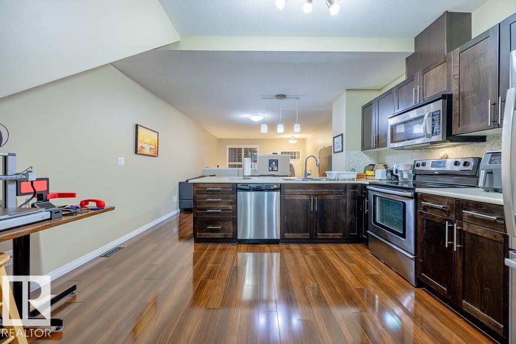 Welcome to this bright and modern townhome in desirable South Terwillegar offering over 1,000 sq. ft. of open-concept living and truly maintenance-free living in a fantastic location. The main floor features a spacious great room with living and dining areas, an L-shaped kitchen with maple cabinetry, granite countertops, stainless steel appliances, and a convenient 2-piece powder room?perfect for everyday living and entertaining. Upstairs, you?ll find two generously sized bedrooms, each with access to a full bathroom, including a primary bedroom with its own ensuite. An upper-floor laundry adds everyday convenience. The lower level includes the mechanical room and an oversized tandem-style attached garage, providing ample storage and easy access in and out. Located near Schools, the Community Garden, and the neighbourhood?s central amenities?including a corner store, café, and restaurant?this community is known for its welcoming, family-friendly atmosphere and pet-friendly lifestyle.