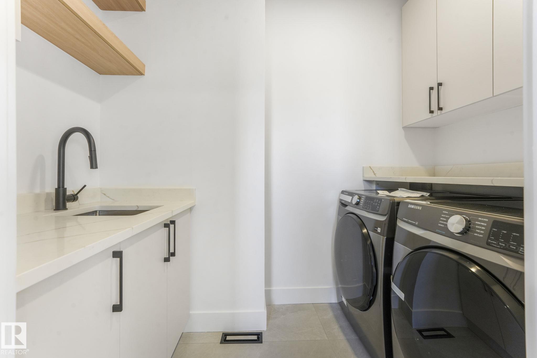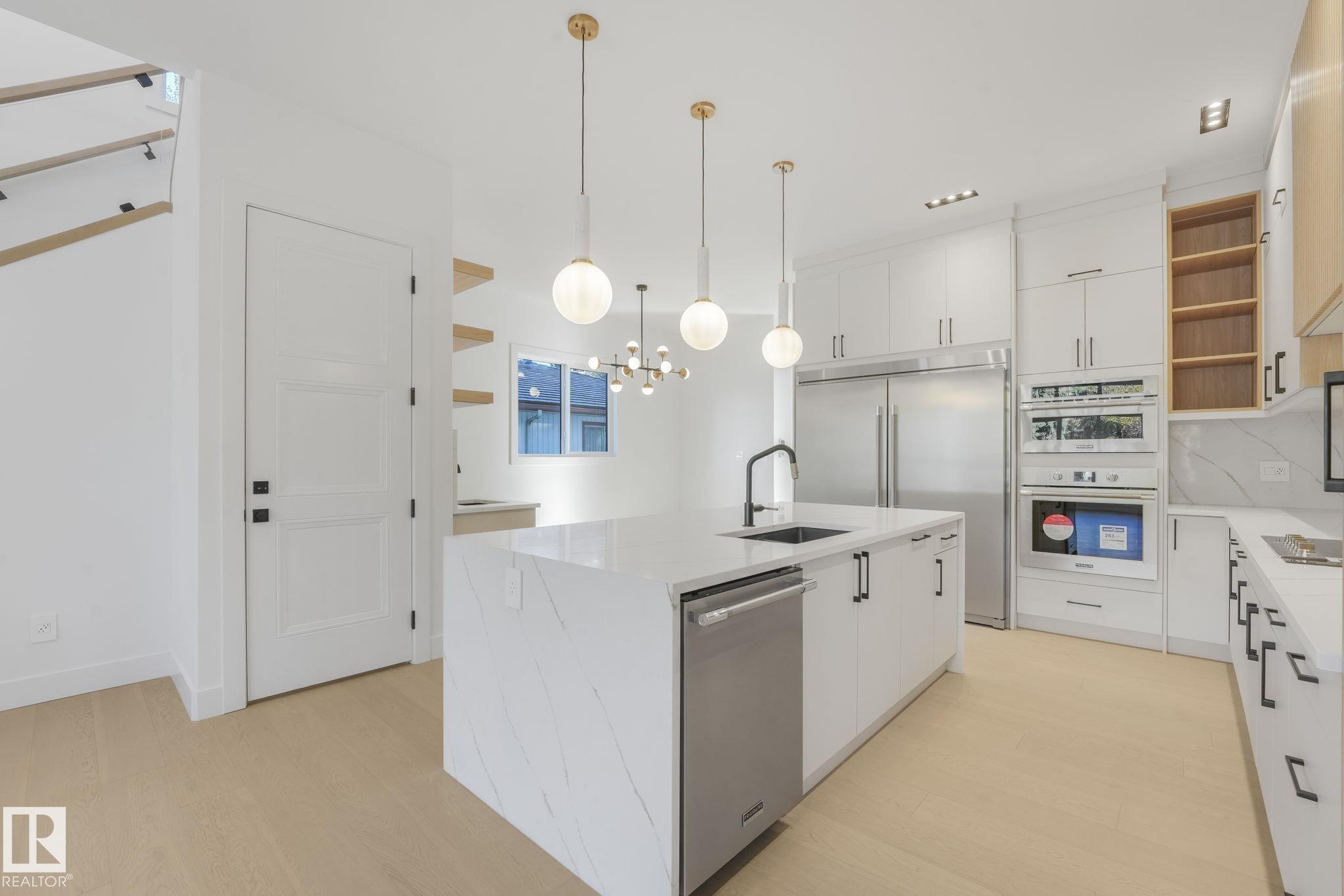 Live in Luxury in Prestigious Crestwood!!! Step into timeless elegance with this brand-new custom two-storey home, where thoughtful design meets modern sophistication. The 10-ft main floor ceilings and engineered hardwood floors create a grand, inviting space featuring a sunlit living room, chef-inspired kitchen with quartz waterfall island, walk-in pantry, wet bar with wine fridge, full bath, and guest bedroom. Upstairs, retreat to your primary sanctuary with a 5-piece spa ensuite with heated floors and a Jacuzzi tub, plus a walk-in closet, two bedrooms, a bonus room, and laundry. Every detail reflects craftsmanship ? triple-pane windows, acrylic stucco, customer closets, high-quality glass railings, Riobel faucets, and designer lighting. The 2-bedroom legal basement suite adds income or family flexibility. With an oversized garage and premium finishes, this home defines modern luxury in Edmonton?s most coveted community!!!