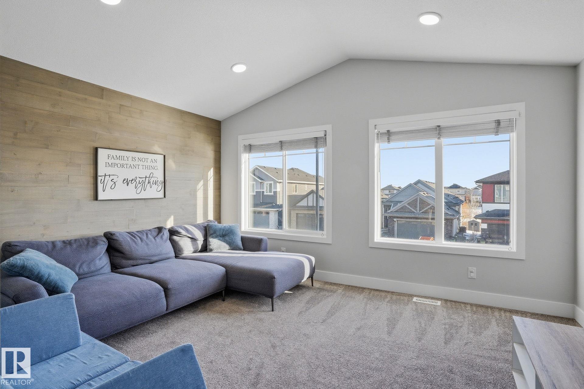 Welcome to this former show home on a sunny corner lot in Secord, where thoughtful design and everyday comfort come together. From the moment you step inside, the 9 foot ceilings on the main floor and basement create a bright, open atmosphere that instantly feels like home. The spacious kitchen is the heart of the home - perfect for gathering, cooking, and making memories - featuring ample cabinetry and the added luxury of a butler's kitchen. Cozy evenings are easily enjoyed by the modern electric fireplace, while large windows fill the space with natural light throughout the day. Upstairs, the vaulted bonus room offers a warm and inviting retreat for family time, movie nights, or quiet moments to unwind. With huge closets and functional mudroom areas, the home is as practical as it is welcoming. Step out onto the covered deck to enjoy peaceful mornings or relaxed evenings. Just steps from the pond and nearby schools, this home offers a true sense of community, comfort, and connection.