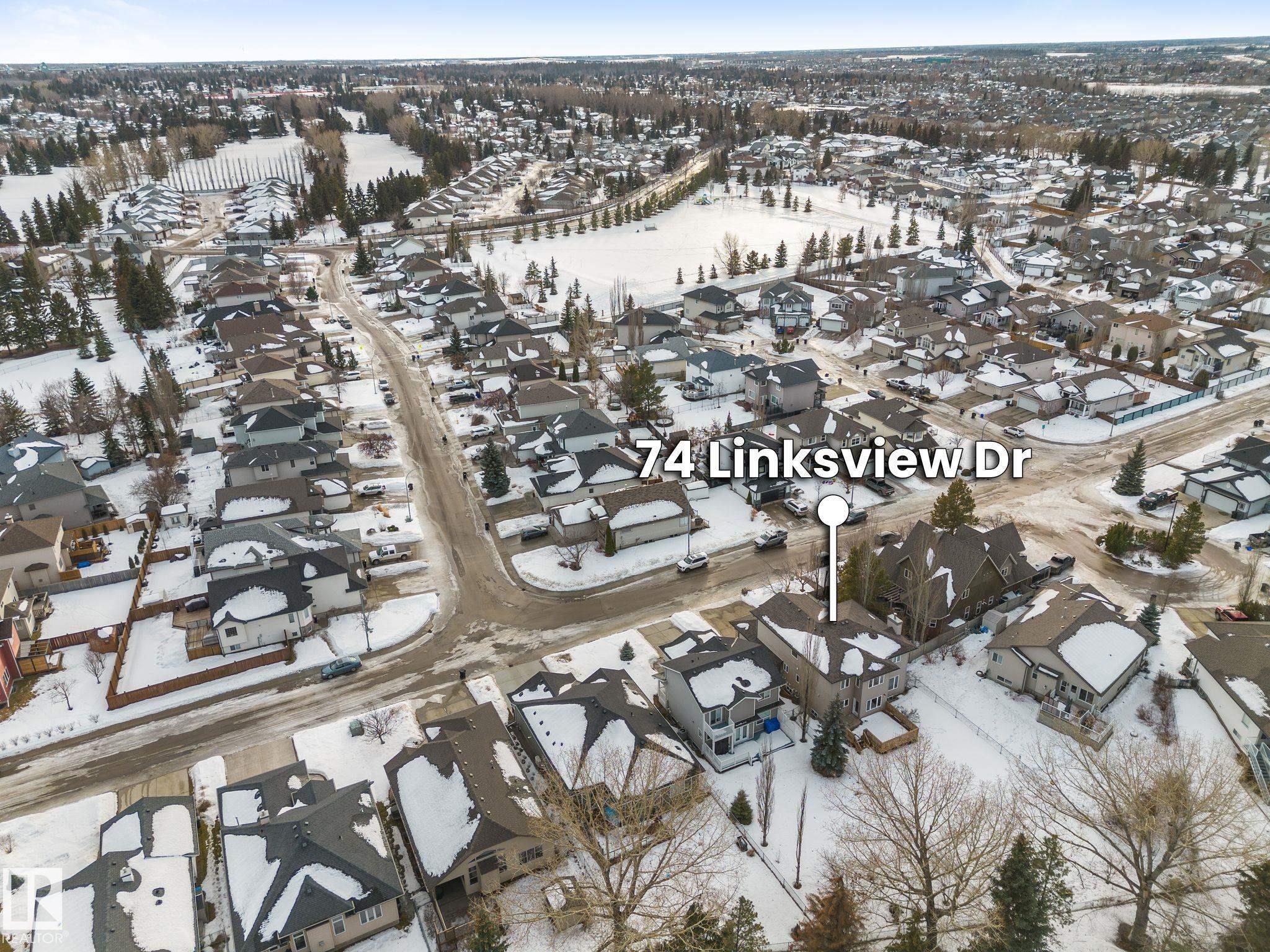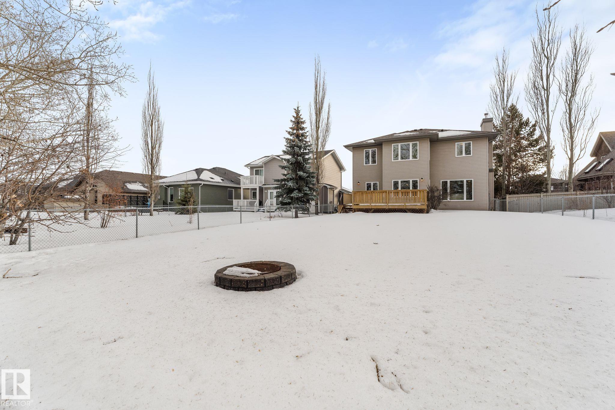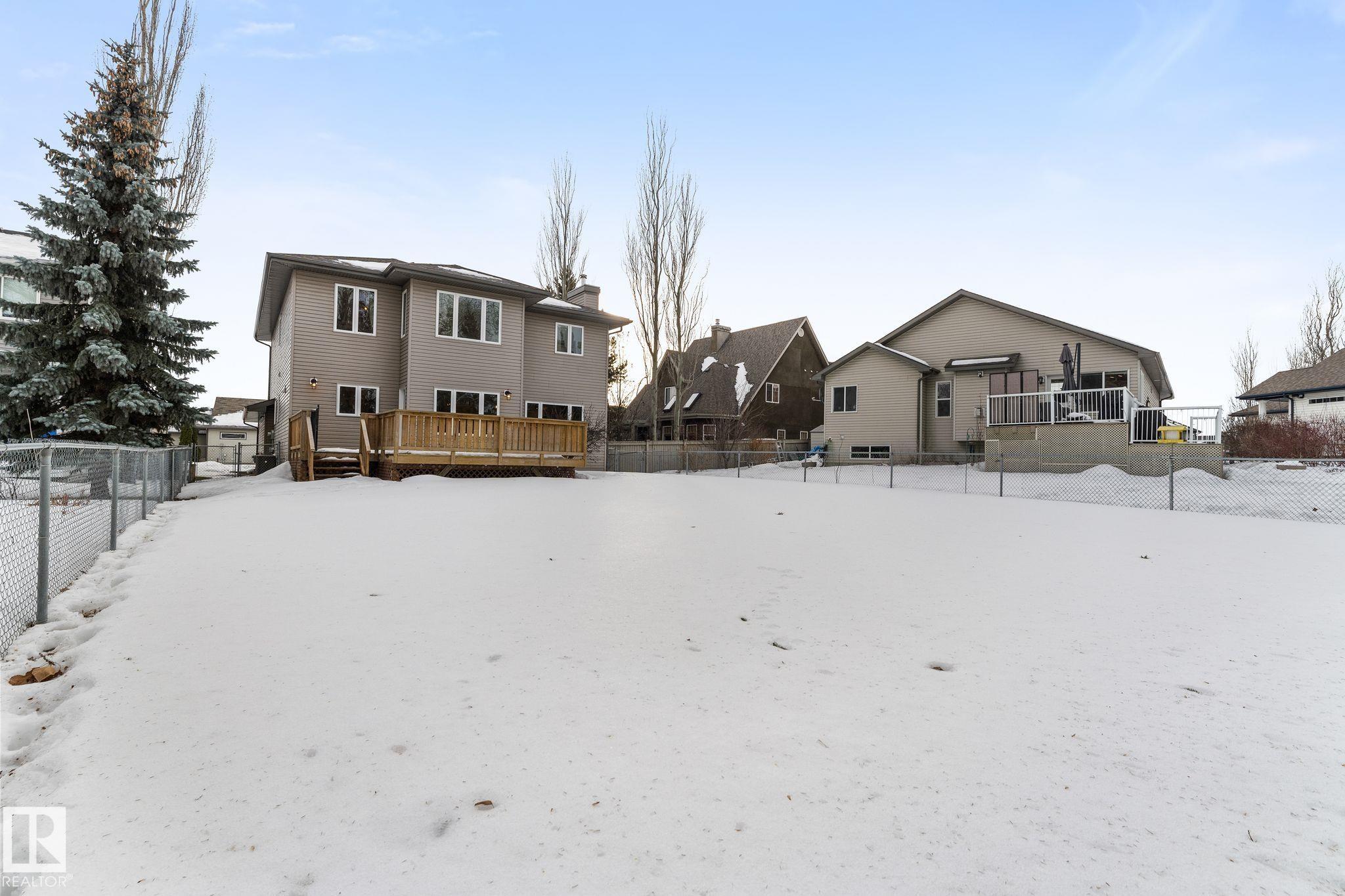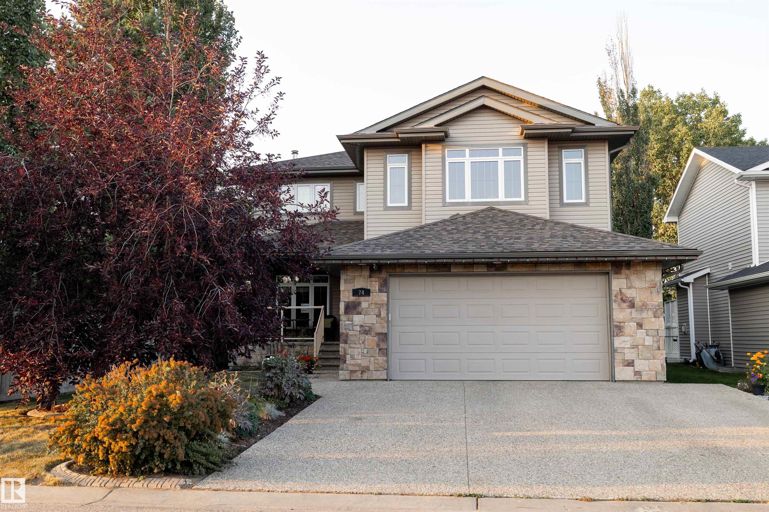 Spacious 2-storey family home offering over 4,000 sq ft of fully finished living space, backing onto the golf course with central A/C. The upper level features a relaxing primary retreat with sitting area, walk-in closet, and 5-piece ensuite with soaker tub, plus two large bedrooms with walk-in closets, a 4-piece bath, and a bright bonus room perfect for movie nights. The main floor includes hardwood , a front office or homework space, main-floor laundry, large front and back entrances, 2-piece bath, and an open-concept kitchen and living room with a cozy wood-burning fireplace. The fully finished basement offers in-floor heating, a large rec room plumbed for a wet bar, a fourth bedroom with walk-in closet, and plenty of storage. Mechanical updates and shingles completed in recent years. Enjoy the fully fenced yard, front veranda, back deck, and oversized garage?a wonderful home designed for family life and fun!