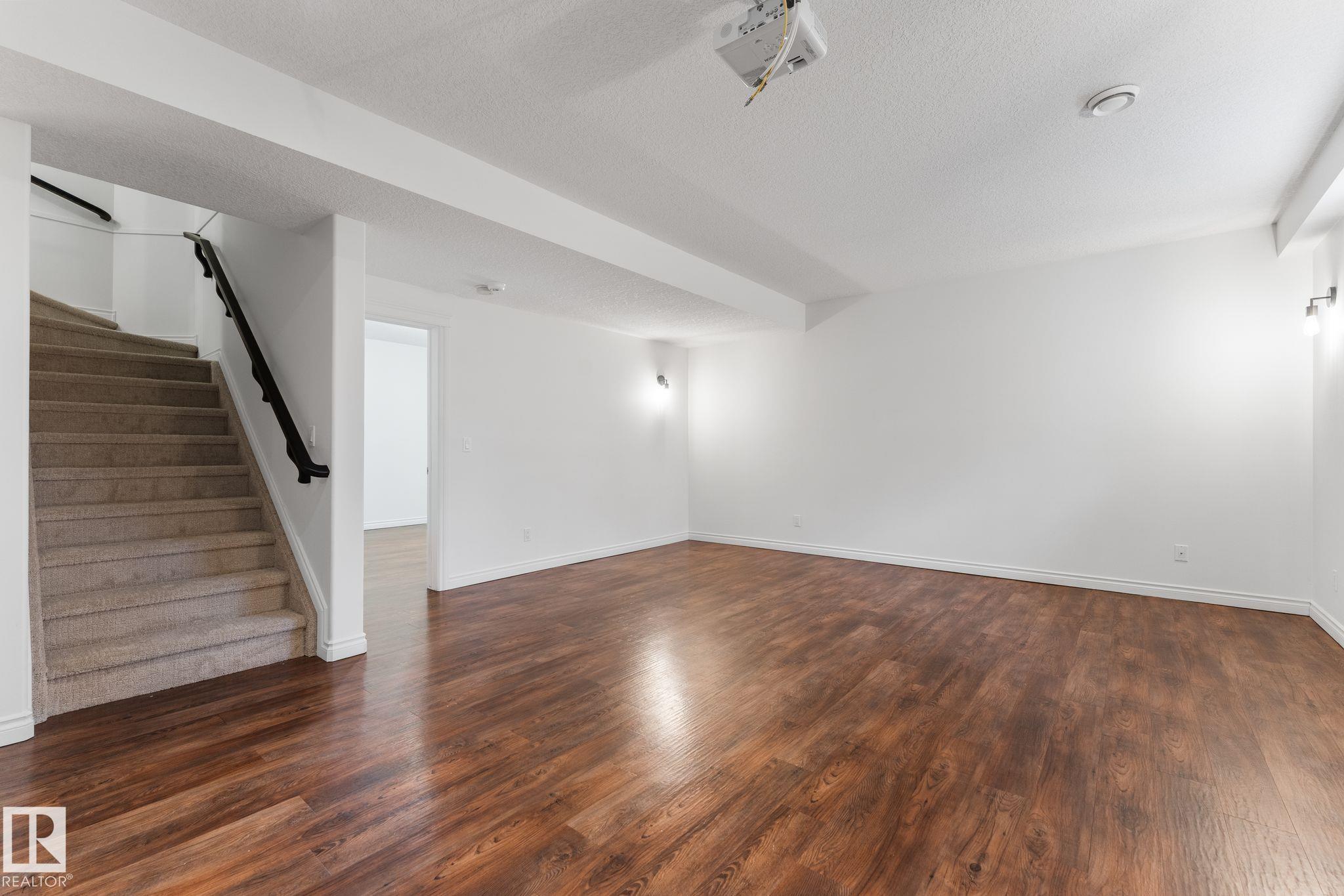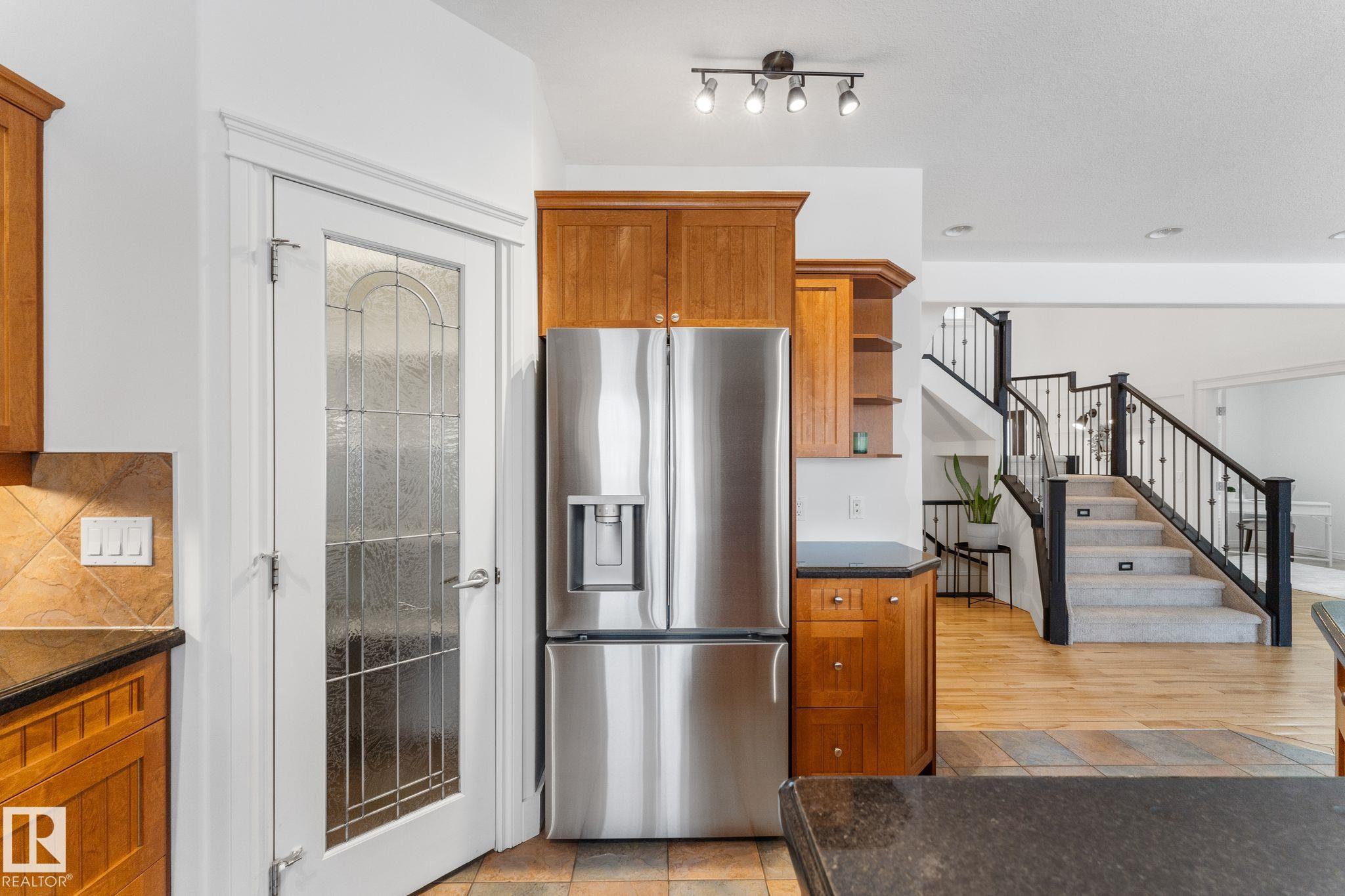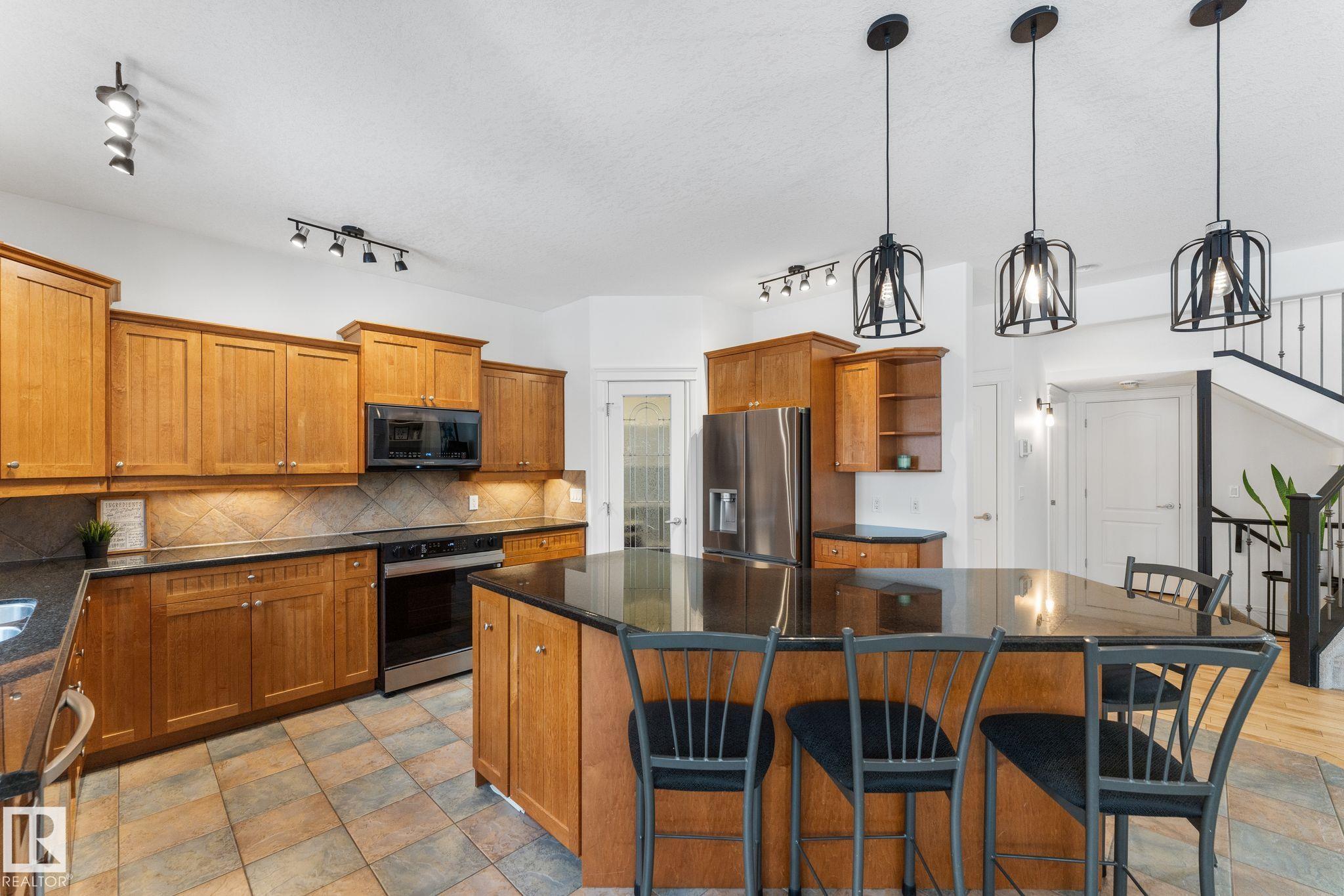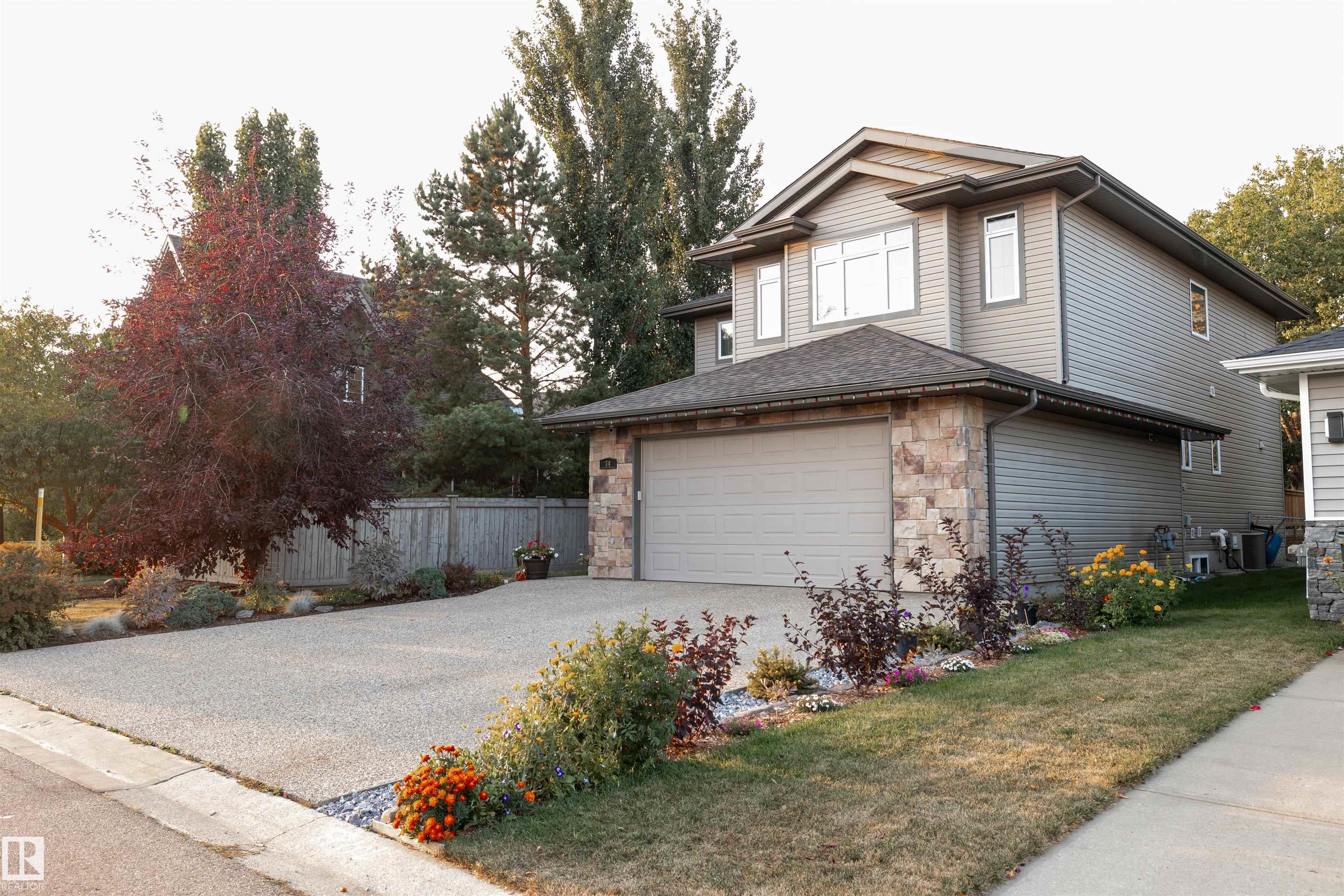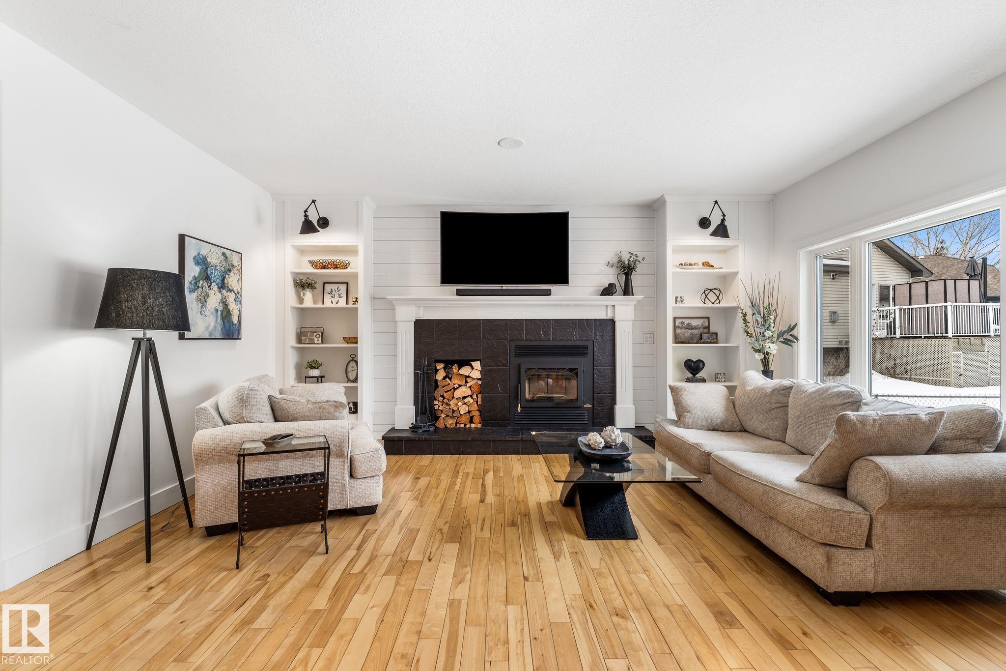 Spacious 2-storey family home offering over 4,000 sq ft of fully finished living space, backing onto the golf course with central A/C. The upper level features a relaxing primary retreat with sitting area, walk-in closet, and 5-piece ensuite with soaker tub, plus two large bedrooms with walk-in closets, a 4-piece bath, and a bright bonus room perfect for movie nights. The main floor includes hardwood , a front office or homework space, main-floor laundry, large front and back entrances, 2-piece bath, and an open-concept kitchen and living room with a cozy wood-burning fireplace. The fully finished basement offers in-floor heating, a large rec room plumbed for a wet bar, a fourth bedroom with walk-in closet, and plenty of storage. Mechanical updates and shingles completed in recent years. Enjoy the fully fenced yard, front veranda, back deck, and oversized garage?a wonderful home designed for family life and fun!