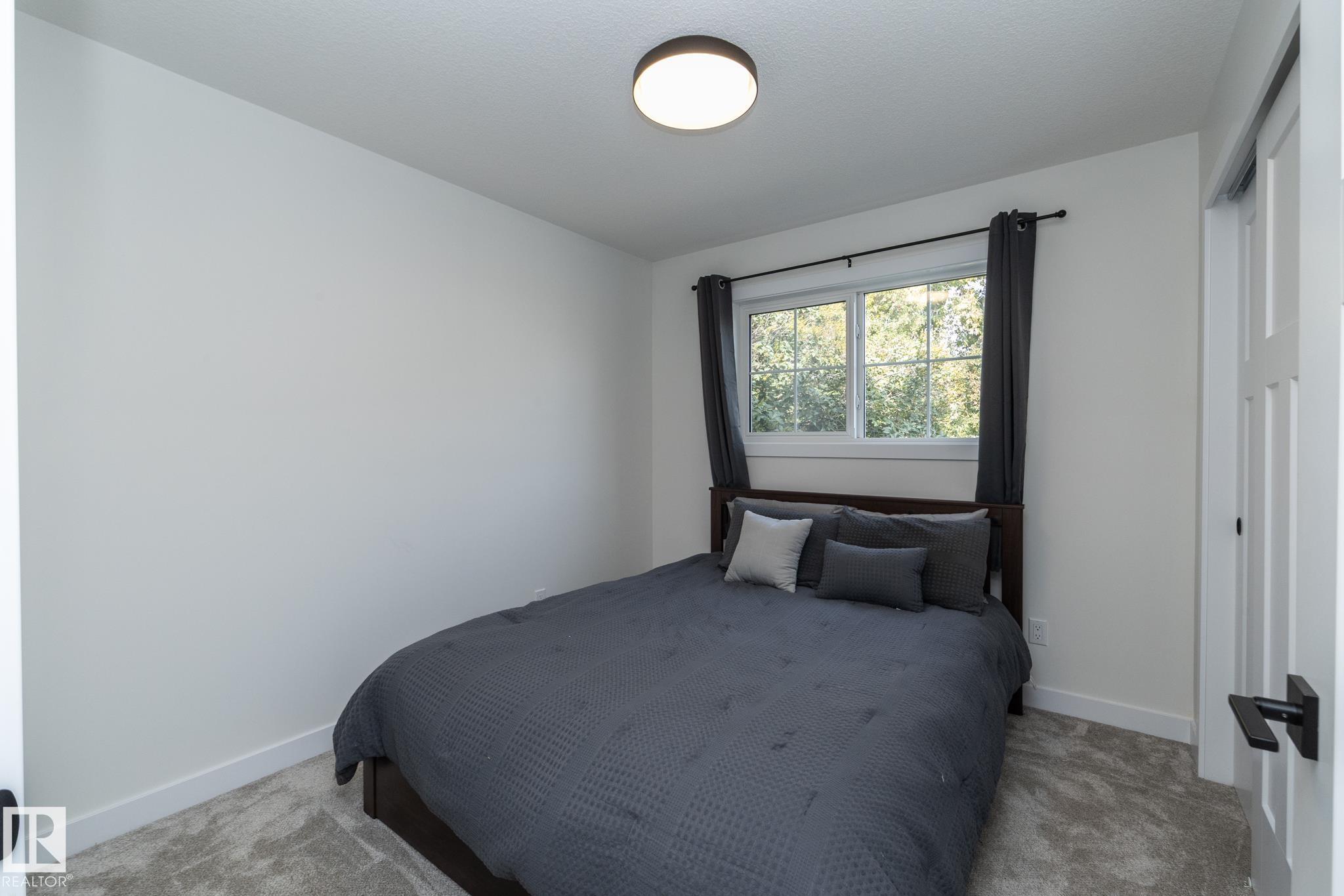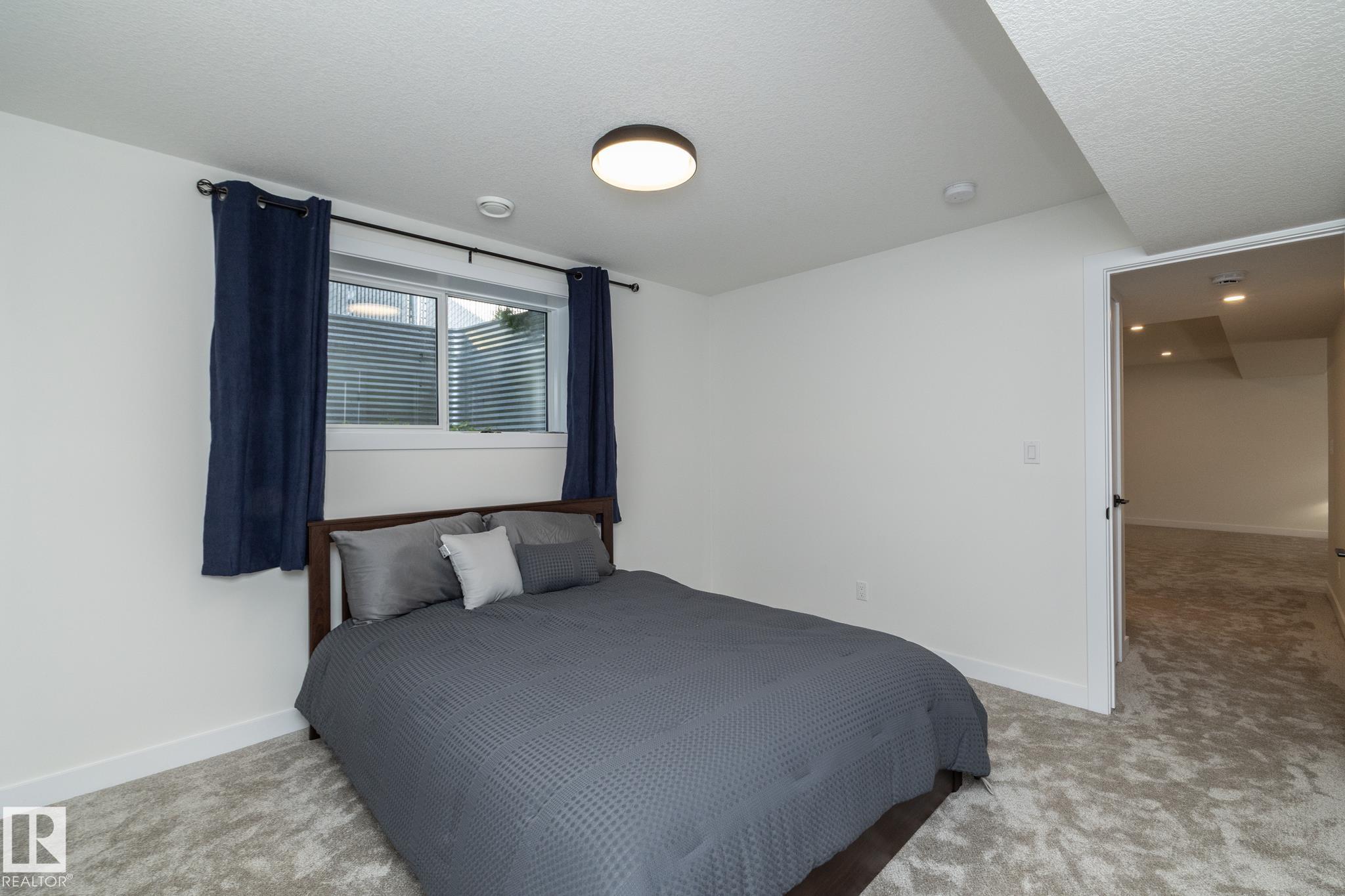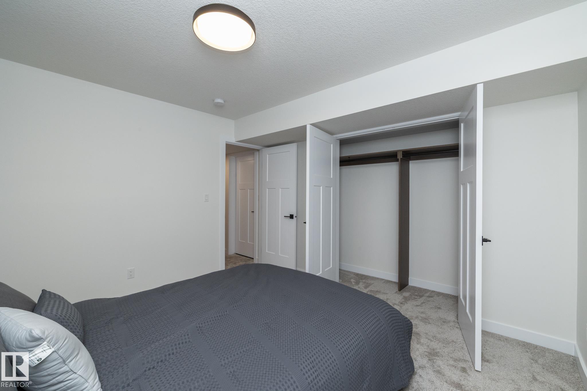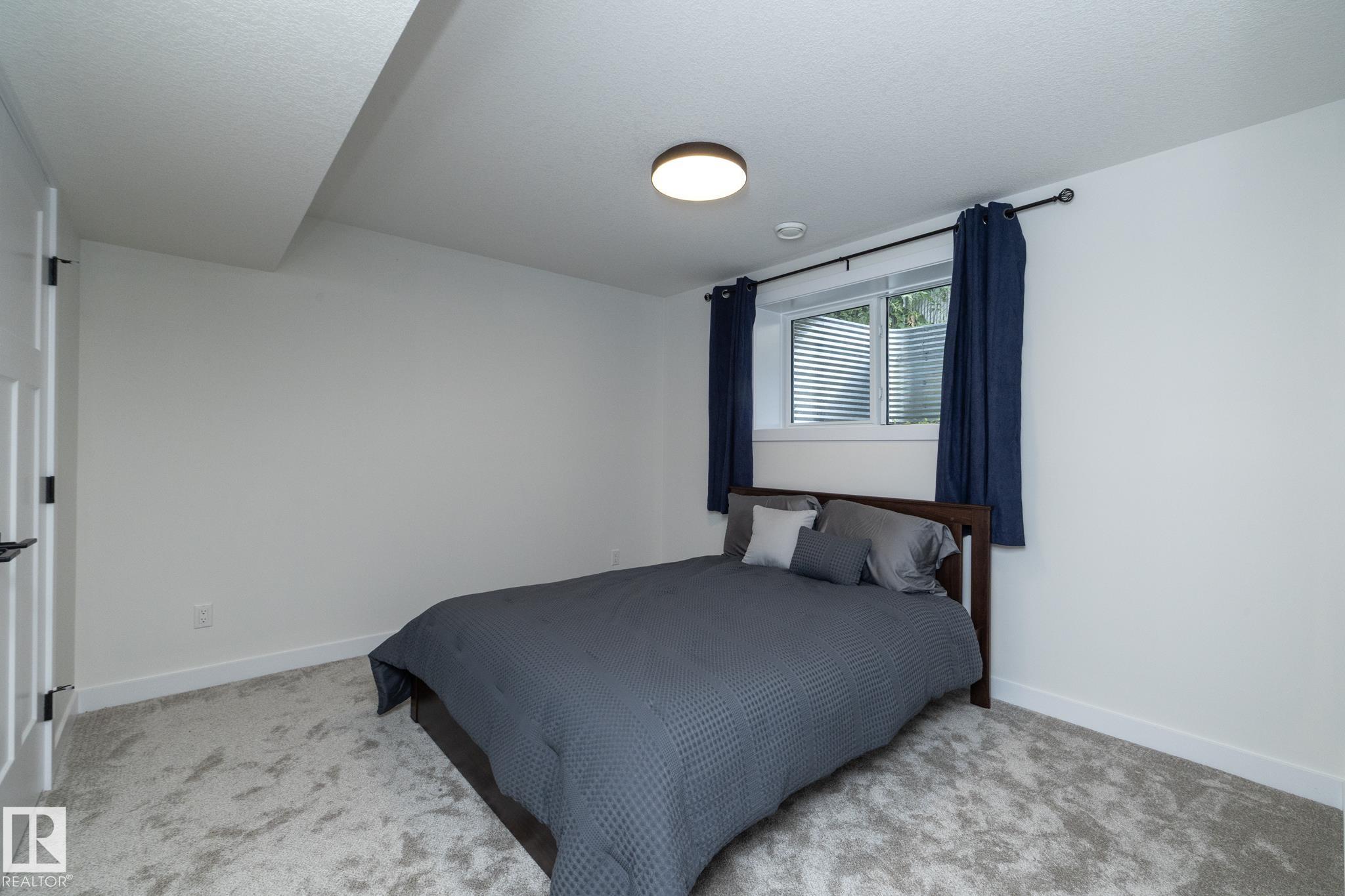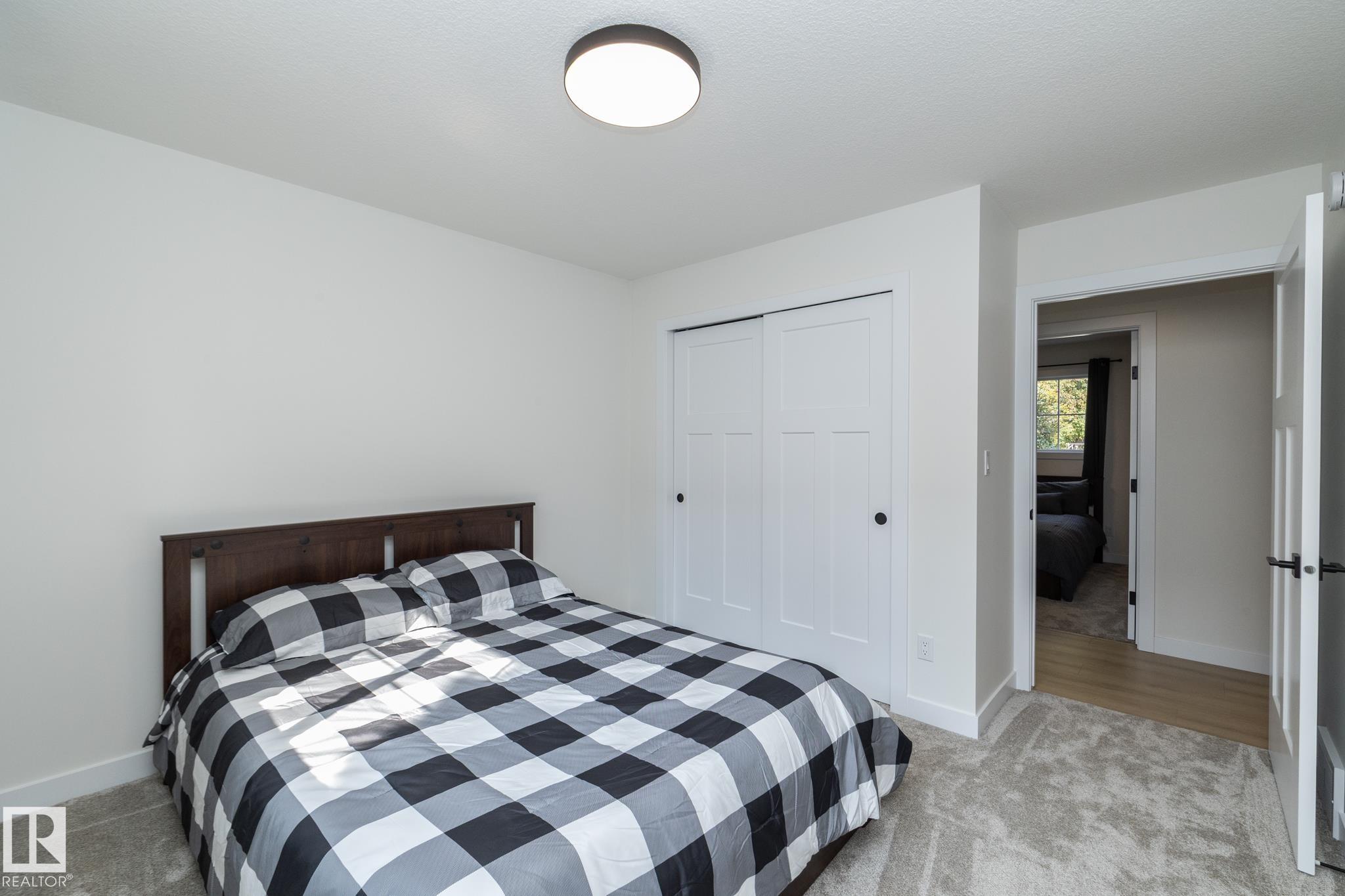 Ready to simplify without sacrificing comfort? This almost new bungalow offers the perfect next chapter. Designed with downsizers in mind, this home delivers approximately 2,200 sq ft of living space in a layout that?s easy to live in, easy to maintain, & beautifully finished throughout.The open-concept main floor feels bright & welcoming, w/wide sightlines, main-floor laundry, & thoughtful flow for everyday living. The kitchen is both stylish & practical, featuring quartz countertops, granite sink, & plenty of workspace?ideal for quiet mornings or hosting family without feeling overwhelmed by space. With 2 bedrooms up plus a 3rd in the finished basement, there?s room for guests, hobbies, or a home office. Step outside to a huge WEST-FACING yard, offering endless possibilities?including space for a future triple garage. Alley access, a double garage, & RV parking add everyday convenience. Enjoy river valley trails, walking paths, while being minutes from the city & Edmonton.