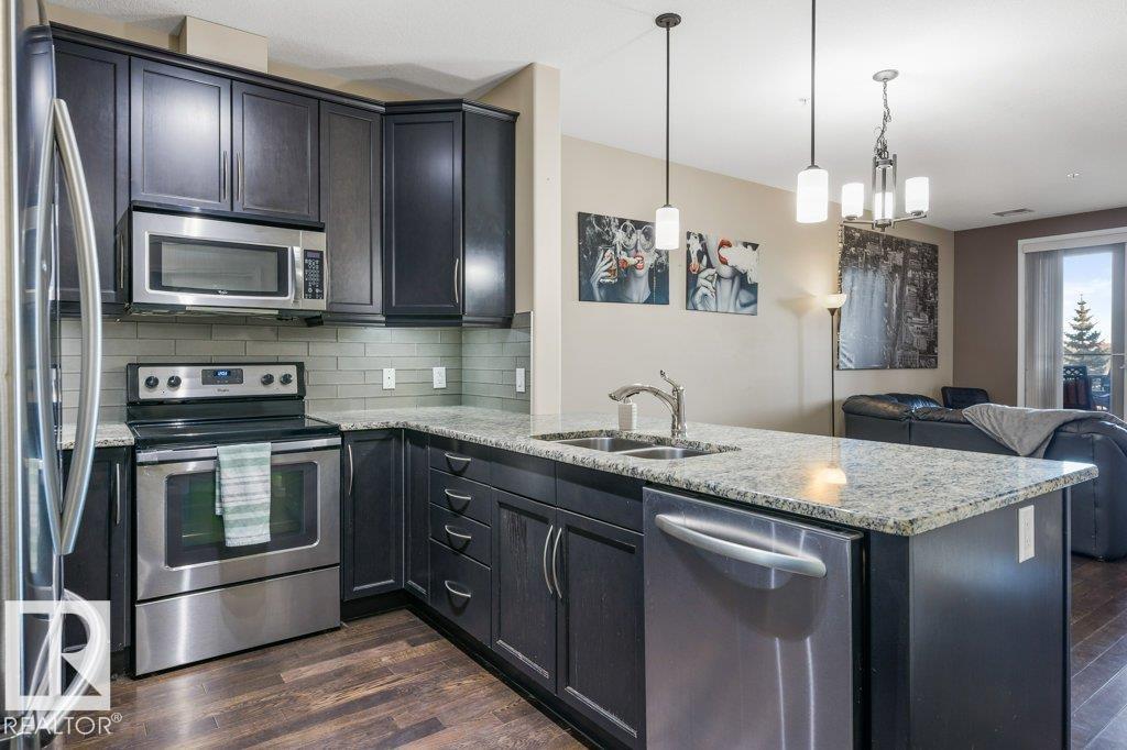 Spacious and well designed condo located in the prestigious neighbourhood of Mactaggart offering an ideal blend of comfort, convenience, and lifestyle. The open floor plan features 9 foot ceilings, hardwood flooring, granite countertops, and stainless steel appliances, creating a bright and welcoming space that is perfect for everyday living or entertaining. Step out onto the balcony and enjoy peaceful views of nearby ponds and walking paths. The building offers amazing amenities including a fully equipped gym, party room, and a guest suite available for rent. Additional storage and heated underground parking add everyday ease and security. Perfectly located close to parks, ponds, and scenic ravine trails, with restaurants, a recreation centre, and public transit all nearby. Enjoy quick and easy access to the Whitemud and Anthony Henday. This is a fantastic opportunity for first time home buyers or investors looking for a quality property in a sought after location. Don?t miss out on this beautiful condo.