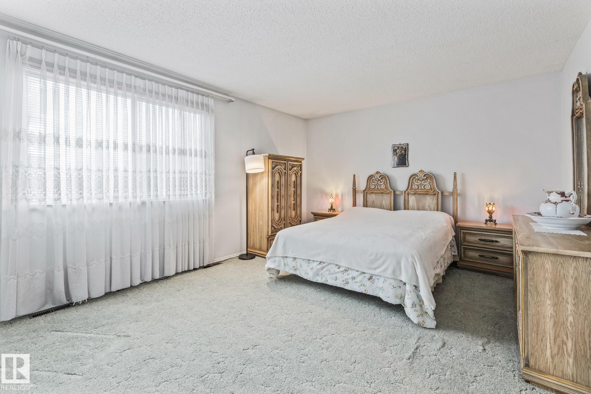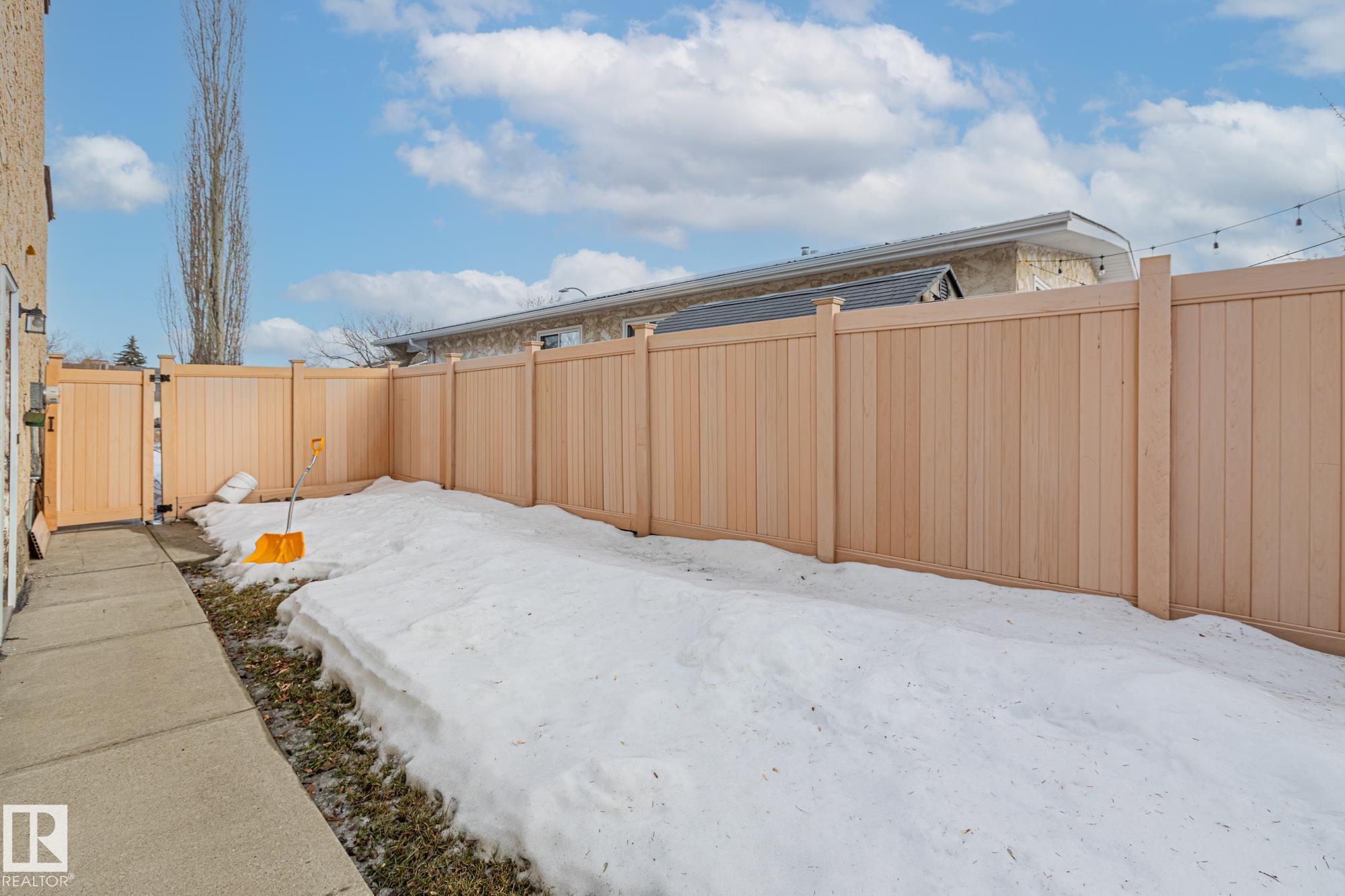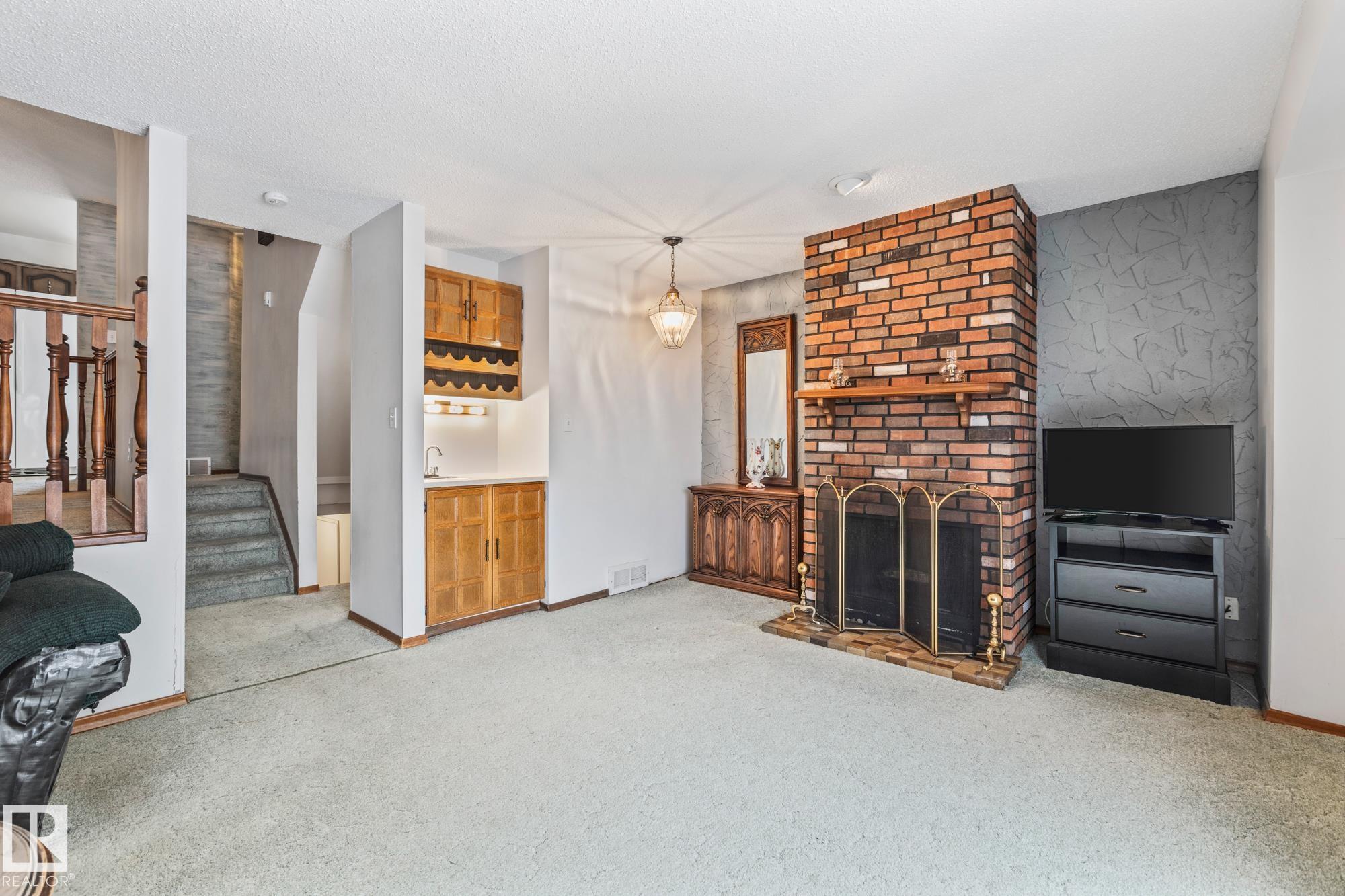 Welcome to Belmead. NO CONDO FEE duplex offers a well-designed four-level living space, perfect for large families or those seeking a sound investment opportunity. This home features three generously sized bedrooms and three bathrooms. Functional kitchen and the cutest coffee deck off the eating nook. Ideal floor plan seamlessly blends style (check out the awesome wood details!) and practicality. Large family-style dining room ideal for gatherings, while the large living room boasts a cozy brick-facing fireplace, wet bar, and sliding doors that lead to an expansive fenced backyard, providing excellent sight lines for parents to watch their children play. Side entrance with great mud room! Primary suite is a true sanctuary, spacious enough for a king-sized bed and featuring a convenient two-piece ensuite. Two additional bedrooms on their own level are perfect for family, guests, or office space. Unbeatable location situated minutes away from WEM, LRT expansion, Henday, schools, and a variety of amenities.