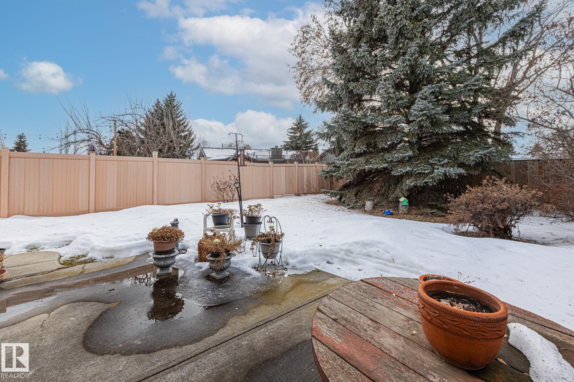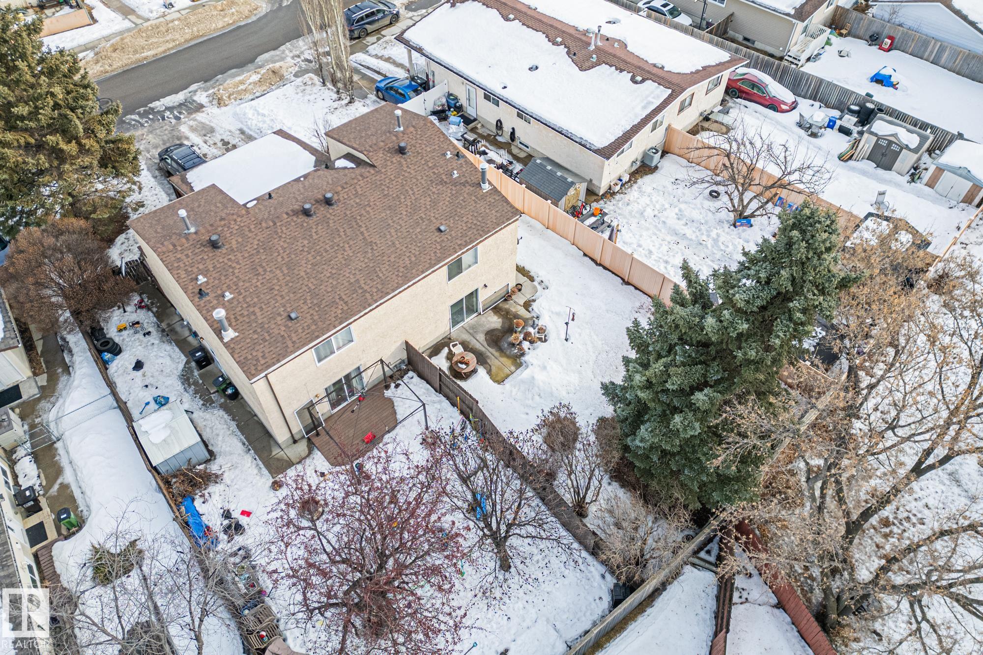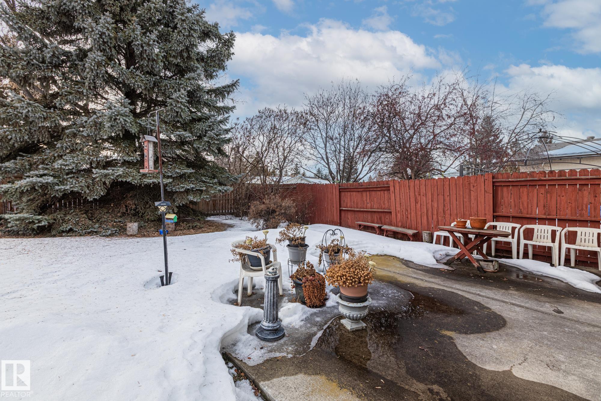 Welcome to Belmead. NO CONDO FEE duplex offers a well-designed four-level living space, perfect for large families or those seeking a sound investment opportunity. This home features three generously sized bedrooms and three bathrooms. Functional kitchen and the cutest coffee deck off the eating nook. Ideal floor plan seamlessly blends style (check out the awesome wood details!) and practicality. Large family-style dining room ideal for gatherings, while the large living room boasts a cozy brick-facing fireplace, wet bar, and sliding doors that lead to an expansive fenced backyard, providing excellent sight lines for parents to watch their children play. Side entrance with great mud room! Primary suite is a true sanctuary, spacious enough for a king-sized bed and featuring a convenient two-piece ensuite. Two additional bedrooms on their own level are perfect for family, guests, or office space. Unbeatable location situated minutes away from WEM, LRT expansion, Henday, schools, and a variety of amenities.