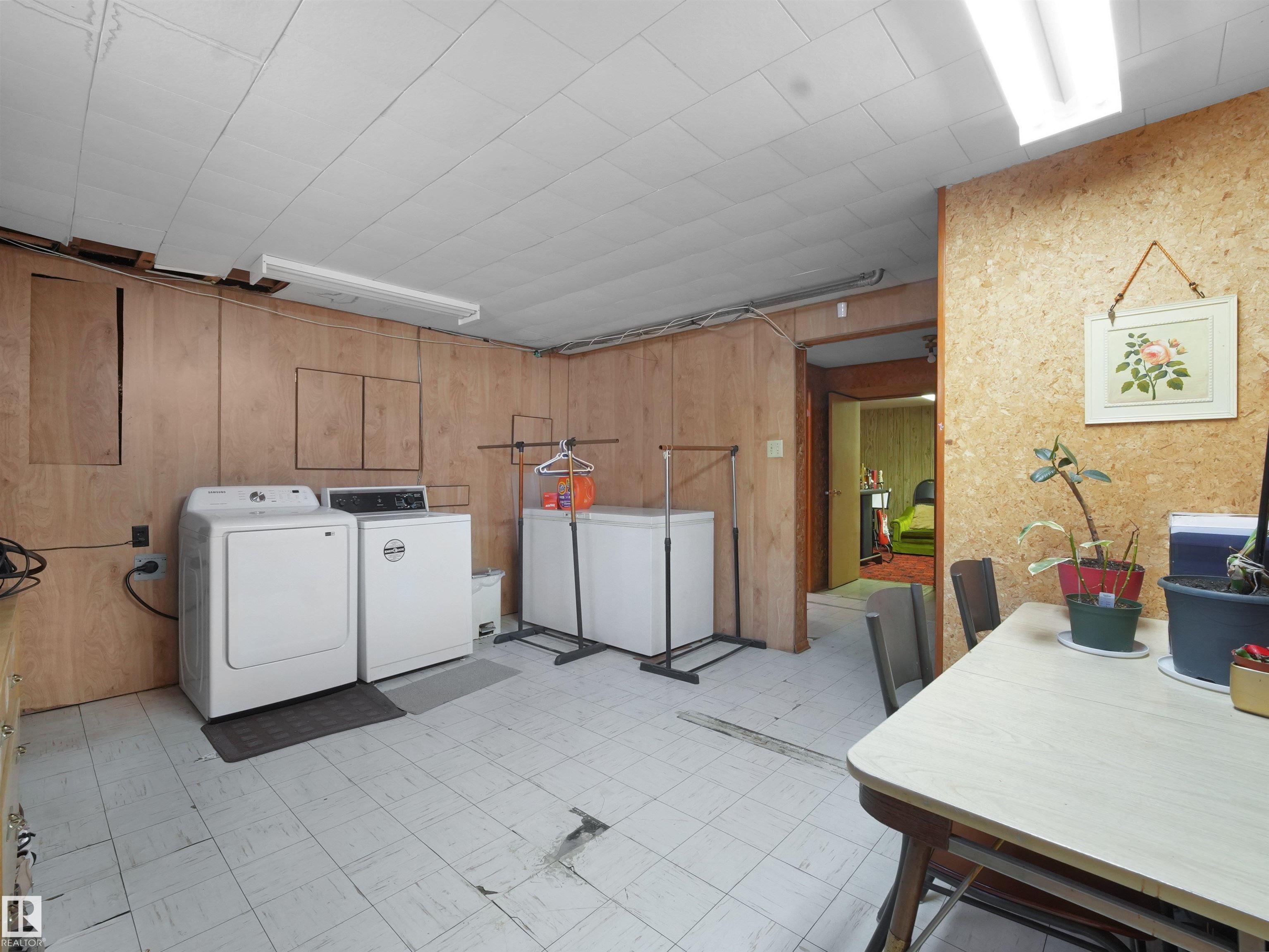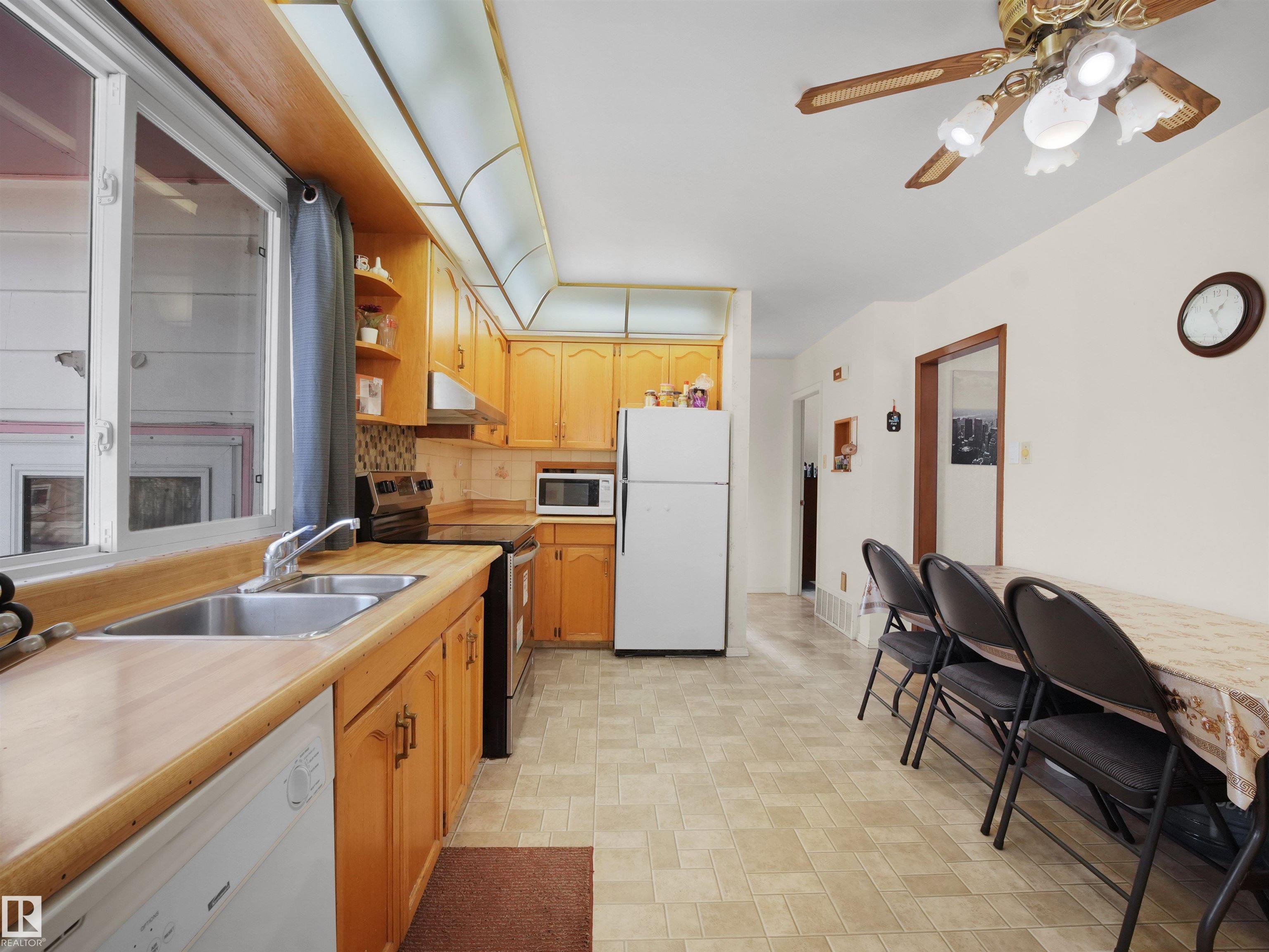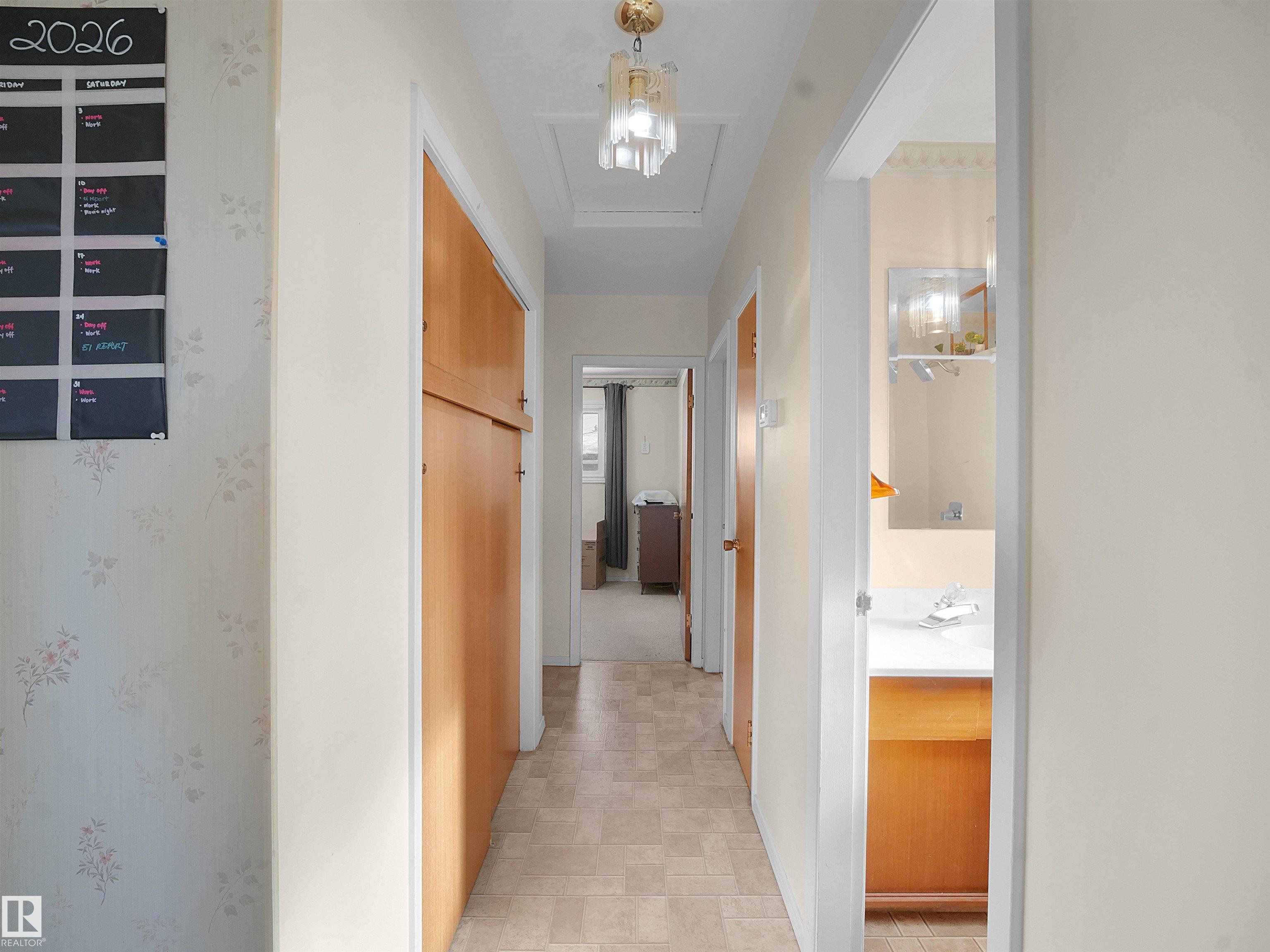 Perfectly situated across from MacArthur School and St. Angela Catholic Elementary, and just steps from the Wellington Community League and Spray Park, this home enjoys no direct front neighbours, quieter streets, and a strong sense of community, ideal for families and long-term living. Queen of Martyrs Catholic Church is within walking distance or a short drive away. Everyday convenience is at your doorstep, with major shopping plazas, grocery stores, and restaurants just a 3-minute drive or under a 10-minute walk. Commuters will appreciate the 15-minute drive to Downtown Edmonton and NAIT, quick access to Yellowhead Highway, and public transit nearby. The home has been meticulously maintained and features three bedrooms and a full bathroom on the main floor. The fully finished basement with SEPARATE ENTRANCE offers a spacious family room, along with a second full bathroom and laundry area. Completing the property is an oversized double detached garage with a parkpad, providing ample parking and storage.