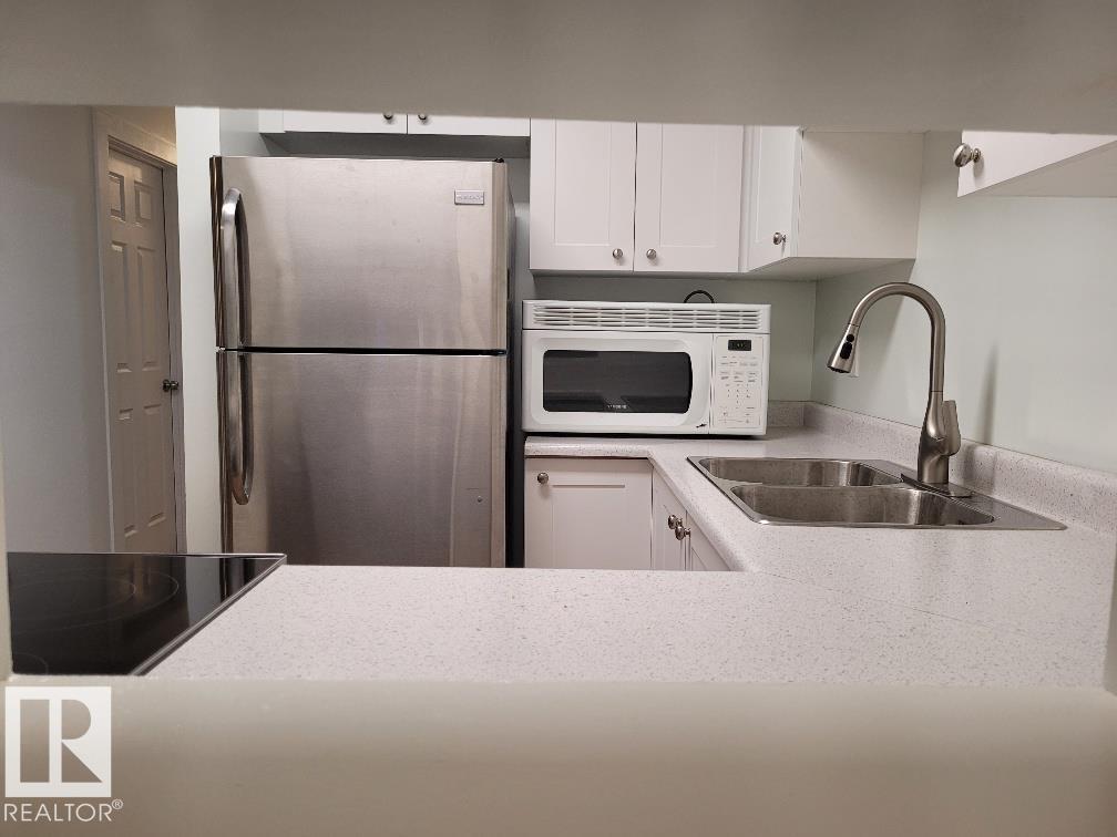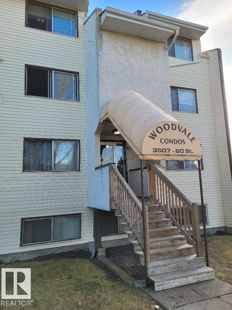 Fully Renovated and upgraded modern 2 bedrooms + den + balcony. Sunny and bright with lots of natural light. Both West and East exposure. All vinyl plank flooring + tiles in bathroom. All you see in the condo is included with purchase. This condo has windows both on the East side (living and dining room, balcony) and West (bedrooms) side. Overlooks park and school. *2 entrances: regular entrance through the common area plus walk up entrance. Common laundry on 4th floor. Excellent location: right across from Hillview School, park, daycare, public transportation, shopping etc. Right by Grey Nuns (10 minute walk), LRT and Millwoods Mall are 15 minute walk. For investors: also great for rental - very attractive location. NOTE: Sold 'as is where is' with no warranties or representations. Reserve fund is low and old lien needs to be resolved by the condo corporation - priced accordingly. Open to offers - seller prefers unconditional offers. Realtors have access to documents under 'Documents'
