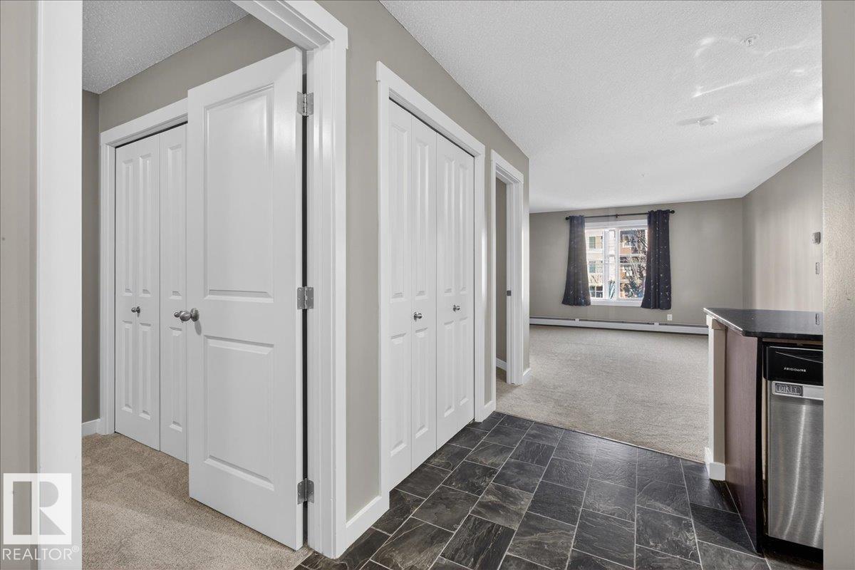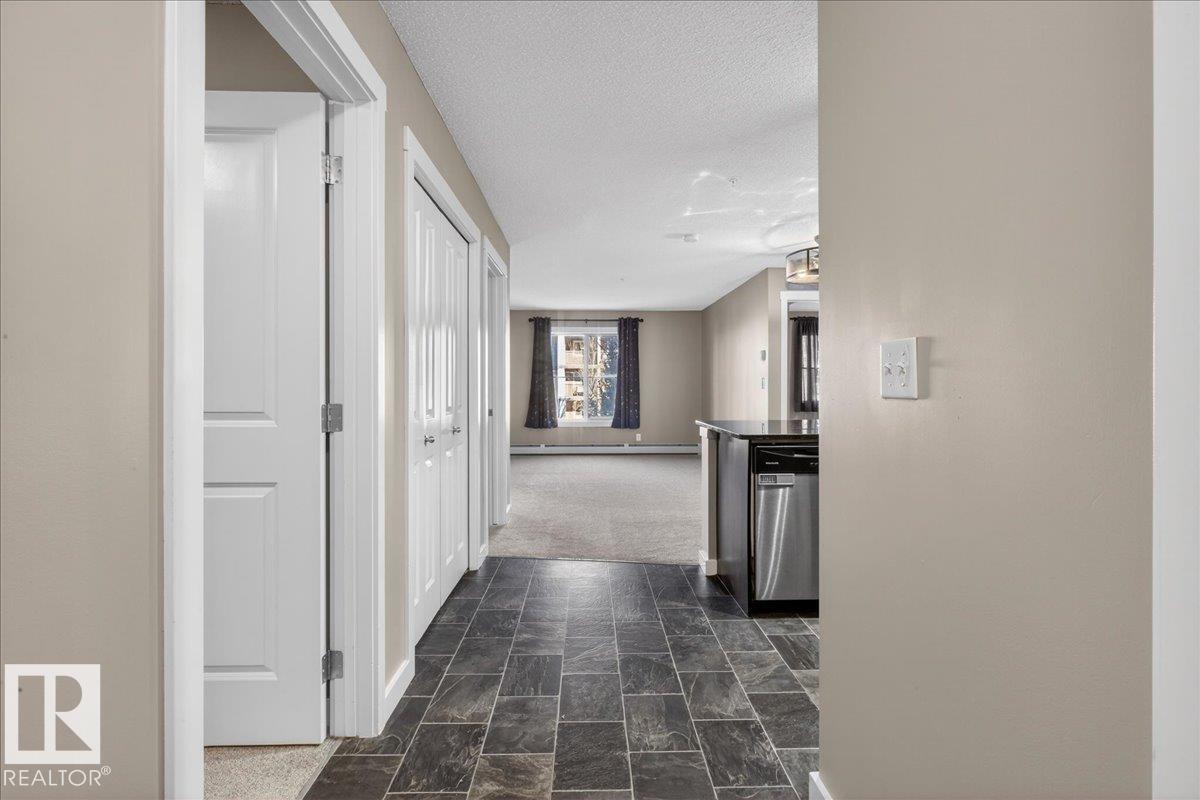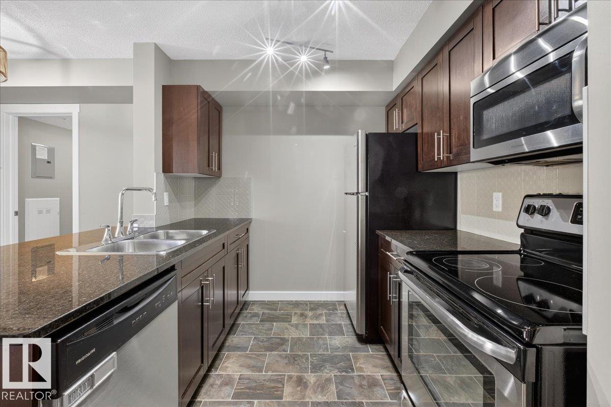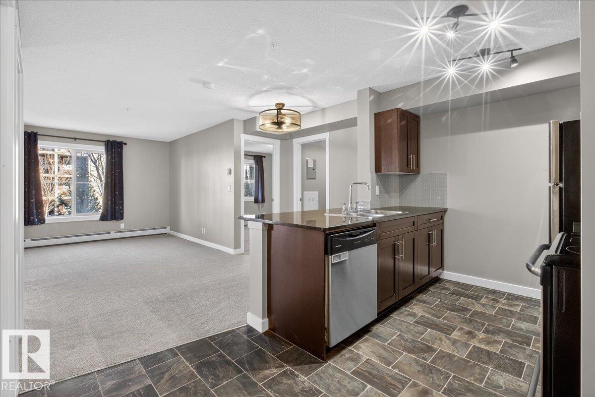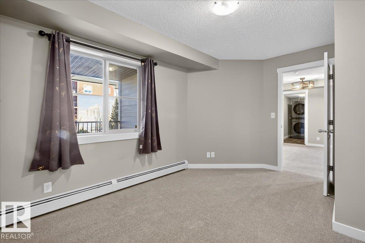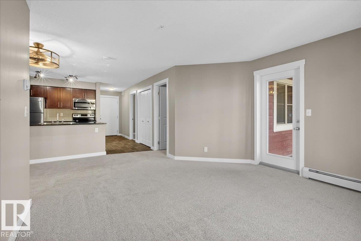 Shows like new! 925 sq ft 2 bedroom apartment plus den (with closet) featuring NEW carpet and FRESHLY PAINTED. Upon entry is access to the 4pc common bath on the right and den on the left & moving forward is the galley kitchen with stainless appliances, granite counters & eating bar, large living room with garden door access to covered balcony. The primary bedroom has north facing window looking across the balcony with walk through closet & 4 pc ensuite bath with a deep soaker tub. Bedroom 2 is also spacious with a north facing window. Full size laundry room with new (6 mo old) stacking washer & dryer & plenty of storage space. Parking is one titled surface stall and one assigned surface stall. Creekwood Landing II is well located in Chappelle close to public transportation, plenty of walking paths & close to grocery shopping, restaurants & retail services. Easy access to the Anthony Henday or 41 Ave SW to HWY 2.