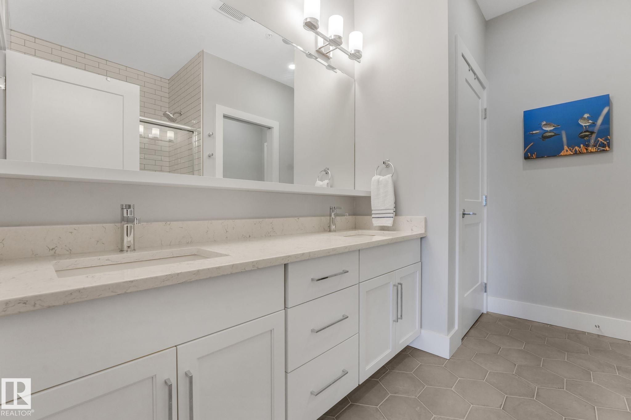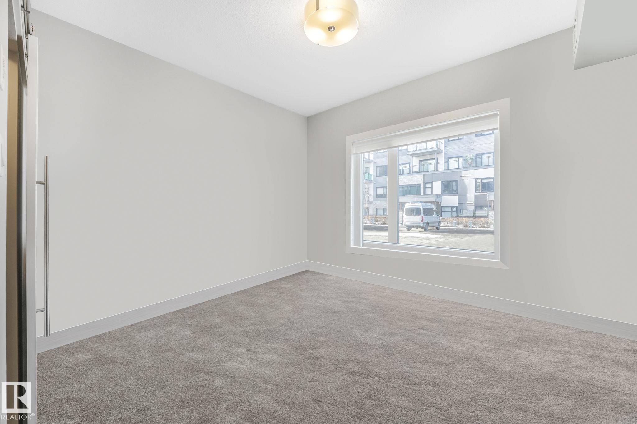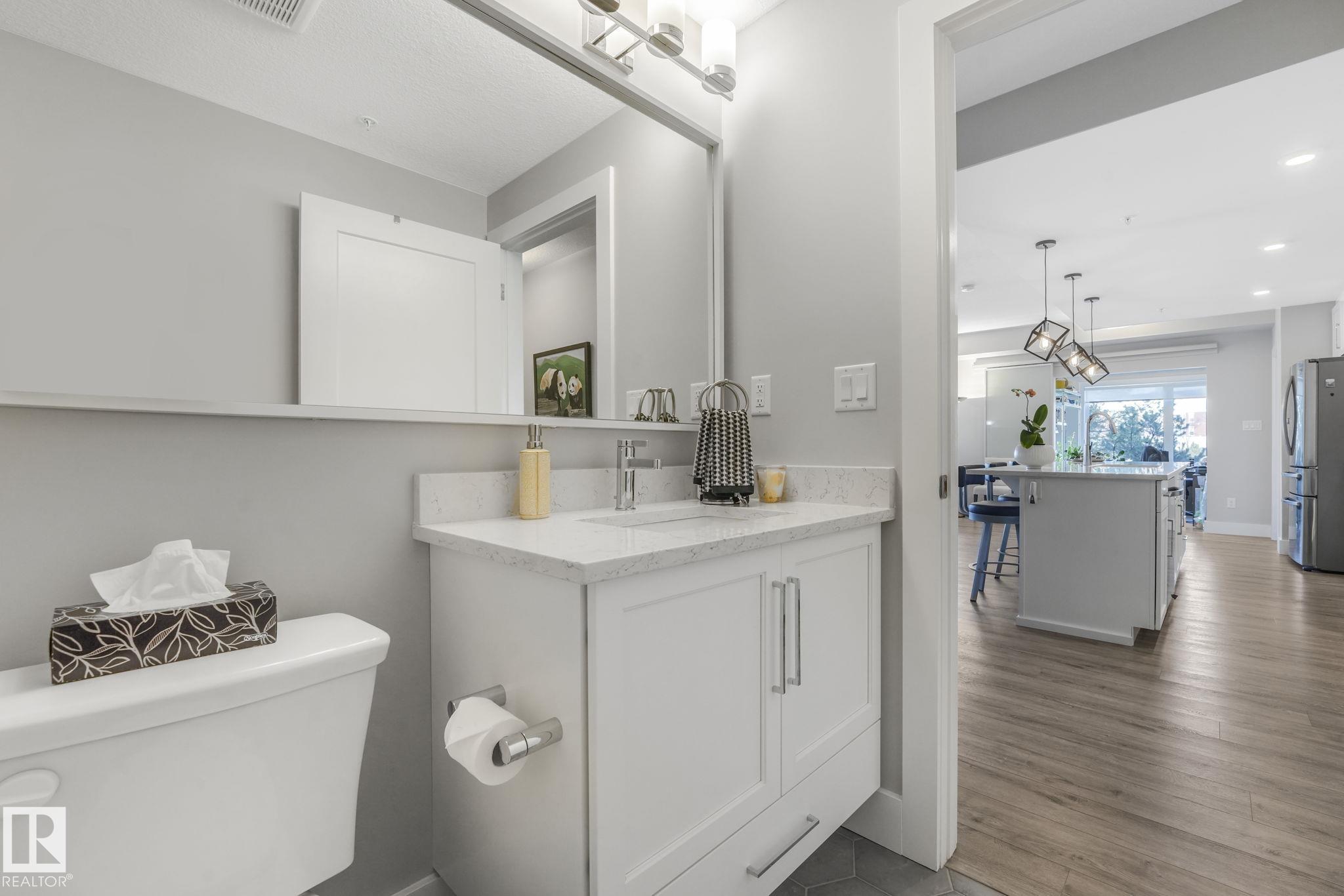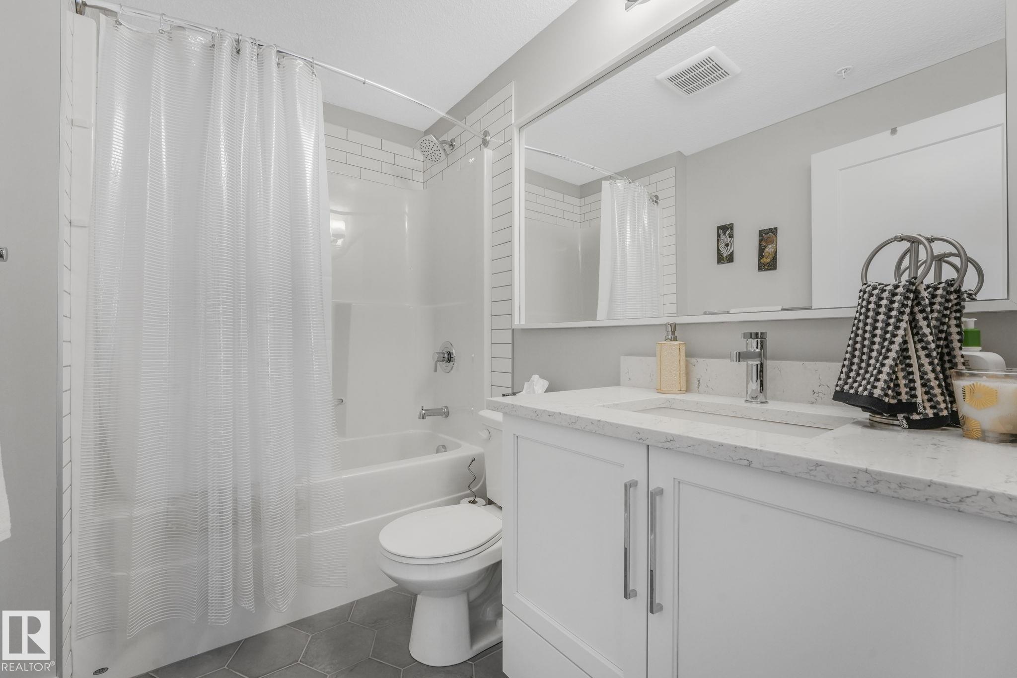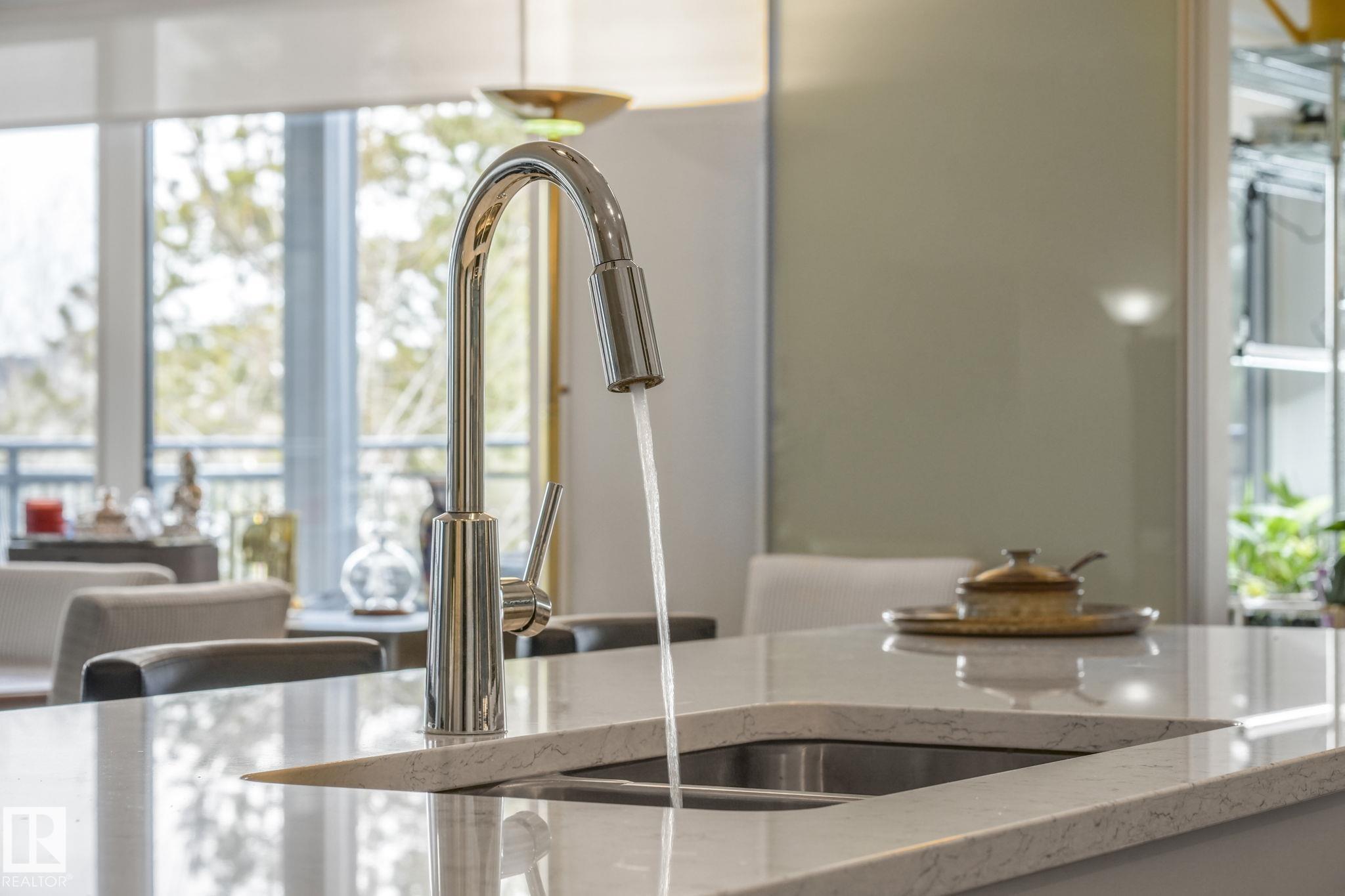 Pristine Original Owner 2 Bed, 2 Bath + Den Condo. Step into Style & Taste! Featuring 1316 sf, 9' Ceilings, Expansive Windows w/Custom Blinds, Kitchen w/Quartz Counter Top, 10' Island, SS Appliances & Crisp White Shaker Cabinets w/ Extended Uppers. The Open Layout is Perfect for Entertaining w/ Seating at the Island, Large Dining Space, Welcoming Living Rm & Huge 545 sf Wrap Around Patio w/West & North Exposures & Gas BBQ line for Year Round Grilling. Thoughtfully Designed w/Spacious Primary Featuring a Gorgeous 4pc. Ensuite & Lg. Walk-In Closet, Functional & Bright Den w/ Lake View & Sliding Privacy Doors, Guest Bed w/its Own Walk-In Closet, Full Size Laundry Rm w/ Quartz Counter-Top & Upper Cabinets. Add'l Upgrades & Features; Closet Organizers, Central A/C & 2 Titled Parking Stalls incl. 1 Underground w/Storage Cage & 1 Surface Right Outside your Patio. One of Edmonton's Premiere Communities Surrounded by Over 5km of Walking Trails, Lakes, Amenities, Shops & Dining. Shows 10/10!