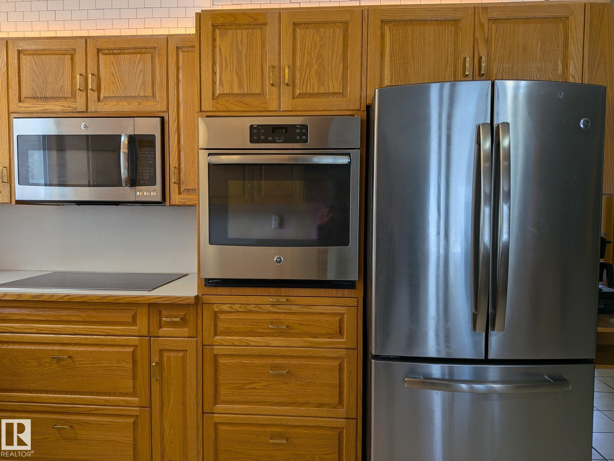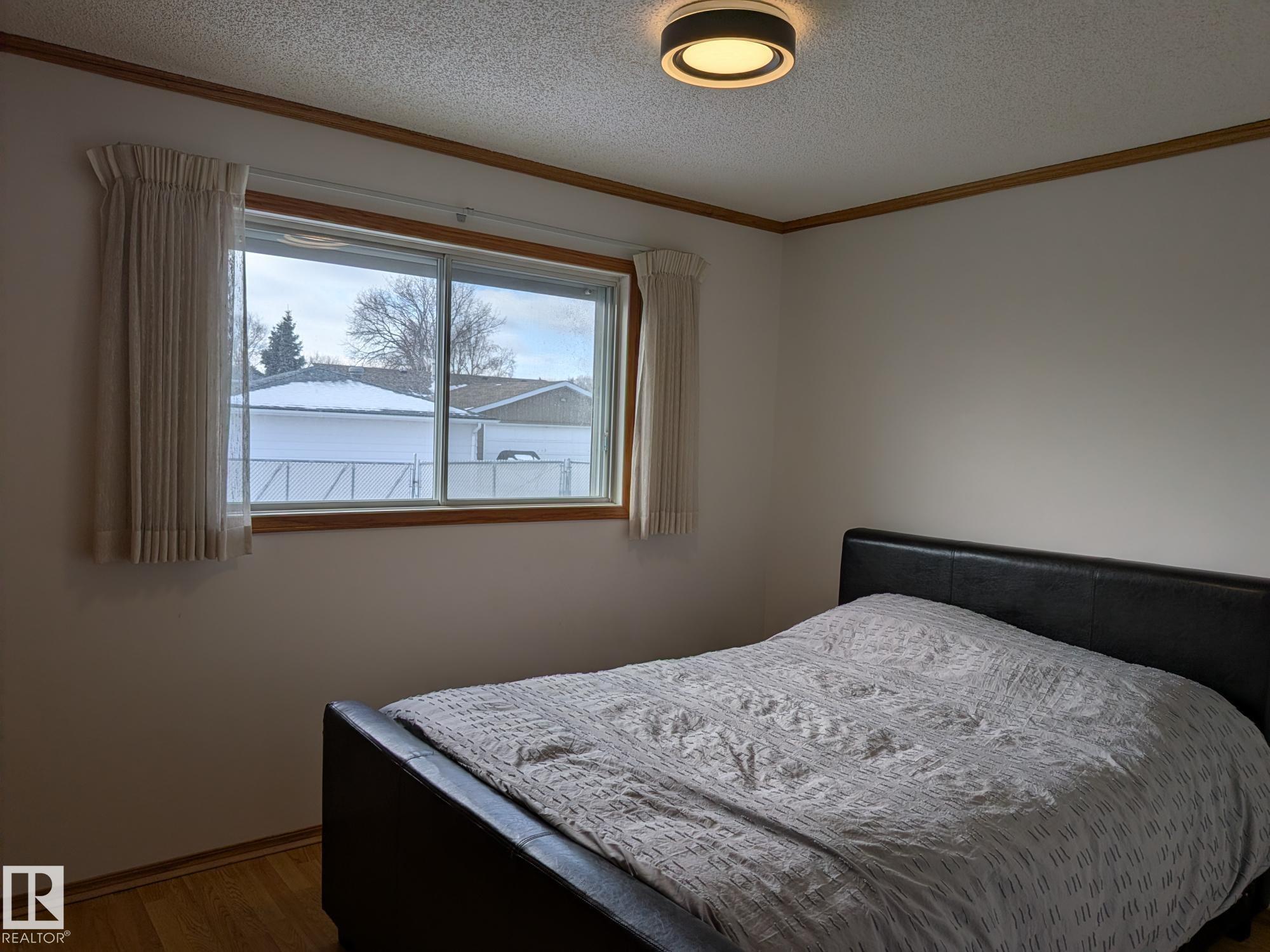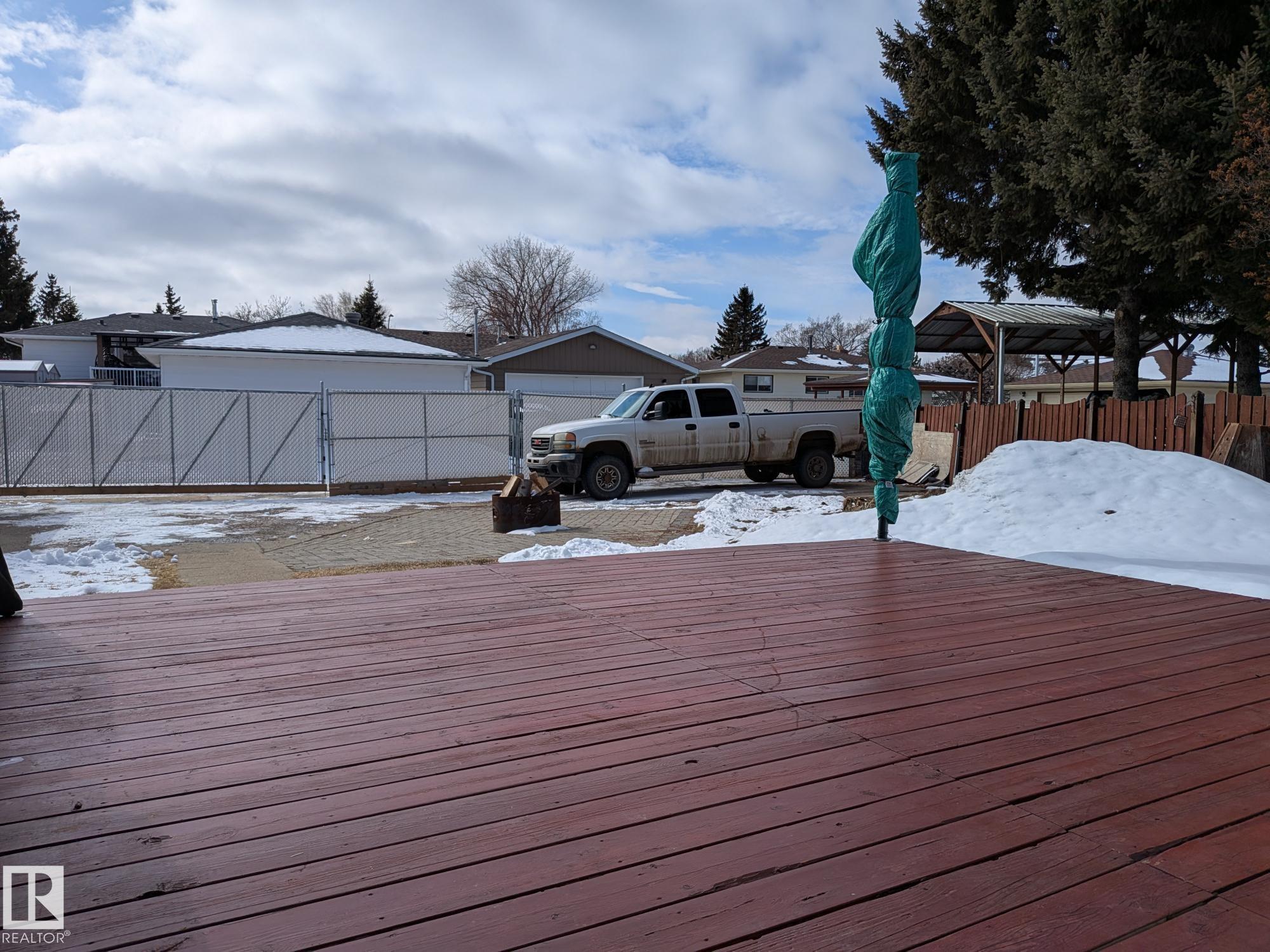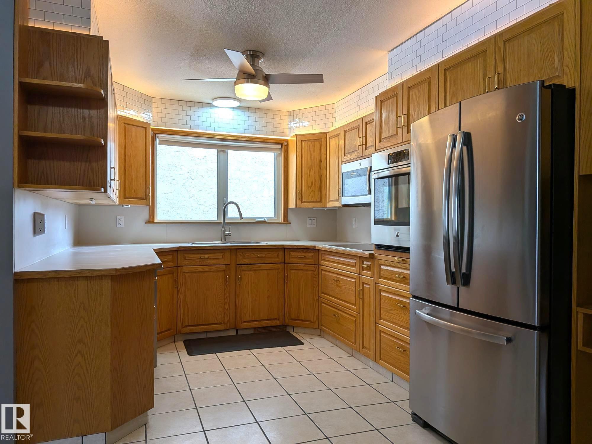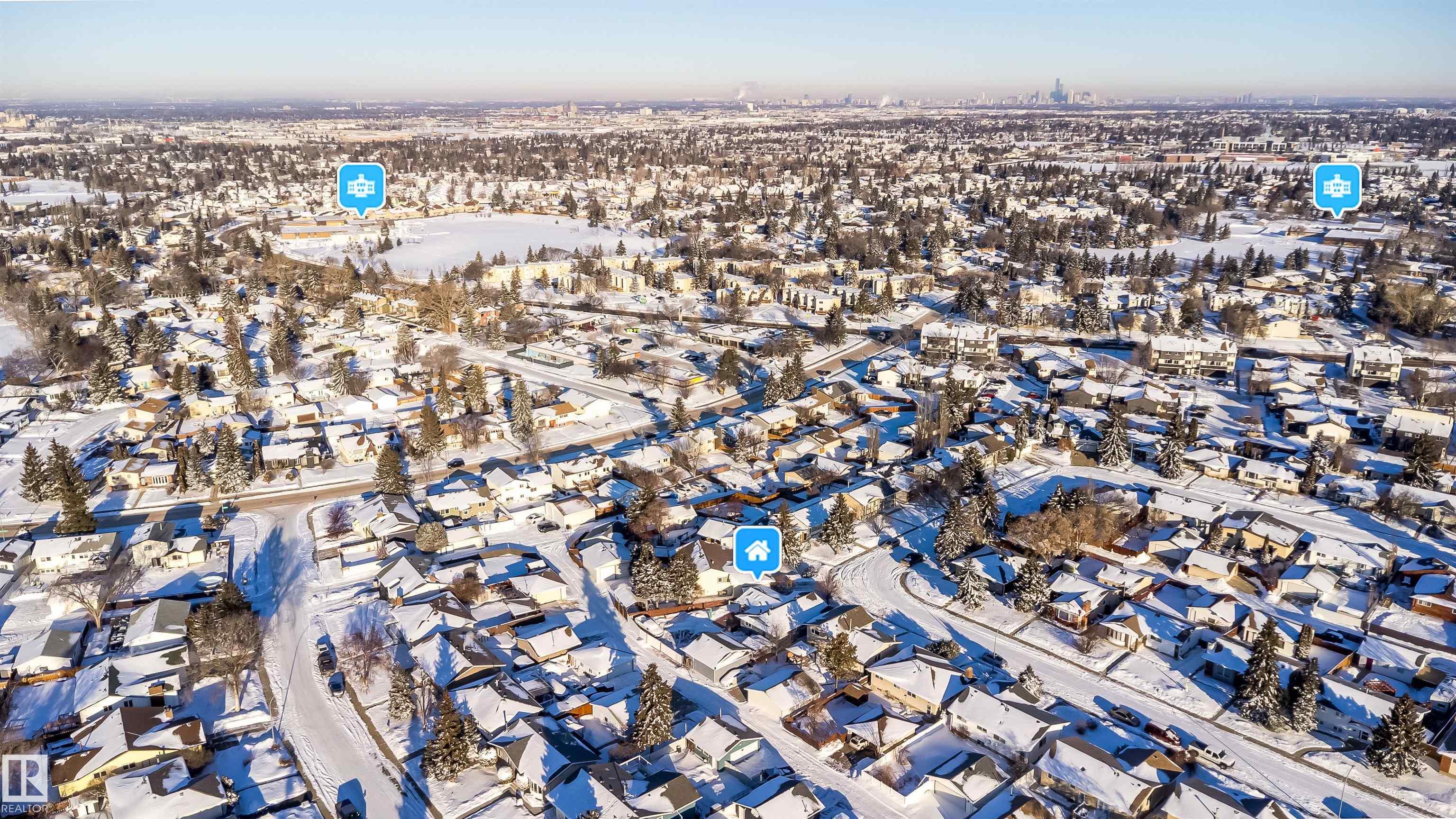 This 4 BED, 3 BATH BUNGALOW is on a quiet street, has OVER 2500 SqFt of living space and a LARGE BACK YARD! Walking distance to MENISA Elementary and Park. The spacious living room is cozy with a gas fireplace and large bay window. Tons of oak cabinets, counter space and quality GE + BOSCH appliances in the kitchen, plus a breakfast nook and formal dining room. The ALL-SEASON SUNROOM is bright with tons of windows and skylights, and warmed by another gas fireplace. 3 generous bedrooms upstairs, with built-in closets, and the primary with 2pc ensuite bath. A huge recreation room downstairs with wood fireplace, 4th bedroom, bath with large shower, laundry room, tons of storage and potential for 5TH BEDROOM. The SOUTH FACING BACKYARD is perfect for entertaining with a large deck, patio stone and firepit. RV parking and a O/S DBL DETACHED HEATED GARAGE, plus storage shed. Upgrades include a newer roof, deck, A/C, privacy windows and roll shutters. Close to parks and schools and easy access to Anthony Henday.
