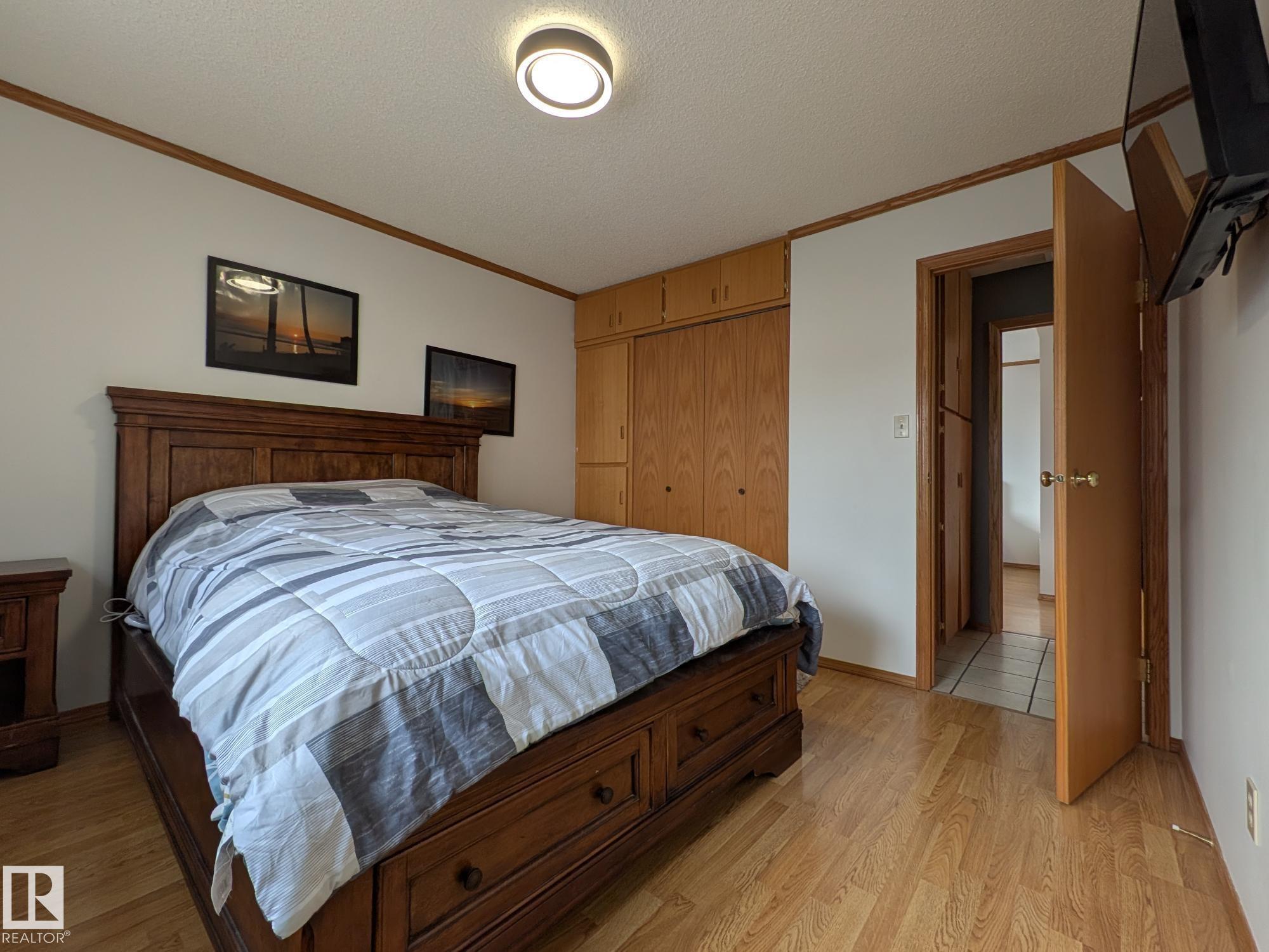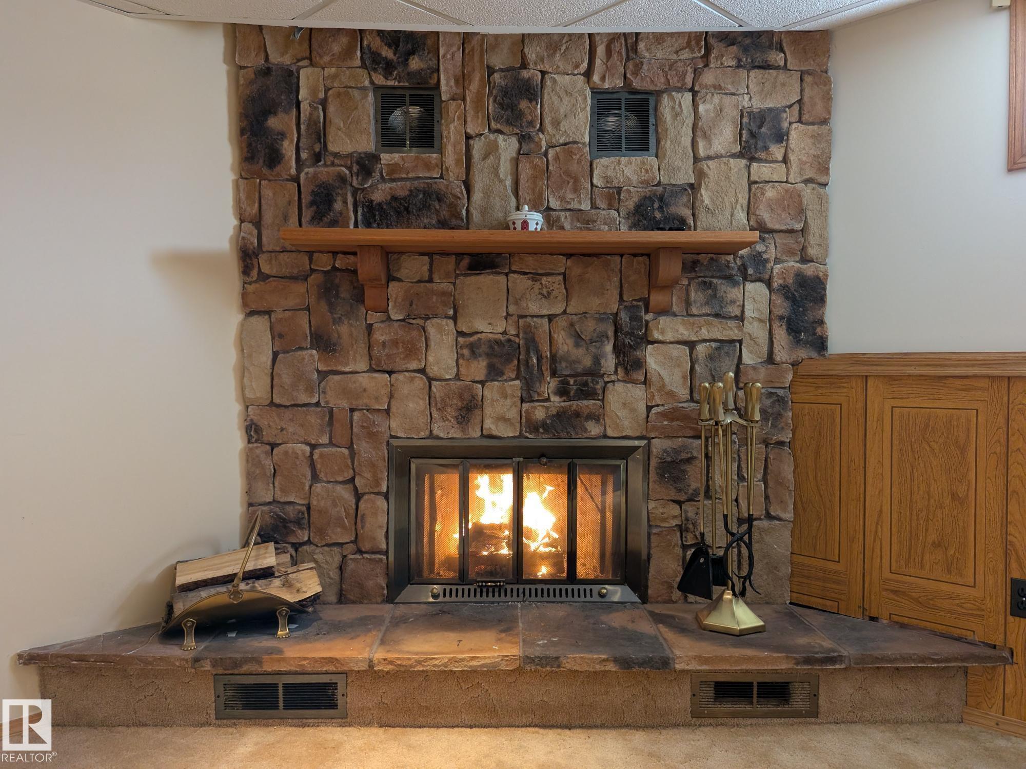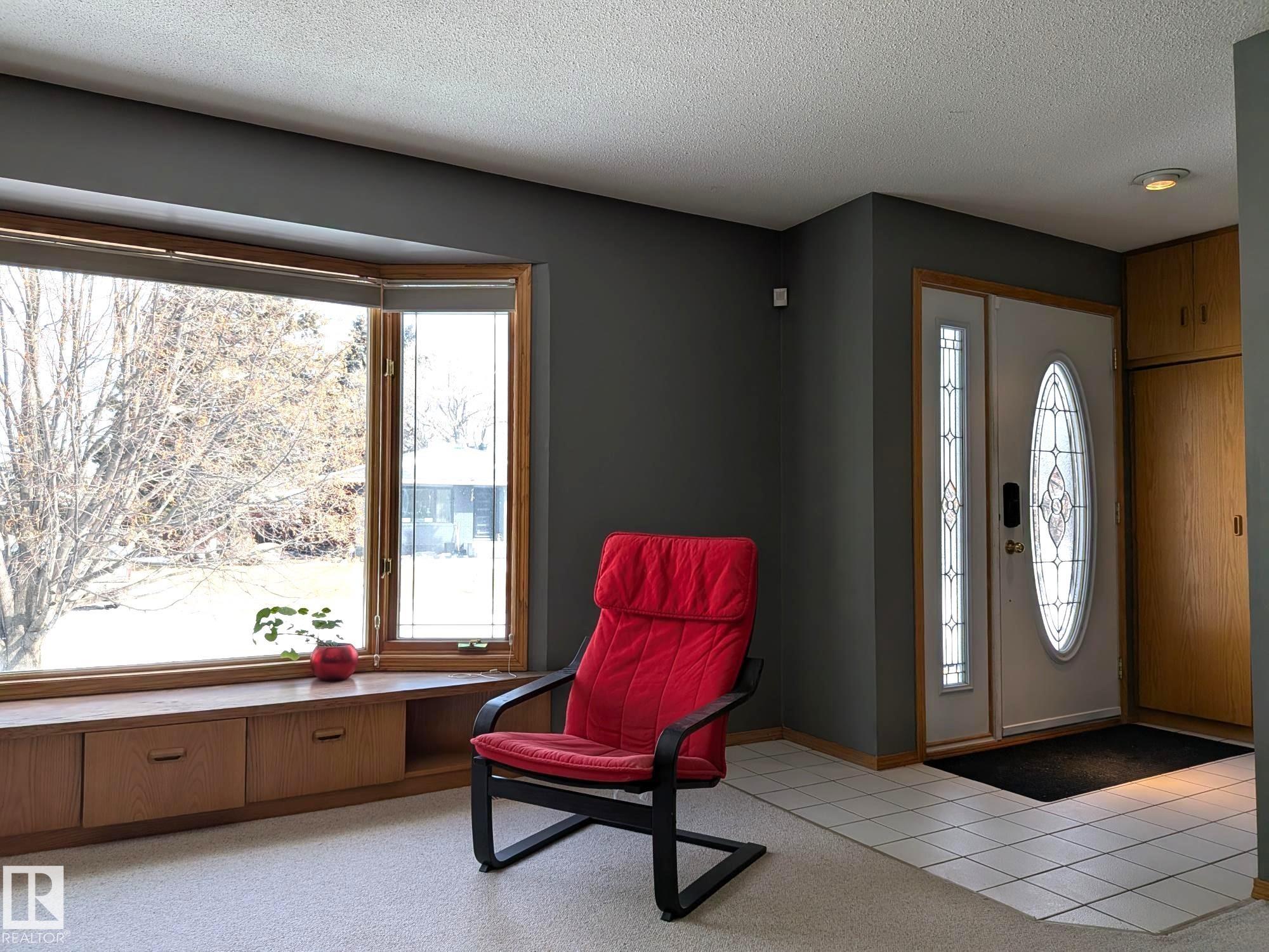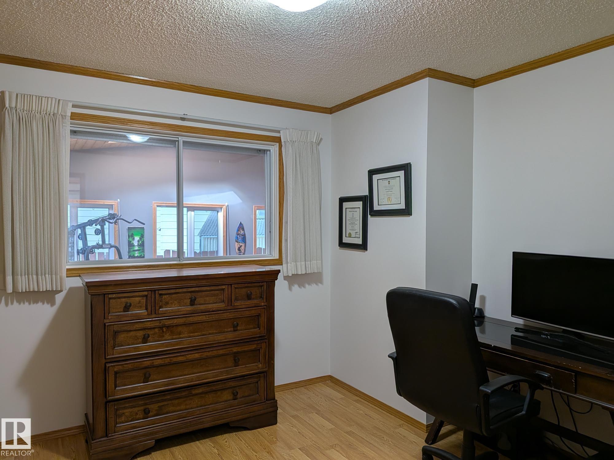 This 4 BED, 3 BATH BUNGALOW is on a quiet street, has OVER 2500 SqFt of living space and a LARGE BACK YARD! Walking distance to MENISA Elementary and Park. The spacious living room is cozy with a gas fireplace and large bay window. Tons of oak cabinets, counter space and quality GE + BOSCH appliances in the kitchen, plus a breakfast nook and formal dining room. The ALL-SEASON SUNROOM is bright with tons of windows and skylights, and warmed by another gas fireplace. 3 generous bedrooms upstairs, with built-in closets, and the primary with 2pc ensuite bath. A huge recreation room downstairs with wood fireplace, 4th bedroom, bath with large shower, laundry room, tons of storage and potential for 5TH BEDROOM. The SOUTH FACING BACKYARD is perfect for entertaining with a large deck, patio stone and firepit. RV parking and a O/S DBL DETACHED HEATED GARAGE, plus storage shed. Upgrades include a newer roof, deck, A/C, privacy windows and roll shutters. Close to parks and schools and easy access to Anthony Henday.