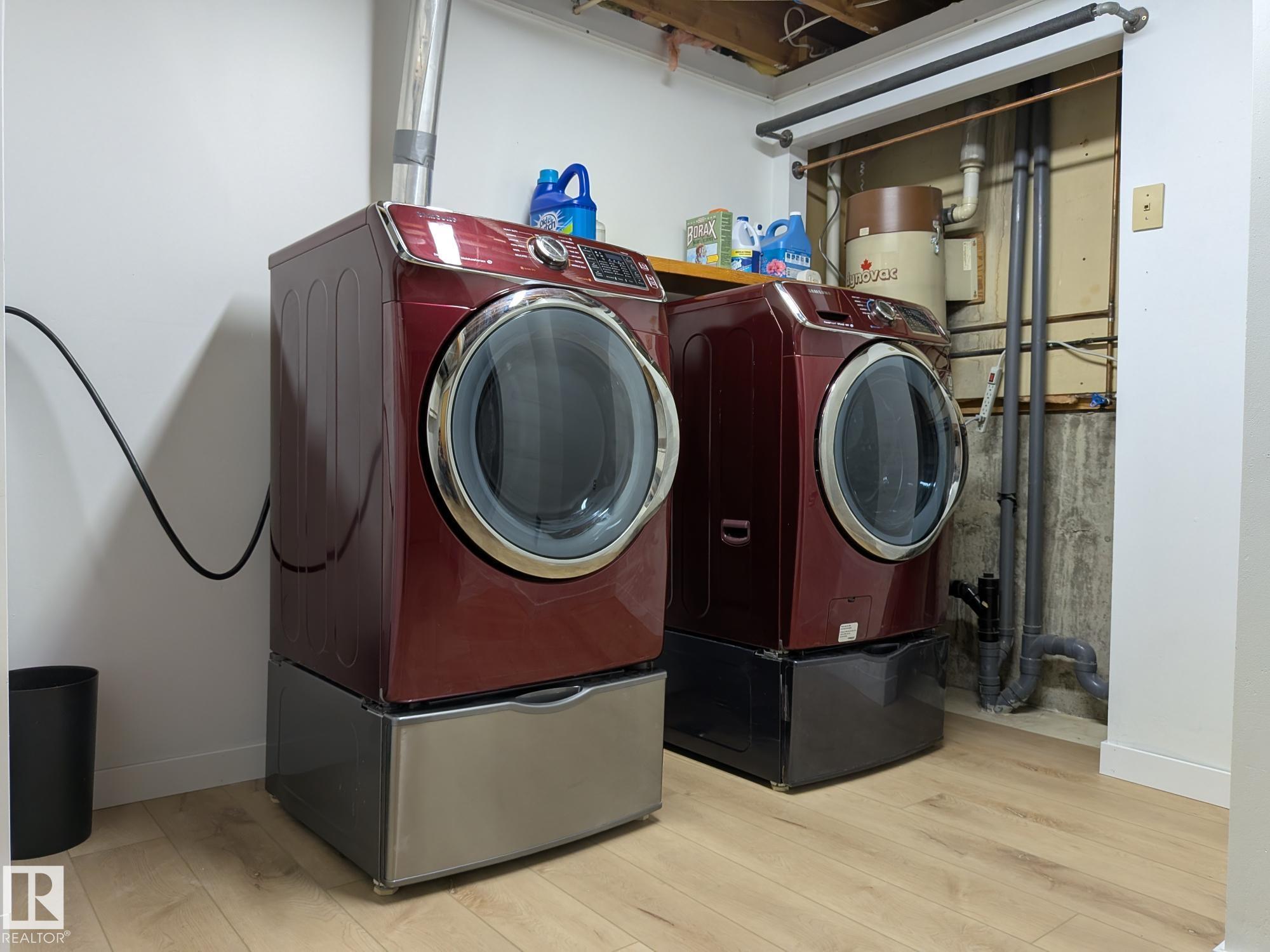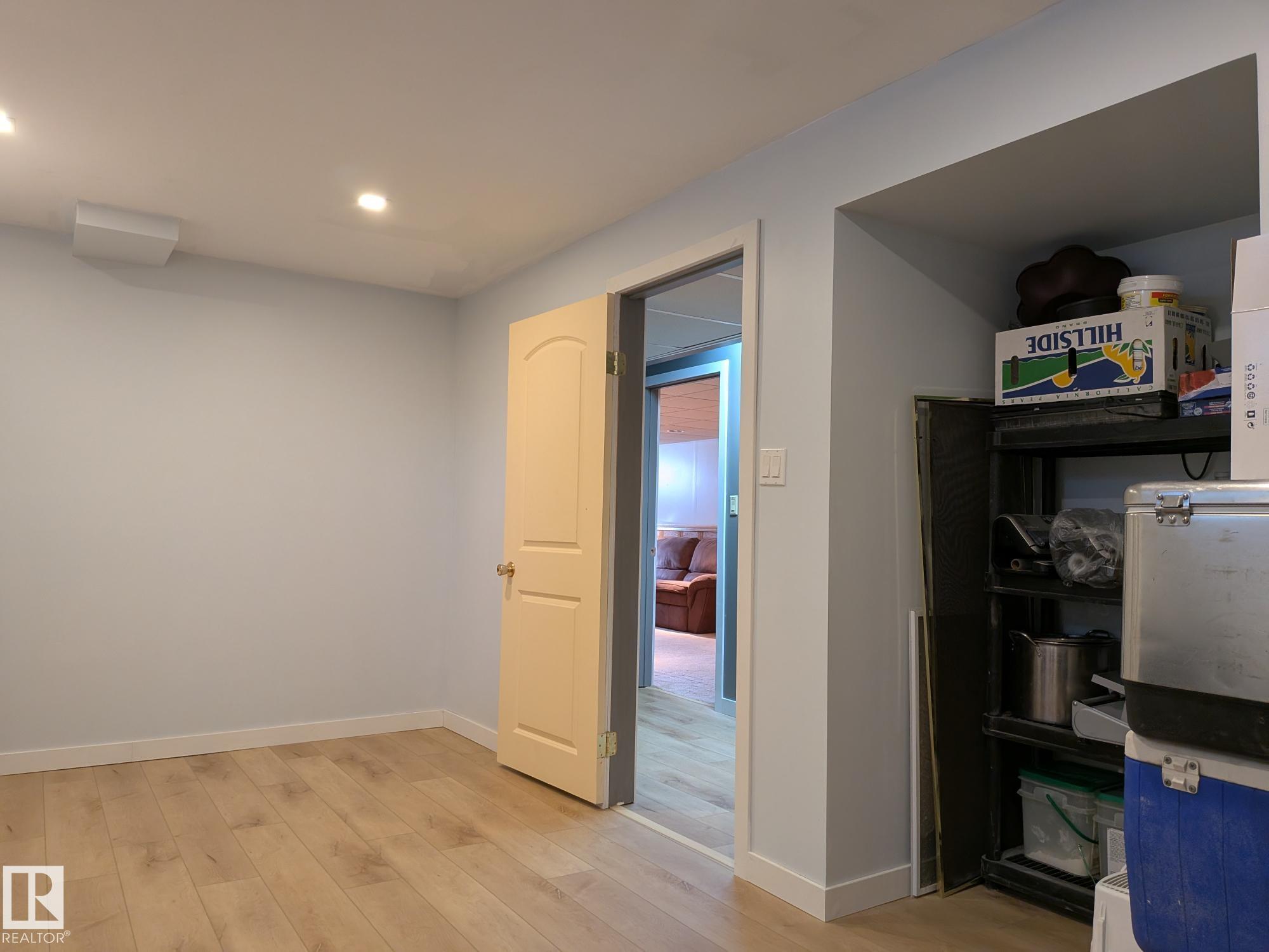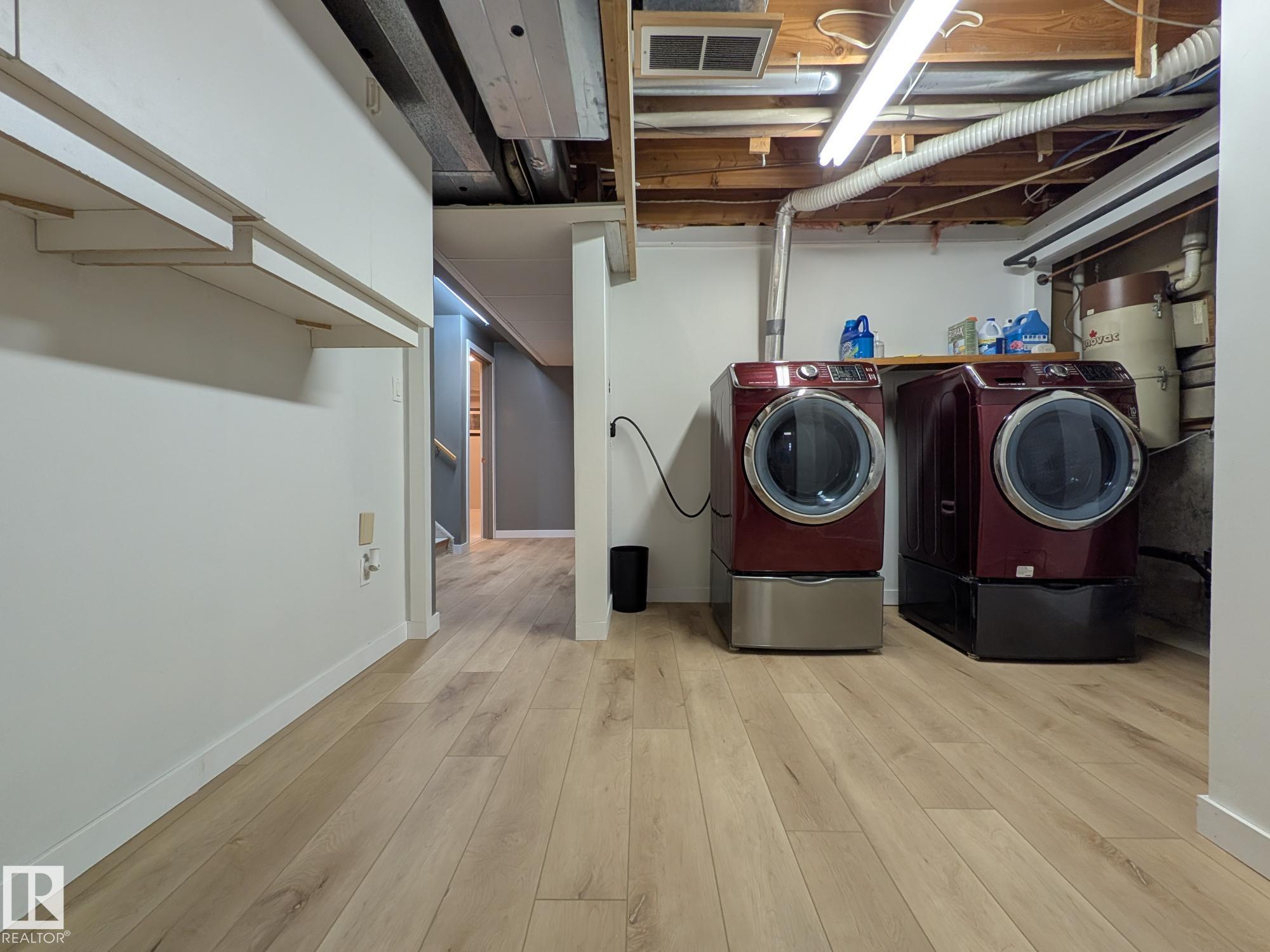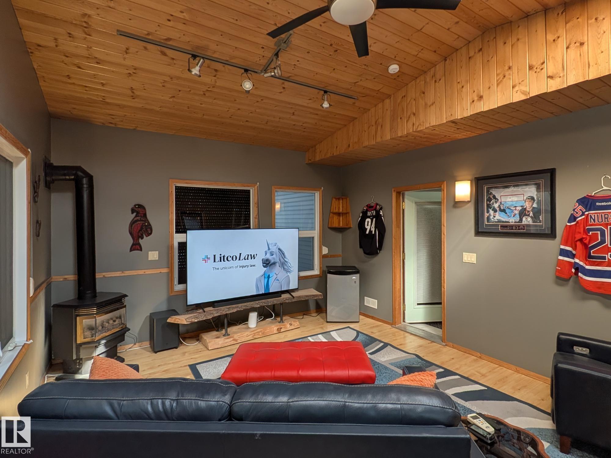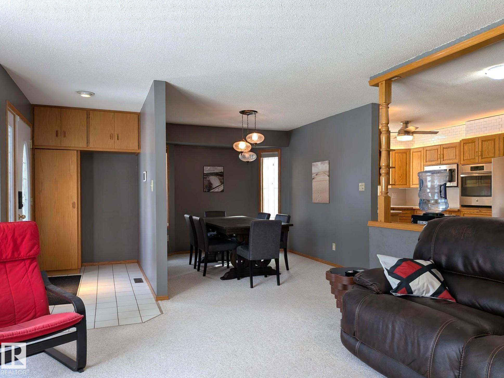 This 4 BED, 3 BATH BUNGALOW is on a quiet street, has OVER 2500 SqFt of living space and a LARGE BACK YARD! Walking distance to MENISA Elementary and Park. The spacious living room is cozy with a gas fireplace and large bay window. Tons of oak cabinets, counter space and quality GE + BOSCH appliances in the kitchen, plus a breakfast nook and formal dining room. The ALL-SEASON SUNROOM is bright with tons of windows and skylights, and warmed by another gas fireplace. 3 generous bedrooms upstairs, with built-in closets, and the primary with 2pc ensuite bath. A huge recreation room downstairs with wood fireplace, 4th bedroom, bath with large shower, laundry room, tons of storage and potential for 5TH BEDROOM. The SOUTH FACING BACKYARD is perfect for entertaining with a large deck, patio stone and firepit. RV parking and a O/S DBL DETACHED HEATED GARAGE, plus storage shed. Upgrades include a newer roof, deck, A/C, privacy windows and roll shutters. Close to parks and schools and easy access to Anthony Henday.