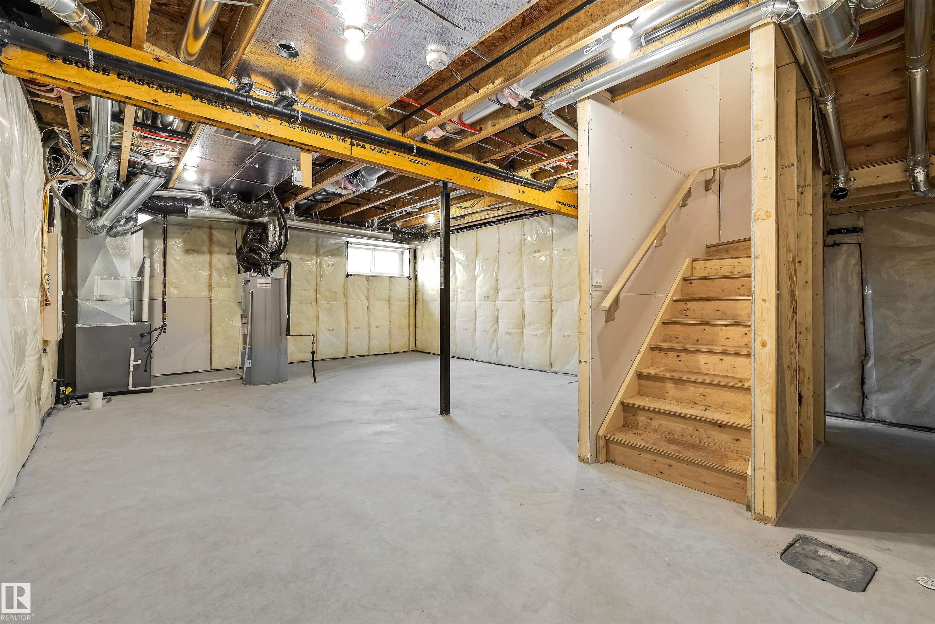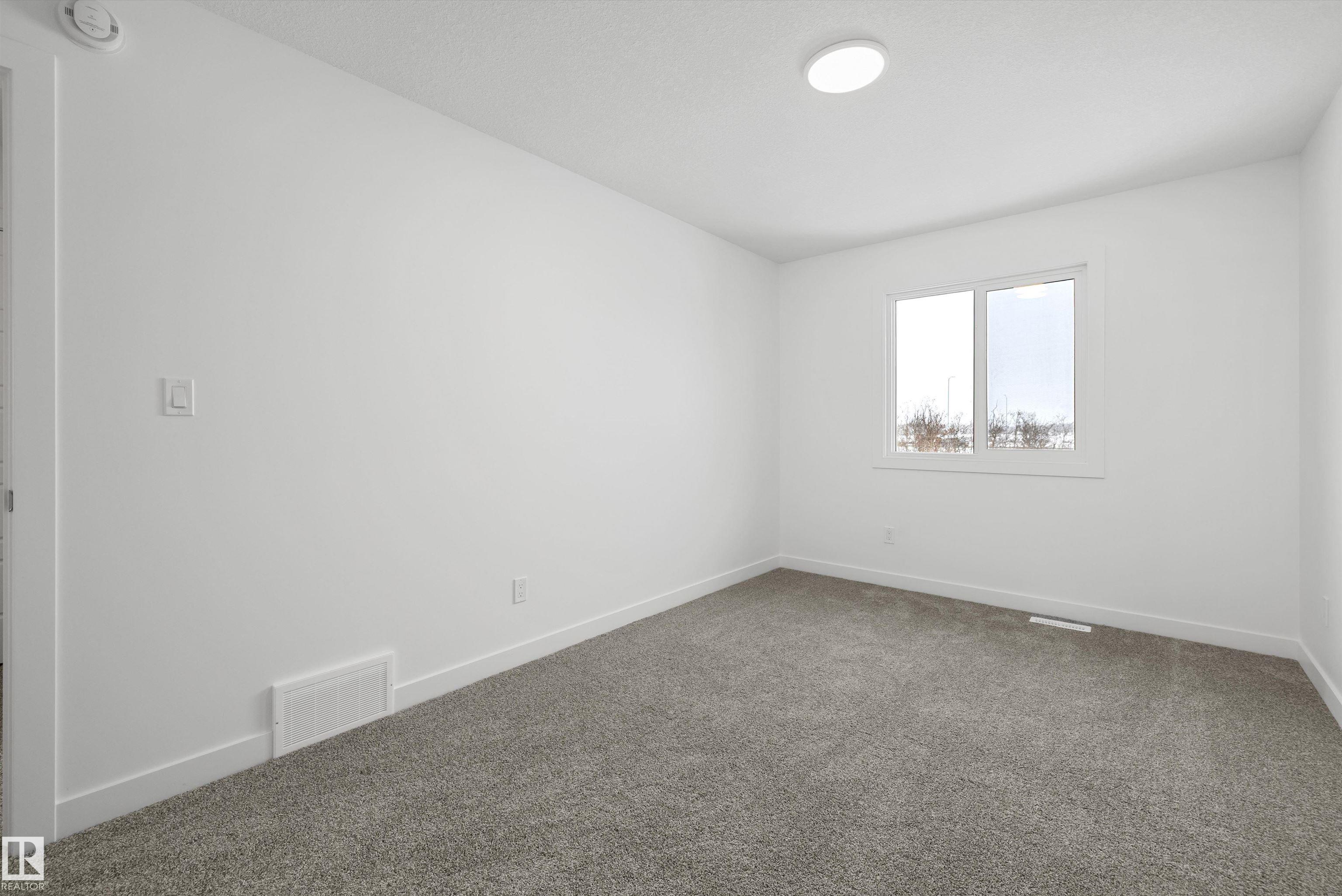 This 1,637 sq. ft. front-attached home in College Woods at Lakeview, built by Sterling Homes, offers a double attached garage with floor drain and a separate side entrance. The open main floor features 9? ceilings on the main and basement levels, luxury vinyl plank flooring, and a bright living room with fireplace and large rear windows. The kitchen shines with quartz countertops, spacious island, full-height tile backsplash, soft-close cabinetry, corner pantry, built-in microwave, and chimney-style hood fan. Upstairs includes a bonus room, upper laundry, two bedrooms, and a full bath. The primary suite offers a walk-in closet with window and ensuite with double sinks and glass shower. Brushed nickel fixtures and basement rough-ins complete this thoughtfully designed home.