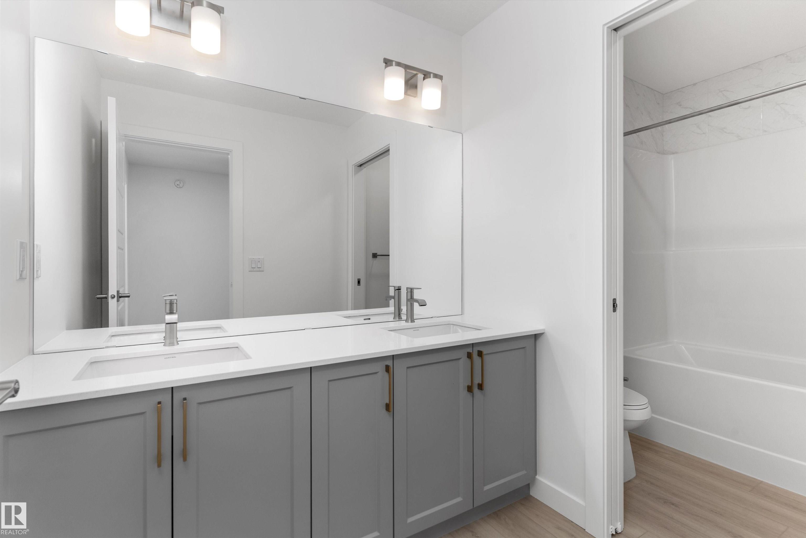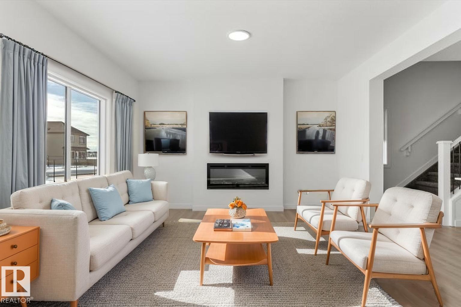 Built by Sterling Homes, this stunning front-attached home in Aster blends modern design with functional spaces tailored for busy families. Triple pane windows and 9? ceilings brighten the open main floor, where a welcoming foyer leads to a spacious mudroom and a fully equipped spice kitchen?ideal for entertaining or keeping daily prep tucked away. The main kitchen impresses with quartz countertops, a large island with seating, upgraded cabinetry, a custom chimney hood fan, built-in microwave, and full-height tile backsplash. The sunlit great room showcases an electric fireplace and expansive windows overlooking the backyard, with sliding patio doors extending living space outdoors. Upstairs, the primary suite features a 5-piece ensuite with double sinks, a freestanding tub, glass shower, and a walk-in closet connected to the laundry room. A bonus room, two bedrooms, full bath, side entrance, double garage with drain, and basement rough-ins complete this exceptional home.