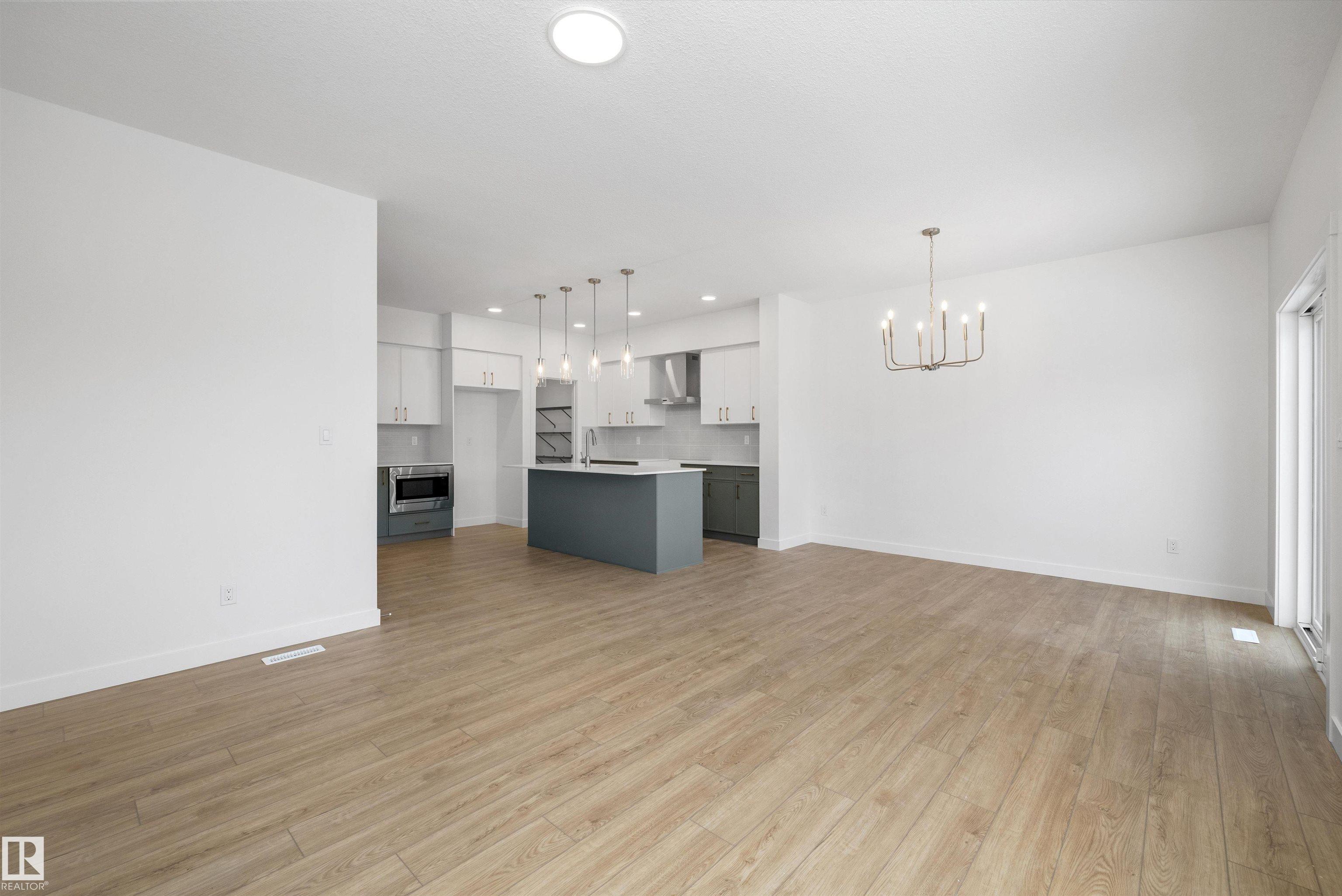 This front-attached home by Sterling Homes in College Woods at Lakeview offers modern comfort in a serene, nature-bordered North Edmonton neighborhood. The main floor features 9? ceilings, triple-pane windows, and a gourmet kitchen equipped with quartz countertops, ceiling-height cabinetry, and a walk-through pantry connected to the mudroom. An open-concept great room with an electric fireplace and oversized windows flows seamlessly into the backyard through sliding patio doors. Upstairs, the primary suite includes a large walk-in closet and a 4-piece ensuite with double sinks, complemented by a central bonus room and convenient upper-floor laundry with a sink. Two additional bedrooms and a full bath ensure a highly functional layout for families. The property is finished with luxury vinyl plank flooring and includes a separate side entrance, a double attached garage with a floor drain, and basement rough-ins ready for future development.