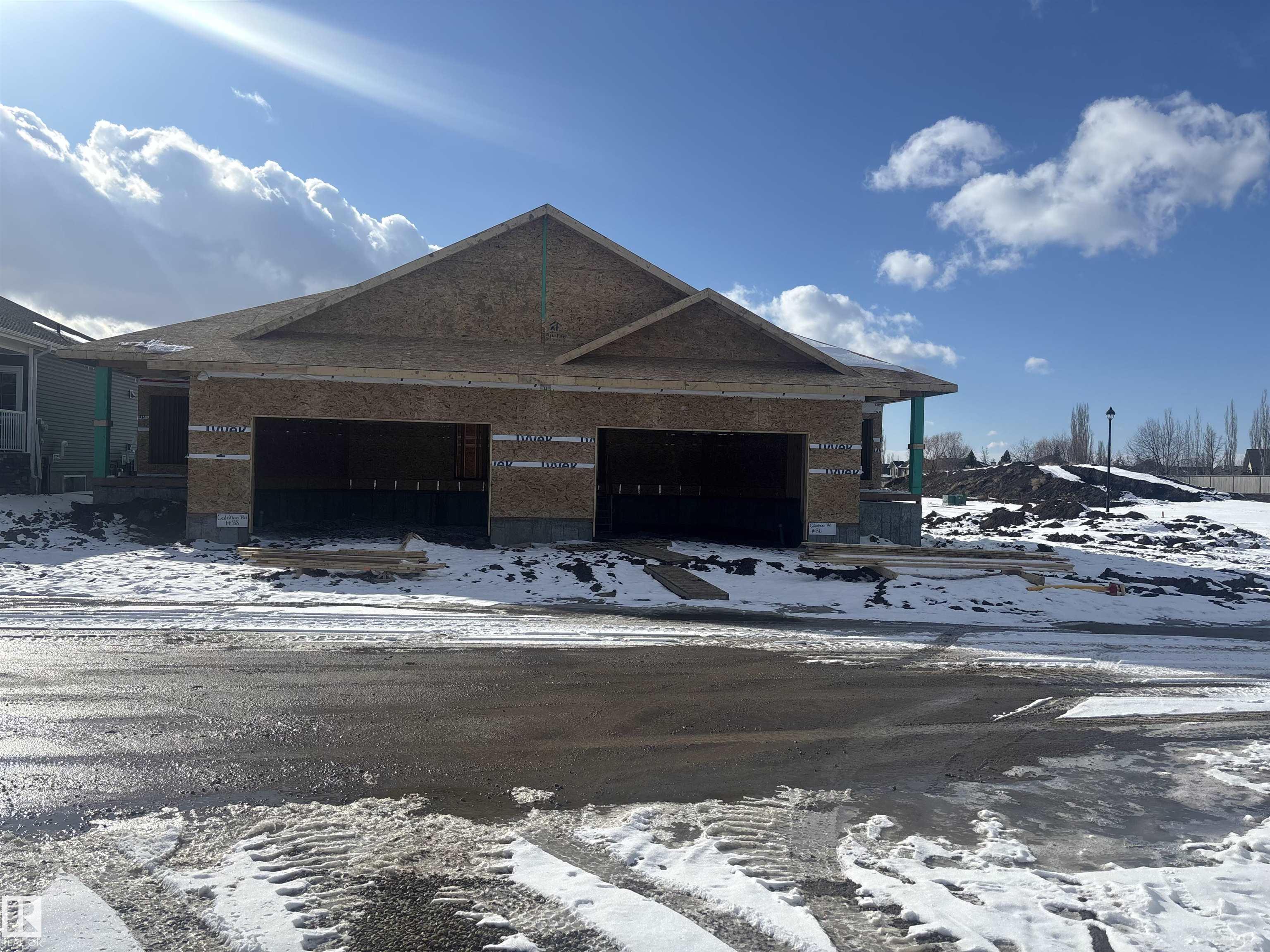 GREENSPACE view!! Centennial Estates is an adult (55+) community catering exclusively to snowbirds, empty-nesters, & those looking for a more relaxed & maintenance-free lifestyle. Showcasing sleek finishes & exquisite details, this BRAND NEW Sitka floor plan includes a covered front porch, 9? ceilings, engineered-hardwood, a main-floor office/den, dedicated laundry room, a lovely kitchen w/ full-height cabinetry, QUARTZ counters, pendant lighting, center island, stainless appliances, & separate dinette, a cozy living room w/ corner fireplace & built-in shelving, a king-sized owner?s suite w/ walk-in closet & 4pc ensuite, a fully-finished basement, OVERSIZED double garage (22?x24?) w/ floor drain & hot/cold water taps, a WEST-FACING composite deck, & a ground-level patio. When it comes to adult-living, this community has it all ? safety & security behind GATED walls, low monthly condo fees (looking after lawn/snow maintenance), future greenspace, & walking distance to The Links Golf Course, trails & parks.