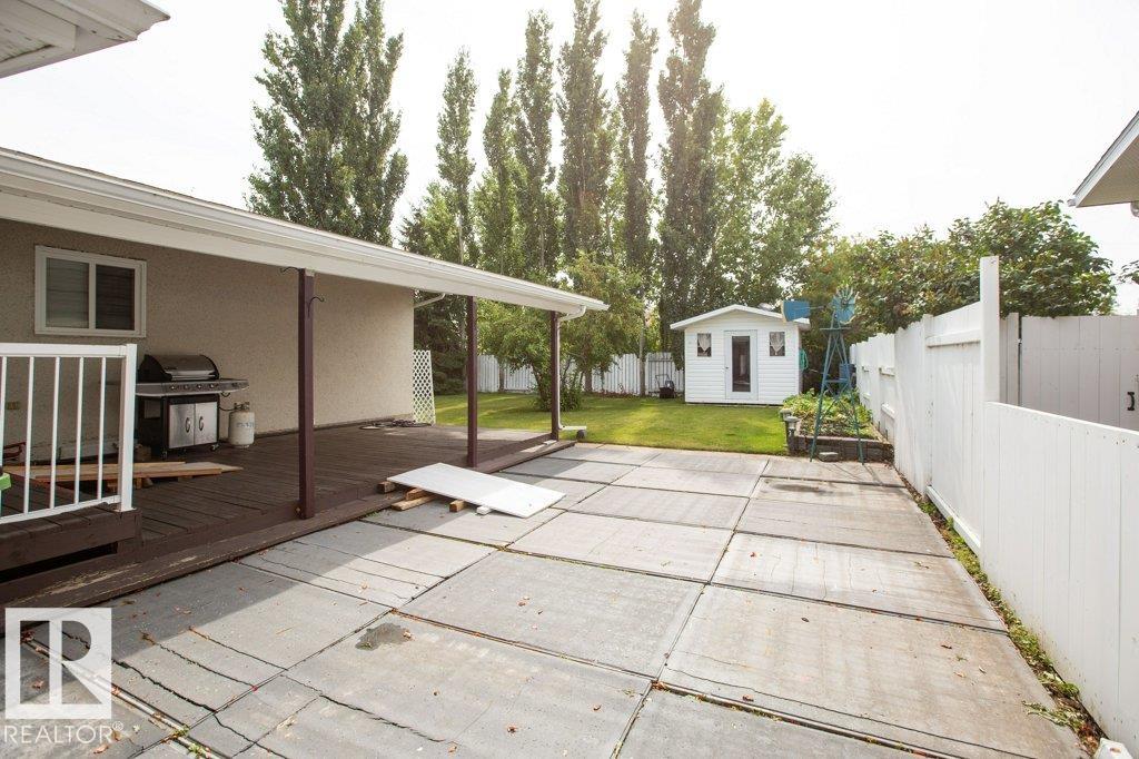 Located in a quiet cul de sac within walking distance of school, playgrounds & recreational facilities make this a great family home. Move in ready, large fenced backyard with mature trees, garden , shed & space to play. Main floor laundry with huge walk in pantry, HE furnace, well maintained home. Kitchen is spacious with plenty of cupboards dining area opens into living room with brick fireplace and large windows. Good sized bedrooms throughout. Basement has spacious family room with pool table. Main floor laundry with walk in pantry. Huge parking pad with space for your RV. Sit and relax on the covered deck a great space for entertaining. New shingles in 2025.