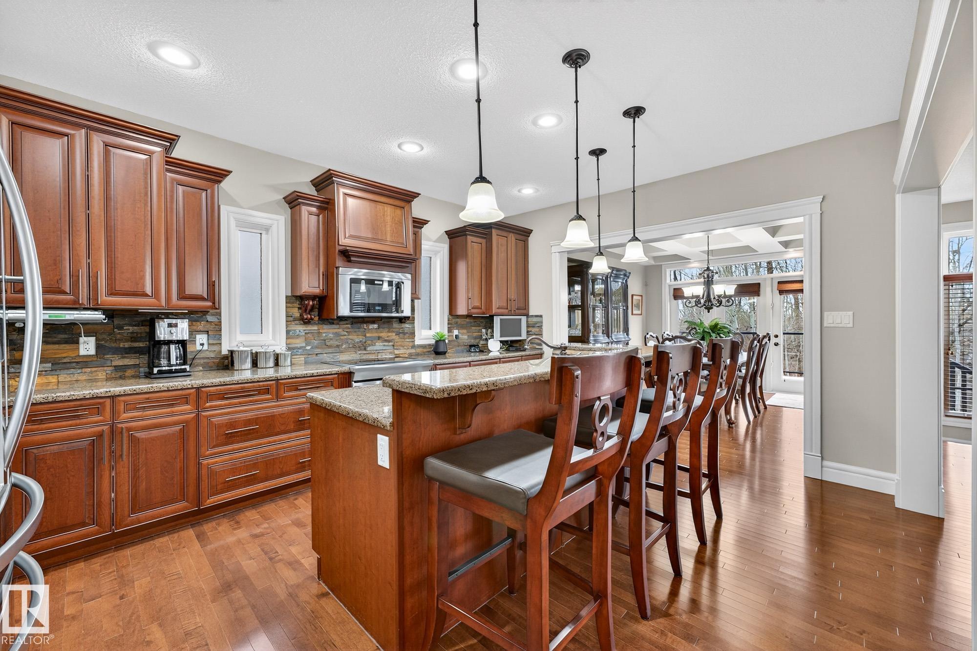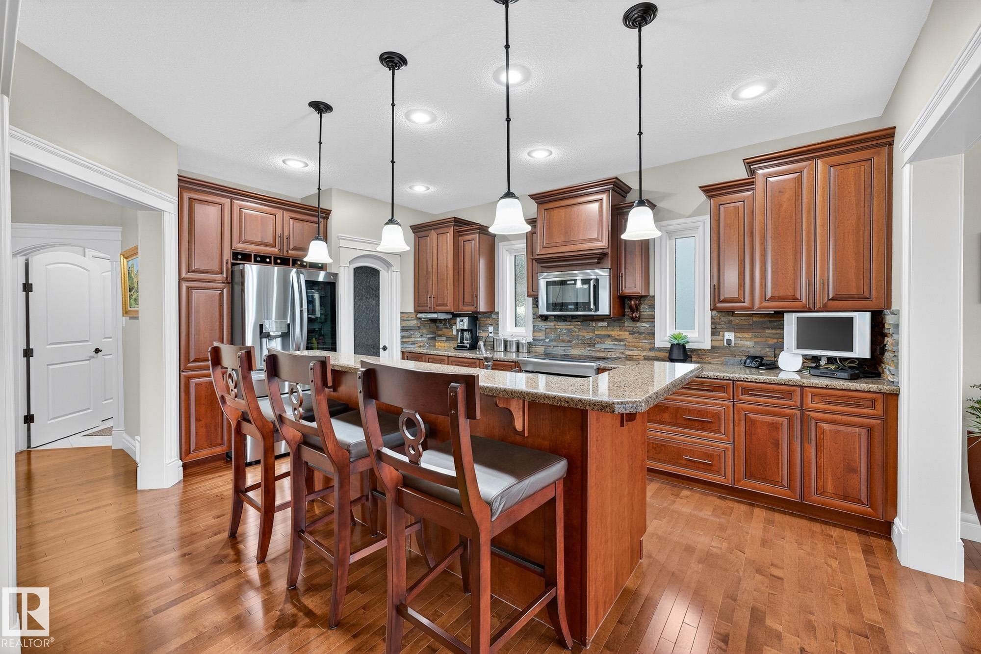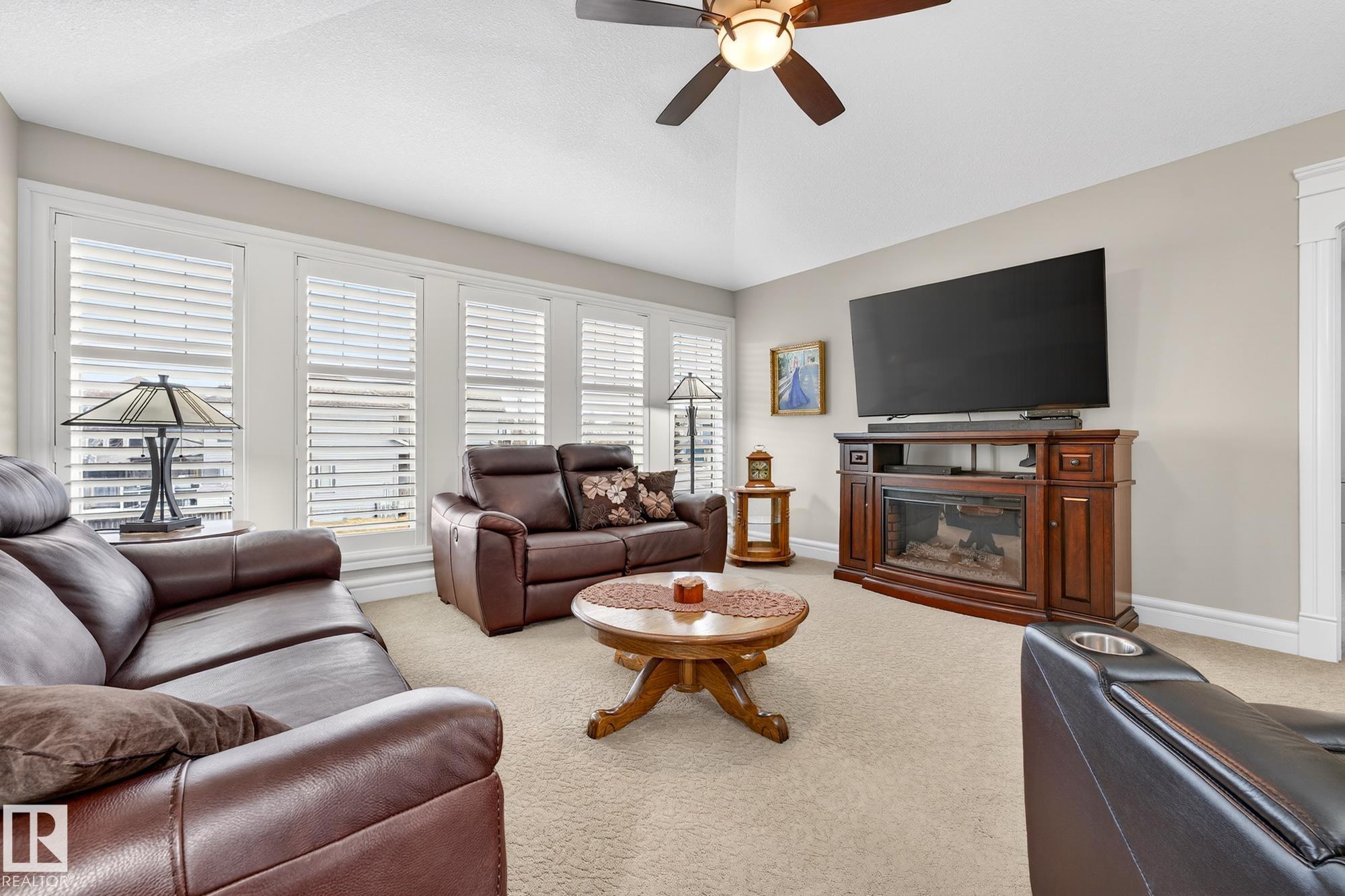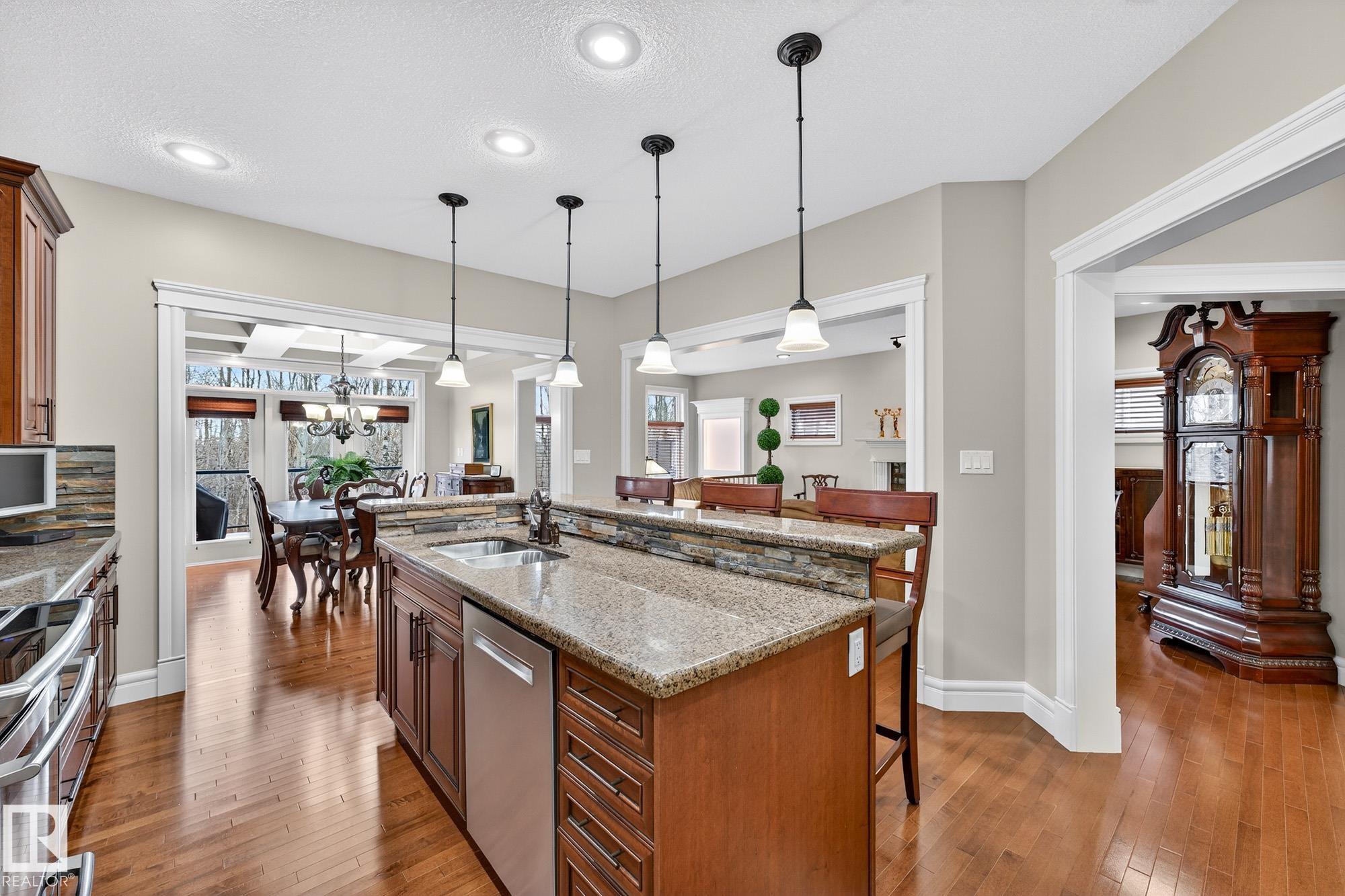 Welcome to your exceptional 2,700 ft2 luxury residence offering refined living with thoughtful design throughout! The main floor is perfect for entertaining and features elegant spaces that enjoy a gorgeous view of Sunfield Park, including the chef-inspired kitchen w/ granite countertops and rich cherrywood cabinetry, a stunning coffered ceiling in the dining room and cozy gas fireplace in the inviting living room. Upstairs, retreat to the grand primary suite, completed by a luxurious 5-piece spa ensuite with in-floor heating. The newly finished walk-out basement opens onto the park, has radiant heat and delivers incredible versatility, offering a second kitchen, spacious family room, and a large bedroom with ensuite - ideal for a private suite. Outdoors, enjoy your professionally landscaped, maintenance-free yard, upgraded deck and stamped concrete lower patio. Countless upgrades, central A/C, and an oversized heated triple garage complete this impeccable home. A TRUE MUST SEE!