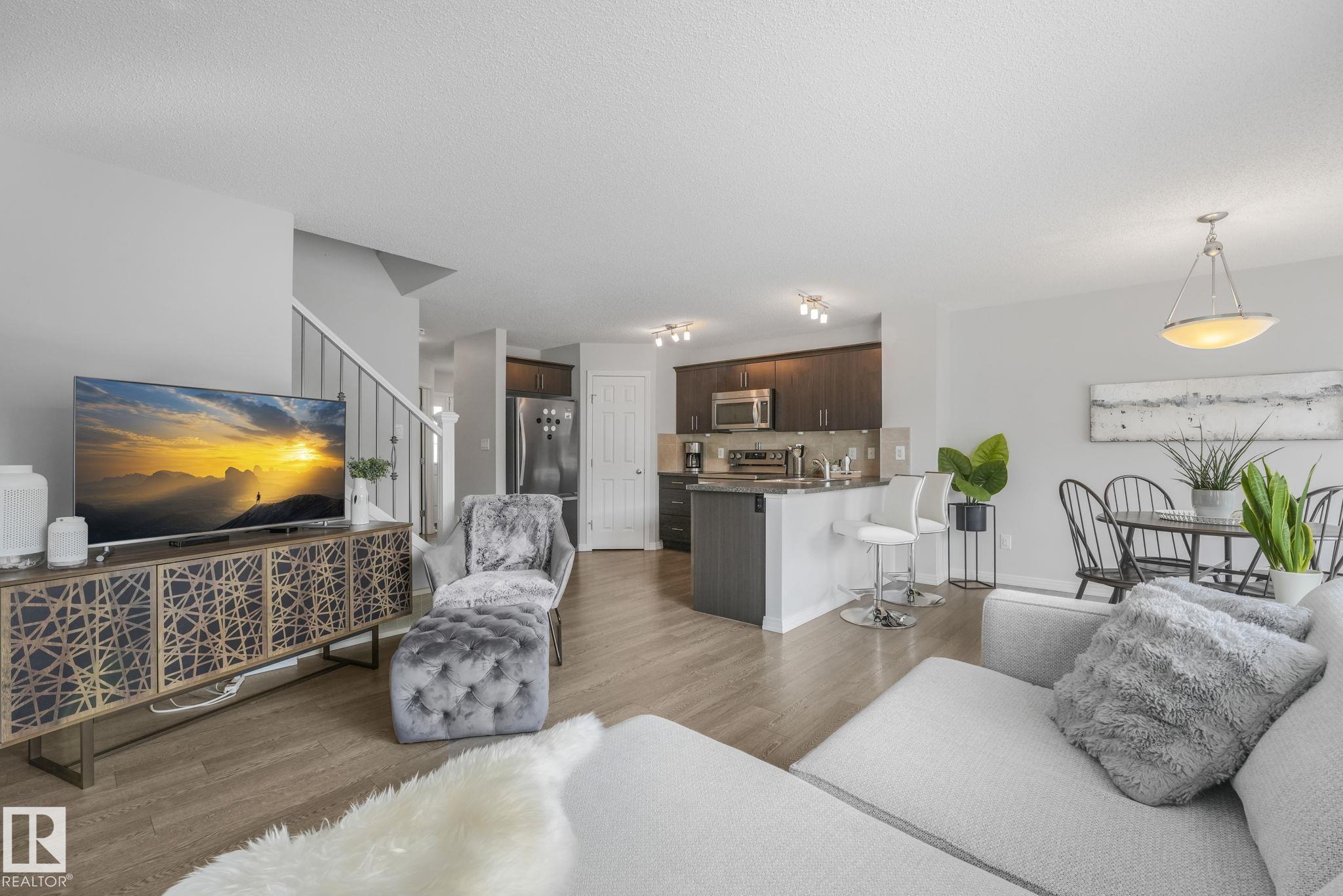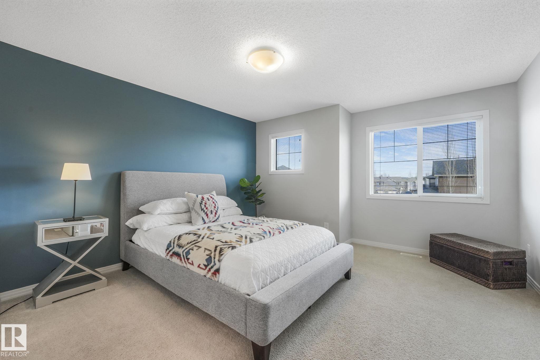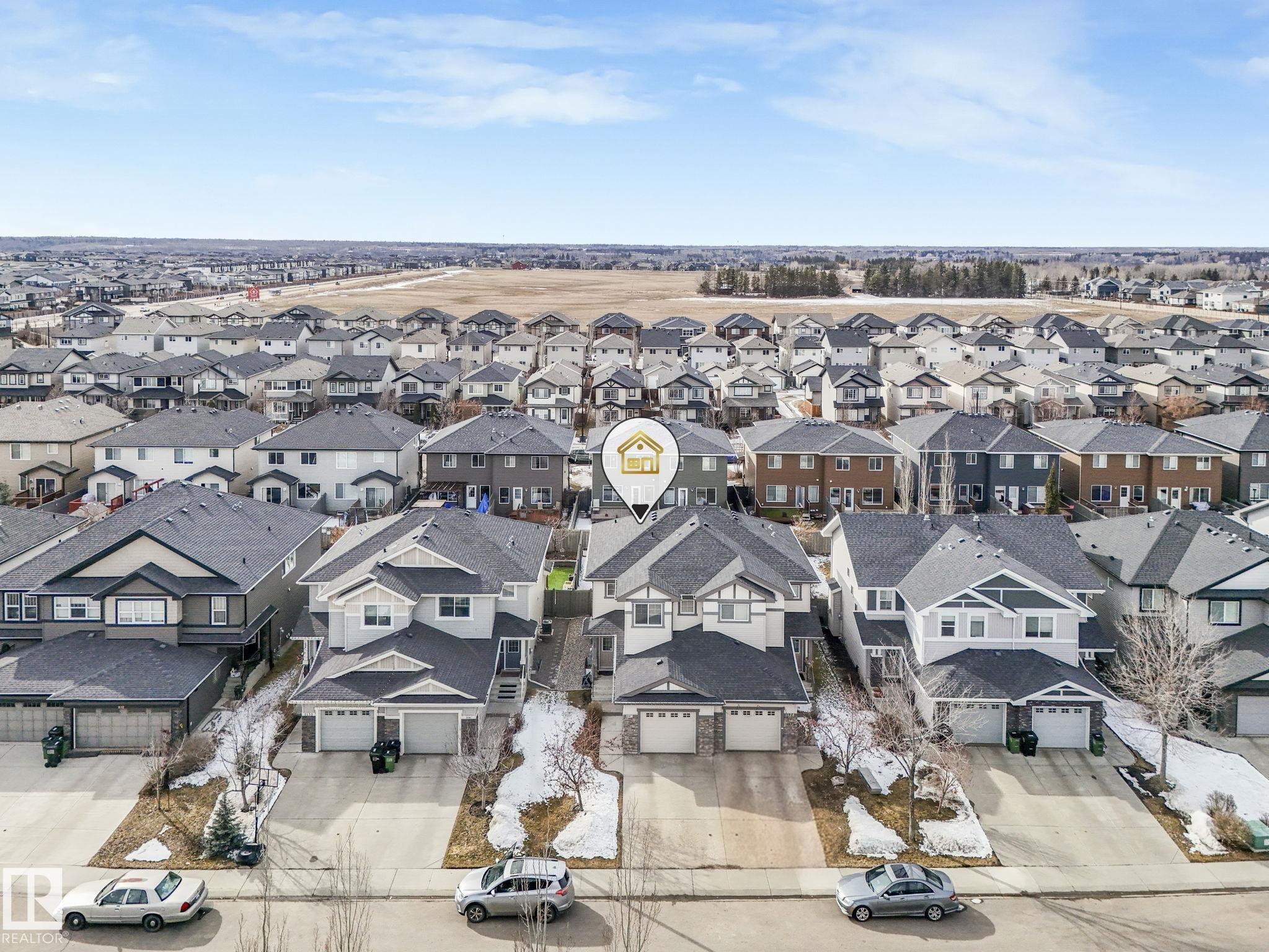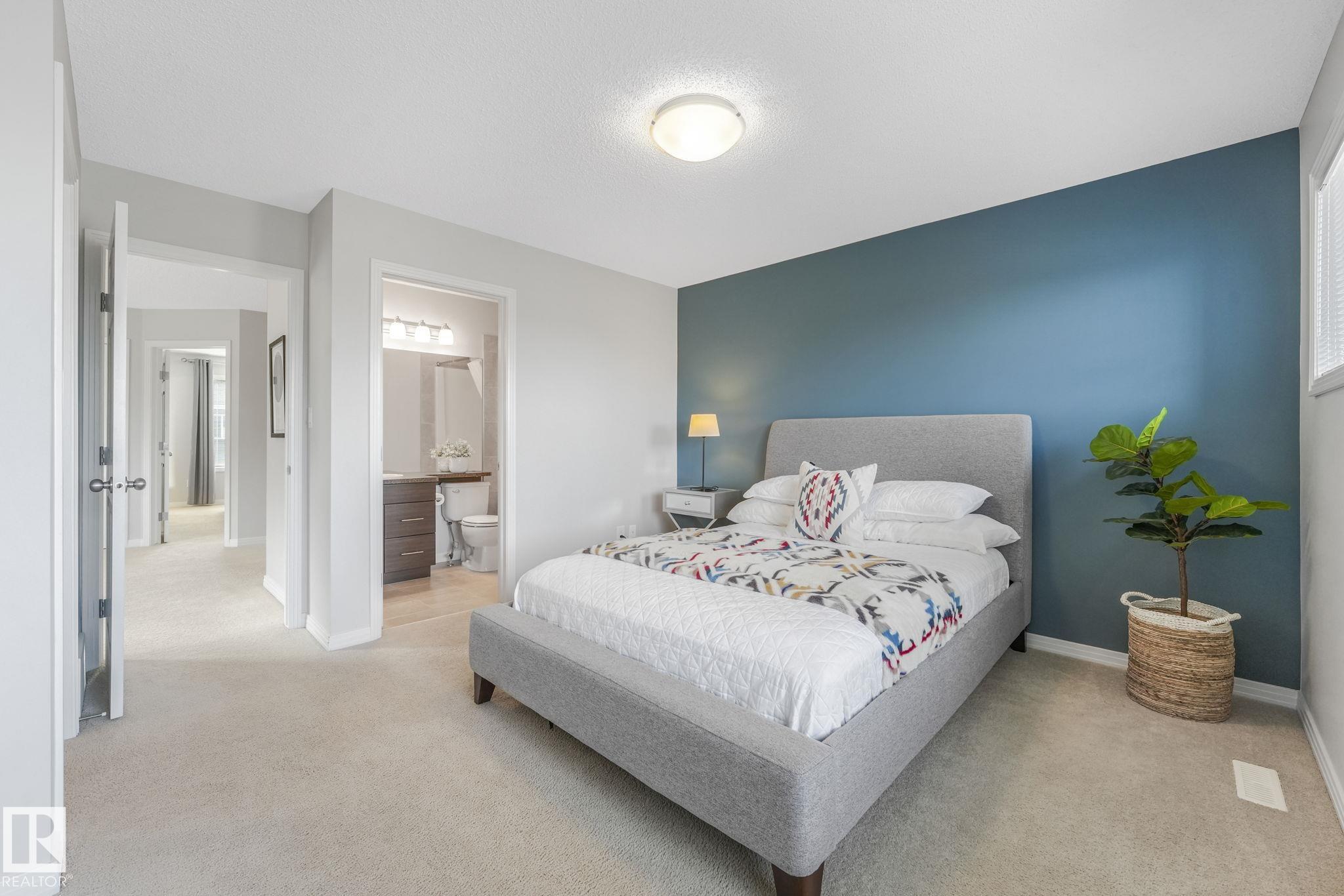 Welcome Home! This half duplex built by Bedrock Homes is immaculate and pride of ownership shows. Located in the heart of Windermere on a quiet street, the open concept main floor offers over 1400 sq.ft of stylish living space perfect for entertaining and/or relaxing. The spacious kitchen has plenty of storage space, upgraded cabinets, s.s appliances and a walk-in pantry. The bright living room and dining area overlook the lovely west facing yard complete with a deck & pergola. A separate laundry room and 1/2 bath finish off the main floor. Leading to the upstairs you'll find 2 generous sized primary bedrooms complete with ensuites and walk-in closets conveniently separated with a bonus/flex area. Upgrades throughout the home include, TRIPLE PANE WINDOWS, CENTRAL A/C, Stove (2025), Dishwasher (2025), Washer & Dryer (2025), feature wall and much more. DON'T MISS OUT ON THIS GEM!