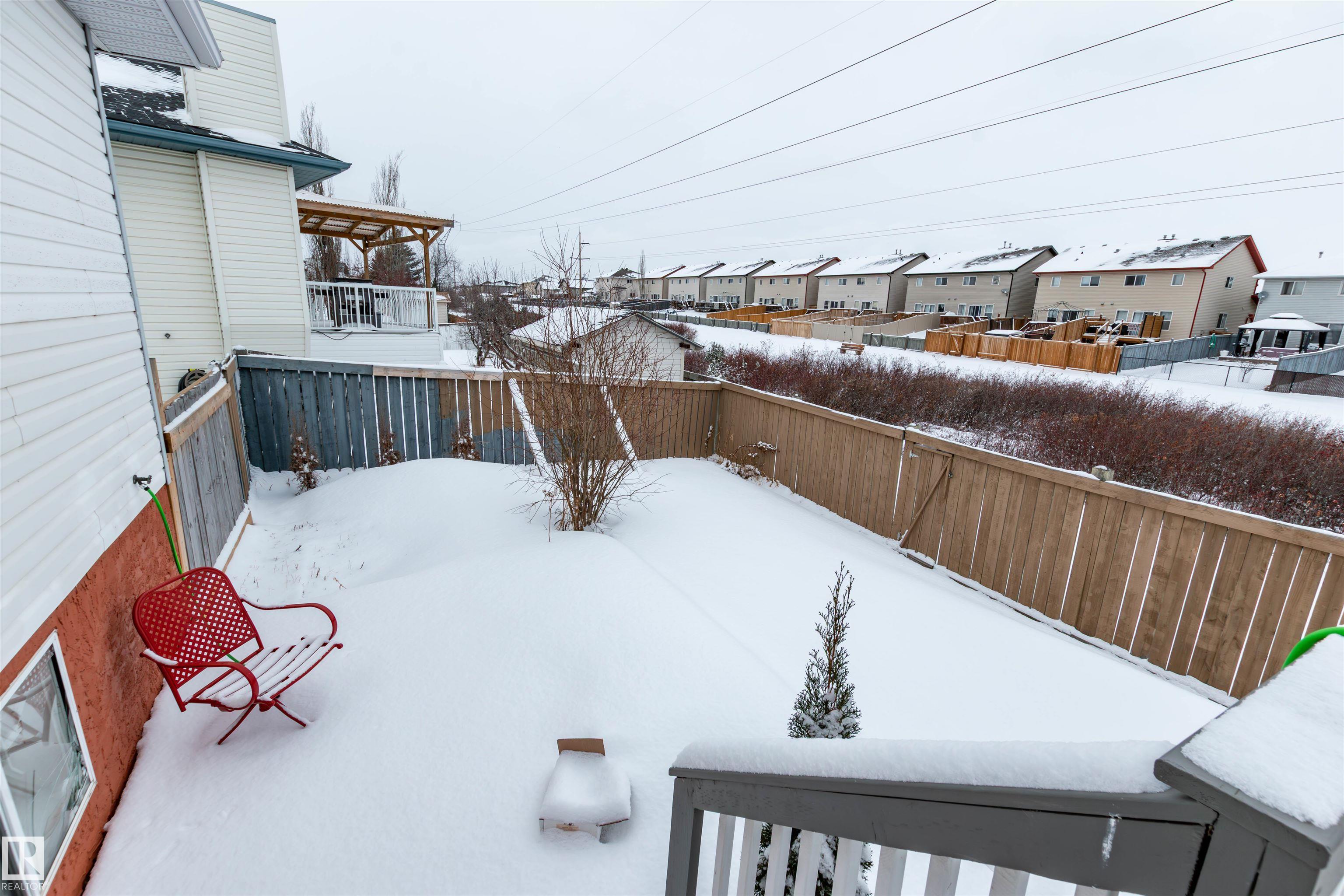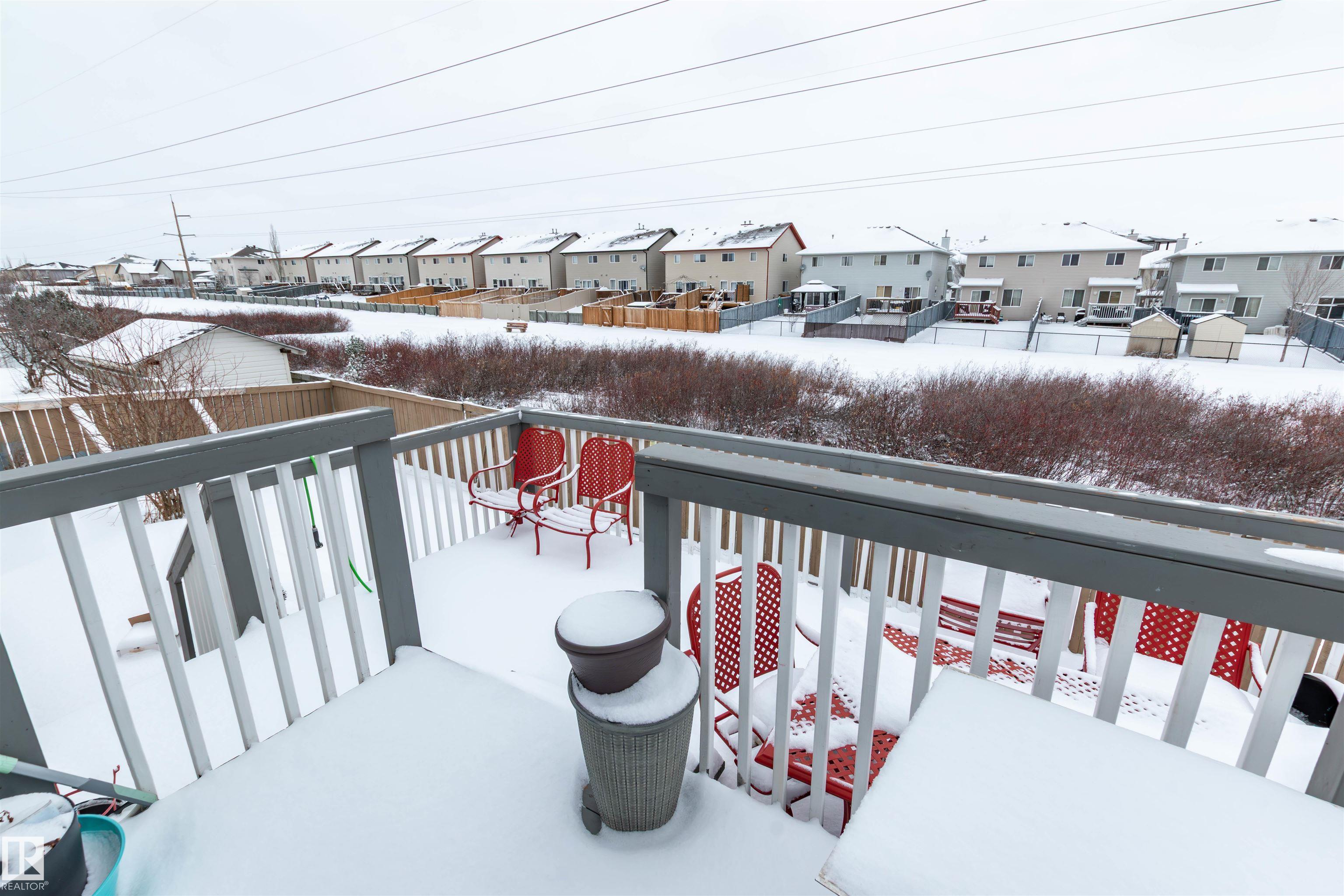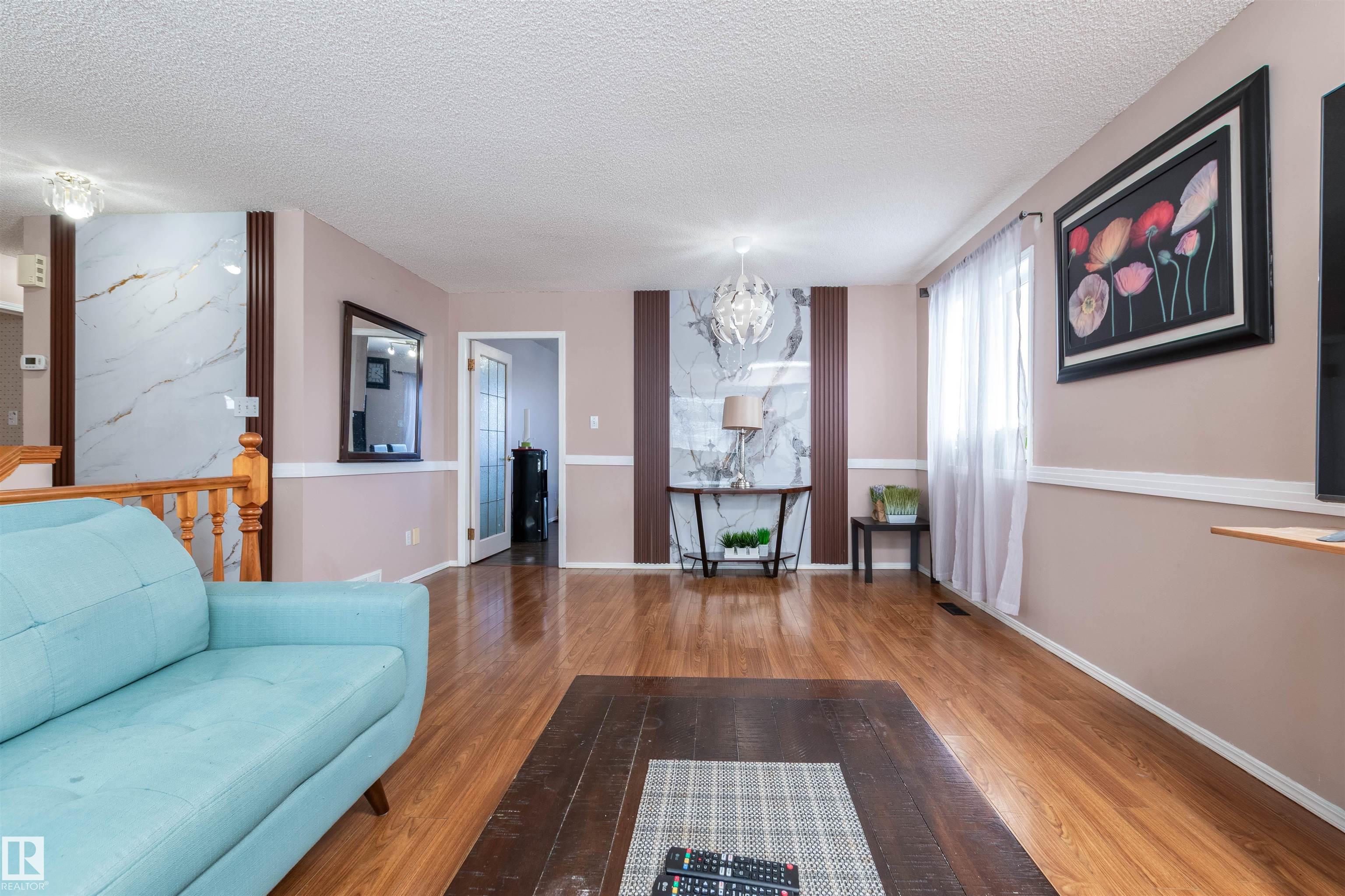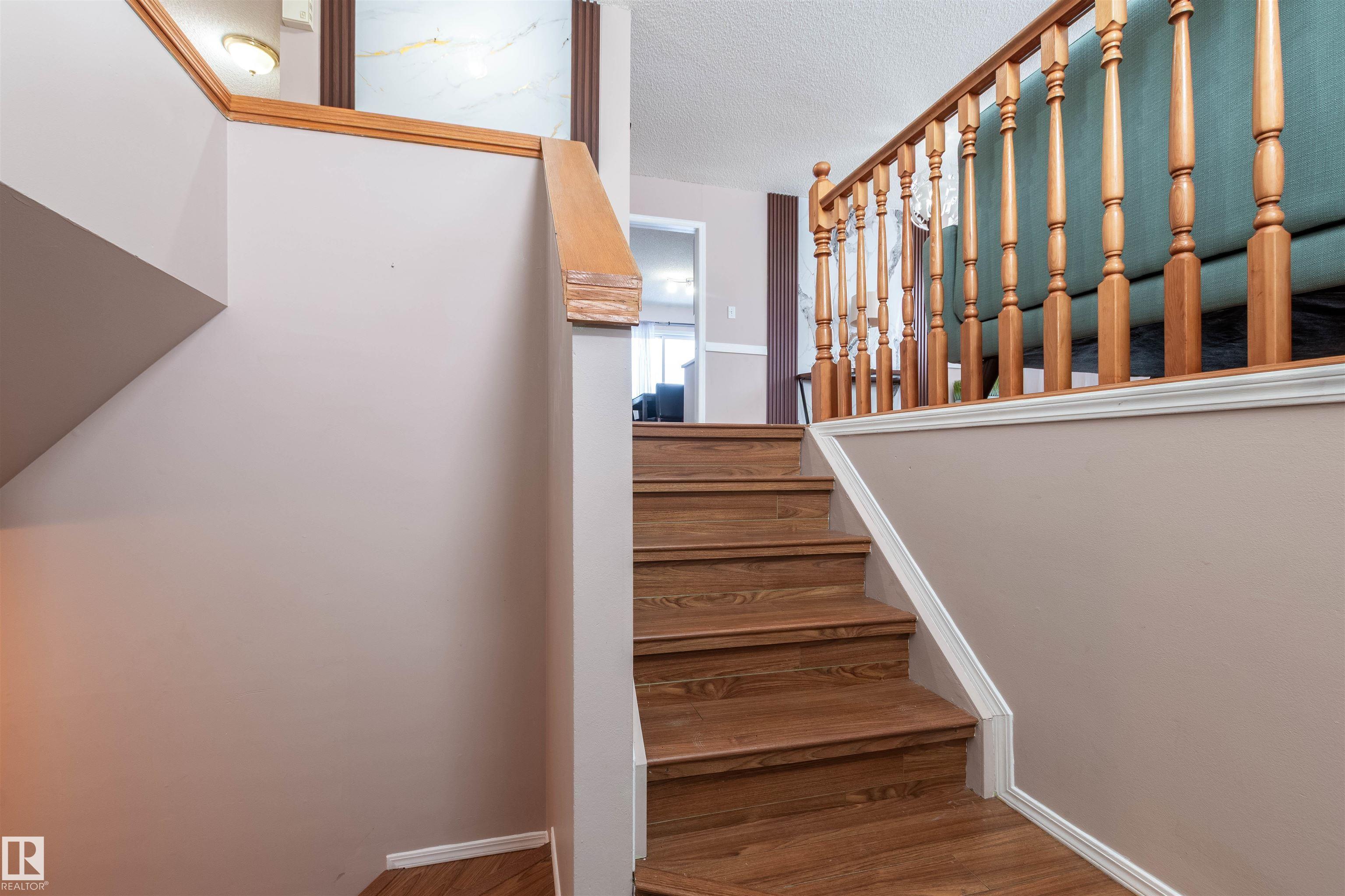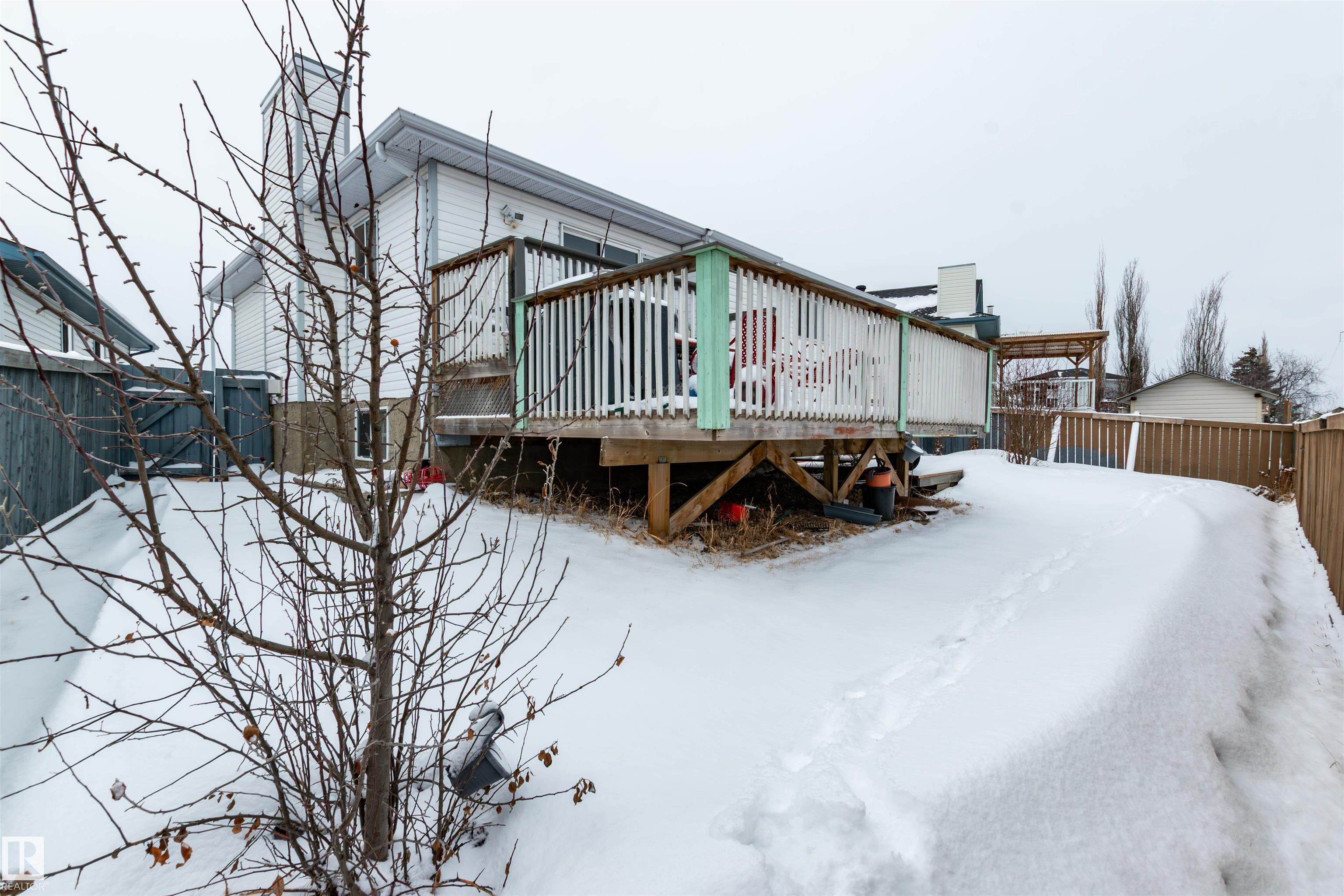 Tucked away in a cul-de-sac and backing onto a green belt, this bright and spacious bi-level in Matt Berry offers the perfect blend of comfort, function, and location. The main floor features a welcoming living room with a bay window and laminate flooring, a formal dining room, and a large kitchen with eating area, corner walk-in pantry, and patio doors leading to the impressive two-tiered deck. There are 3 good-sized bedrooms up, including a generous primary suite with walk-in closet and 4-piece ensuite. The fully finished basement adds even more living space with a large family room featuring a gas fireplace, a big 4th bedroom with walk-in closet, a den with French doors, a 3-piece bath, and laundry area. Outside, enjoy the fenced and landscaped yard with plenty of room to relax, entertain, and enjoy the peaceful setting. Close to schools, shopping, parks, and public transit.
