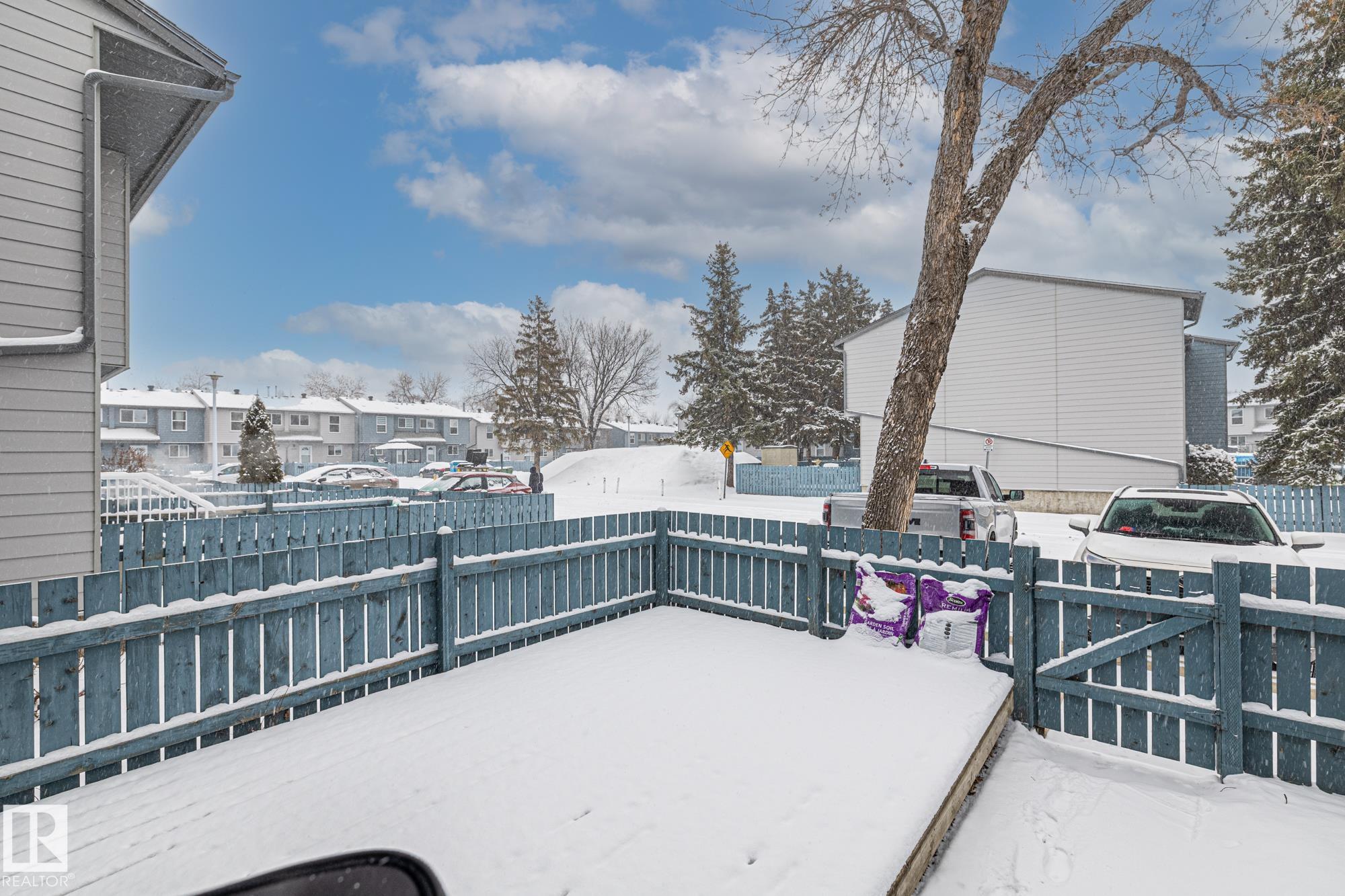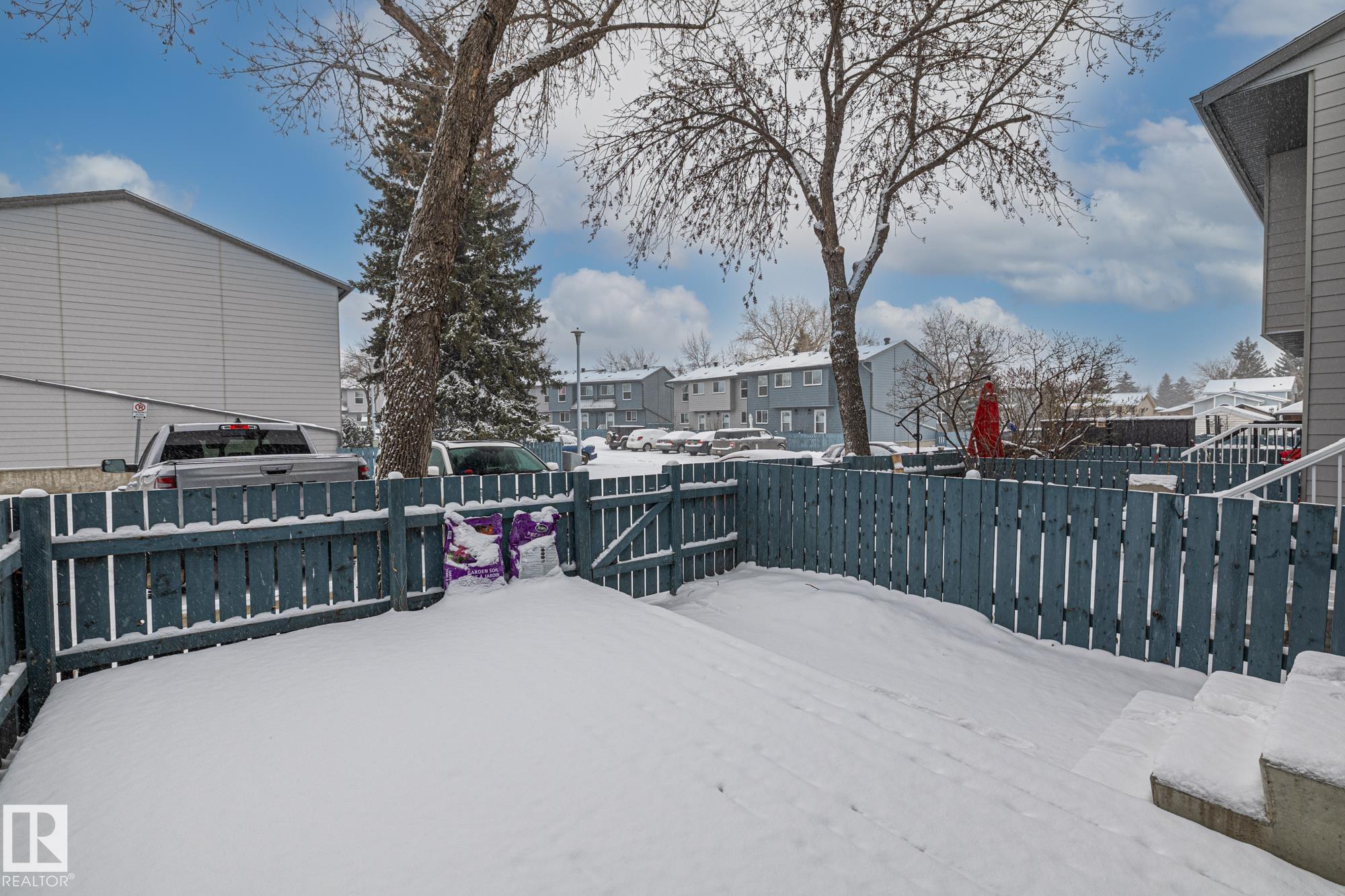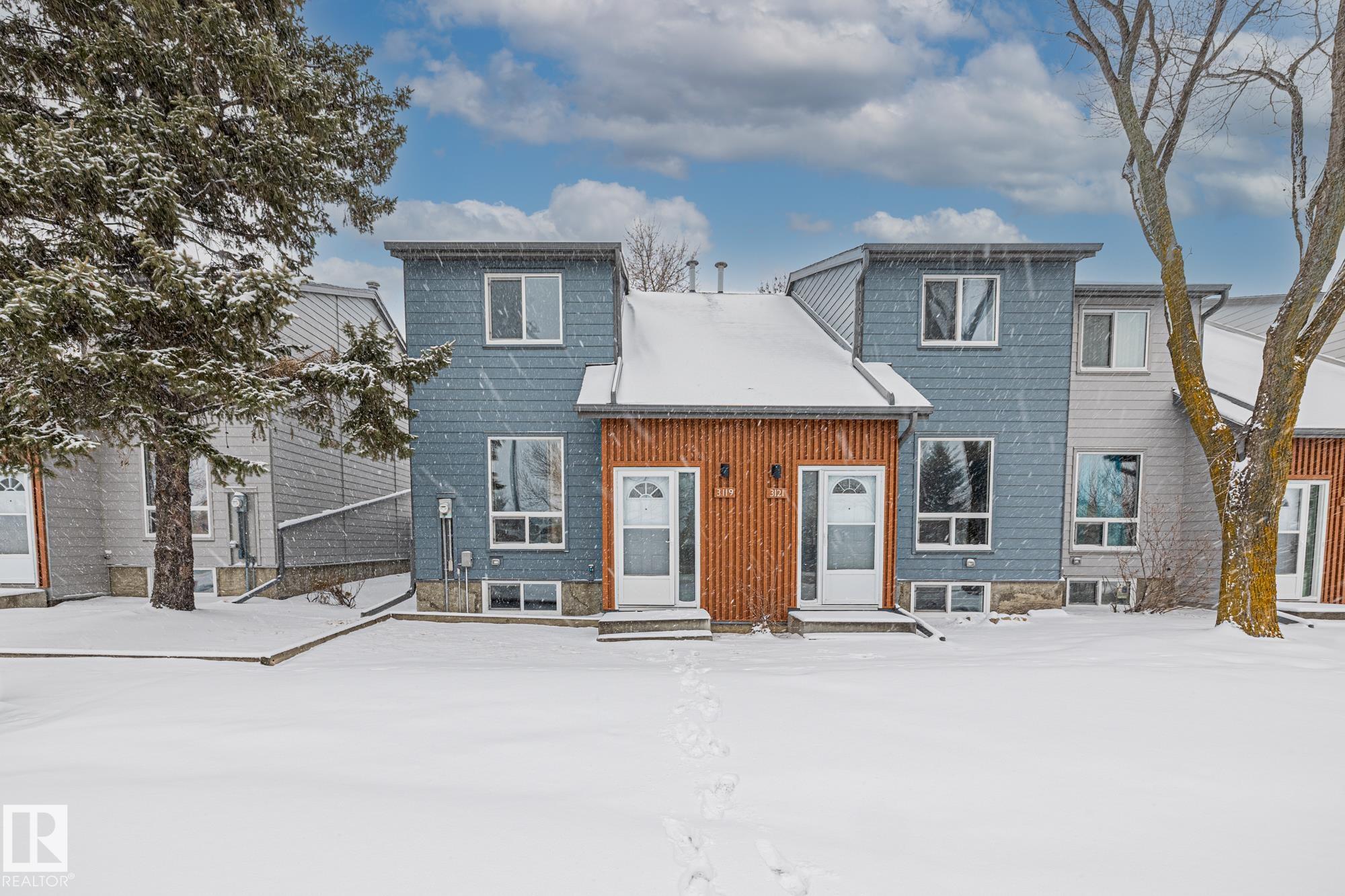 Welcome to Cedarwood Village! a well-managed complex that has been completely redone on the exterior, now offering a modern, sophisticated look. The complex has also benefited from major upgrades, including newer windows, exterior doors, and shingles. Inside, this freshly painted home is exceptionally well-kept and features newer stainless steel appliances, along with durable laminate flooring throughout the main floor and carpeting upstairs. Both bathrooms have been tastefully updated with modern sinks, countertops, and an upgraded tub surround. Large deck in the back yard. The fully developed basement offers a fun retro vibe with pine and stucco finishes, a built-in bar, and a convenient storage room?an ideal space for kids or entertaining. Located in a highly desirable area, this unit is close to shopping, schools, and public transportation, and the parking stall is right out the back door making it a perfect blend of comfort and convenience.