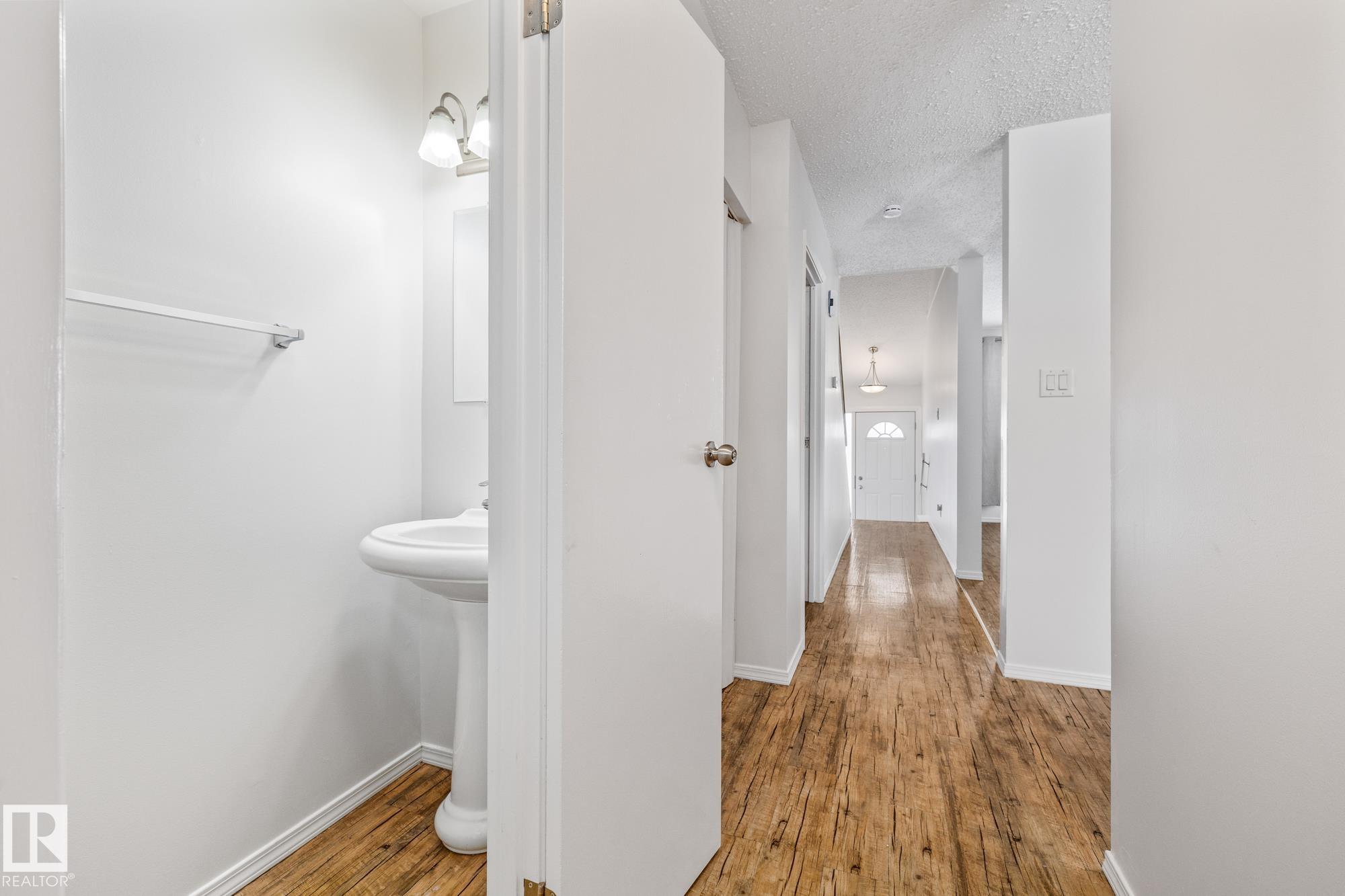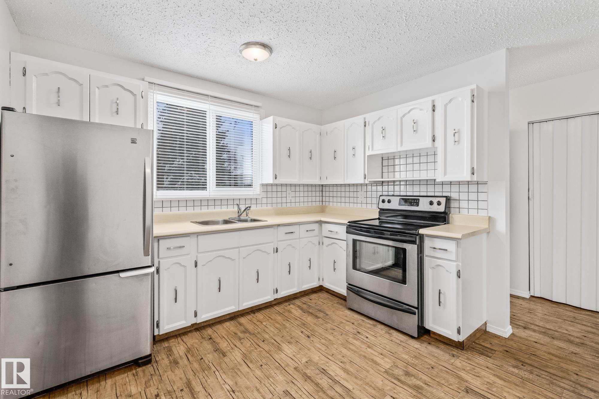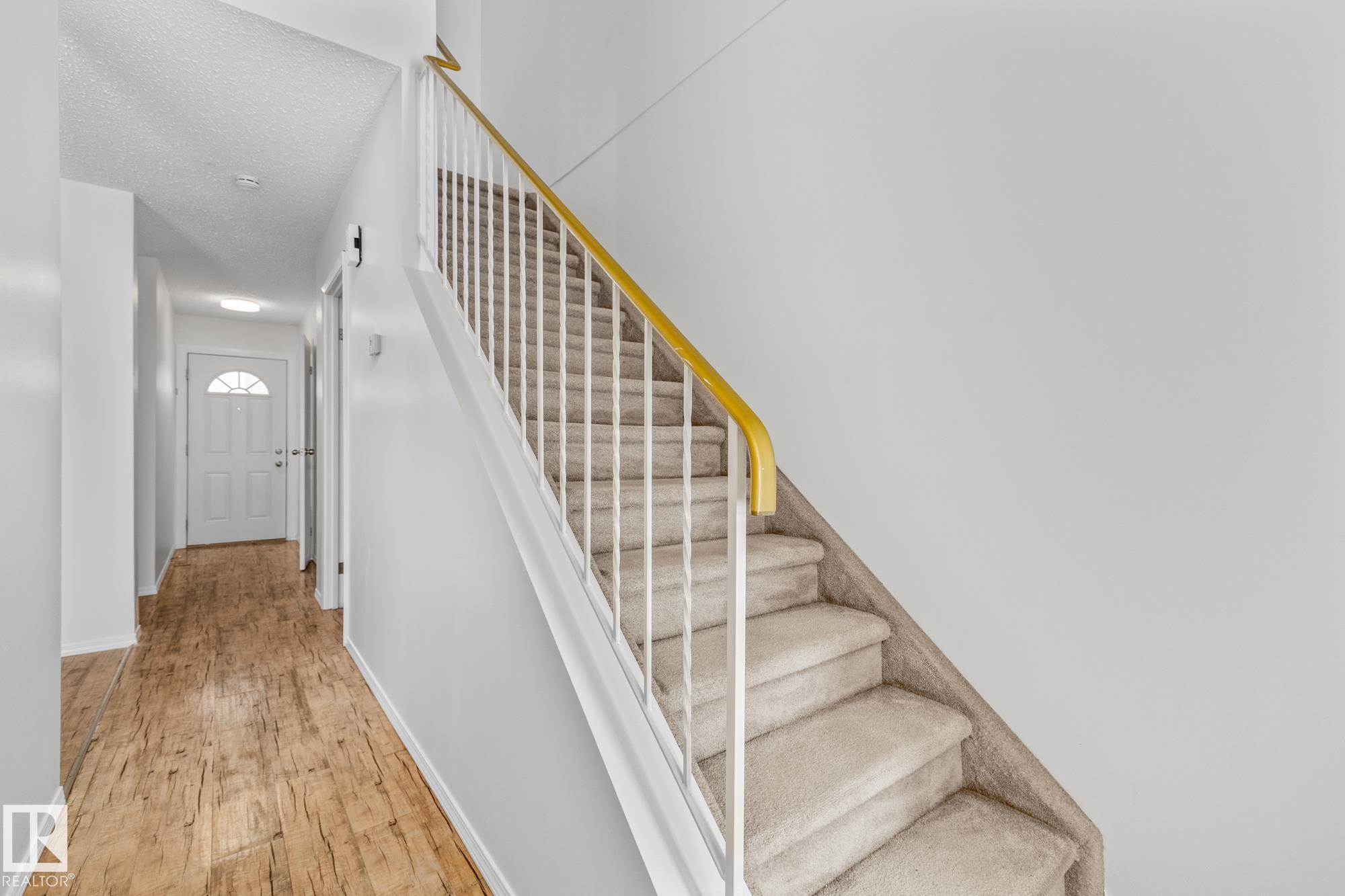 Welcome to Cedarwood Village! a well-managed complex that has been completely redone on the exterior, now offering a modern, sophisticated look. The complex has also benefited from major upgrades, including newer windows, exterior doors, and shingles. Inside, this freshly painted home is exceptionally well-kept and features newer stainless steel appliances, along with durable laminate flooring throughout the main floor and carpeting upstairs. Both bathrooms have been tastefully updated with modern sinks, countertops, and an upgraded tub surround. Large deck in the back yard. The fully developed basement offers a fun retro vibe with pine and stucco finishes, a built-in bar, and a convenient storage room?an ideal space for kids or entertaining. Located in a highly desirable area, this unit is close to shopping, schools, and public transportation, and the parking stall is right out the back door making it a perfect blend of comfort and convenience.