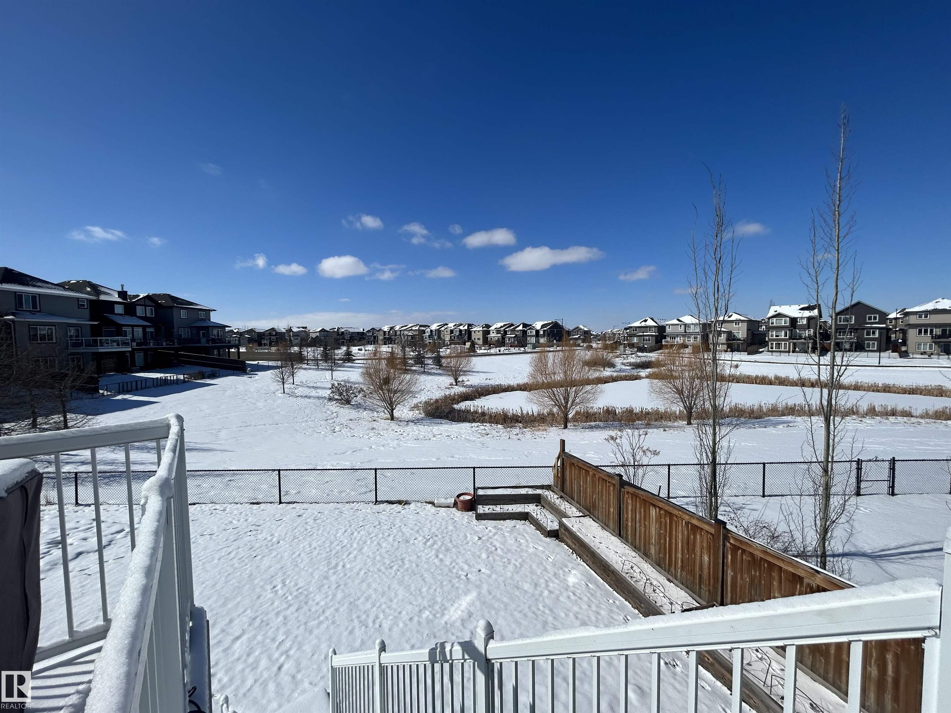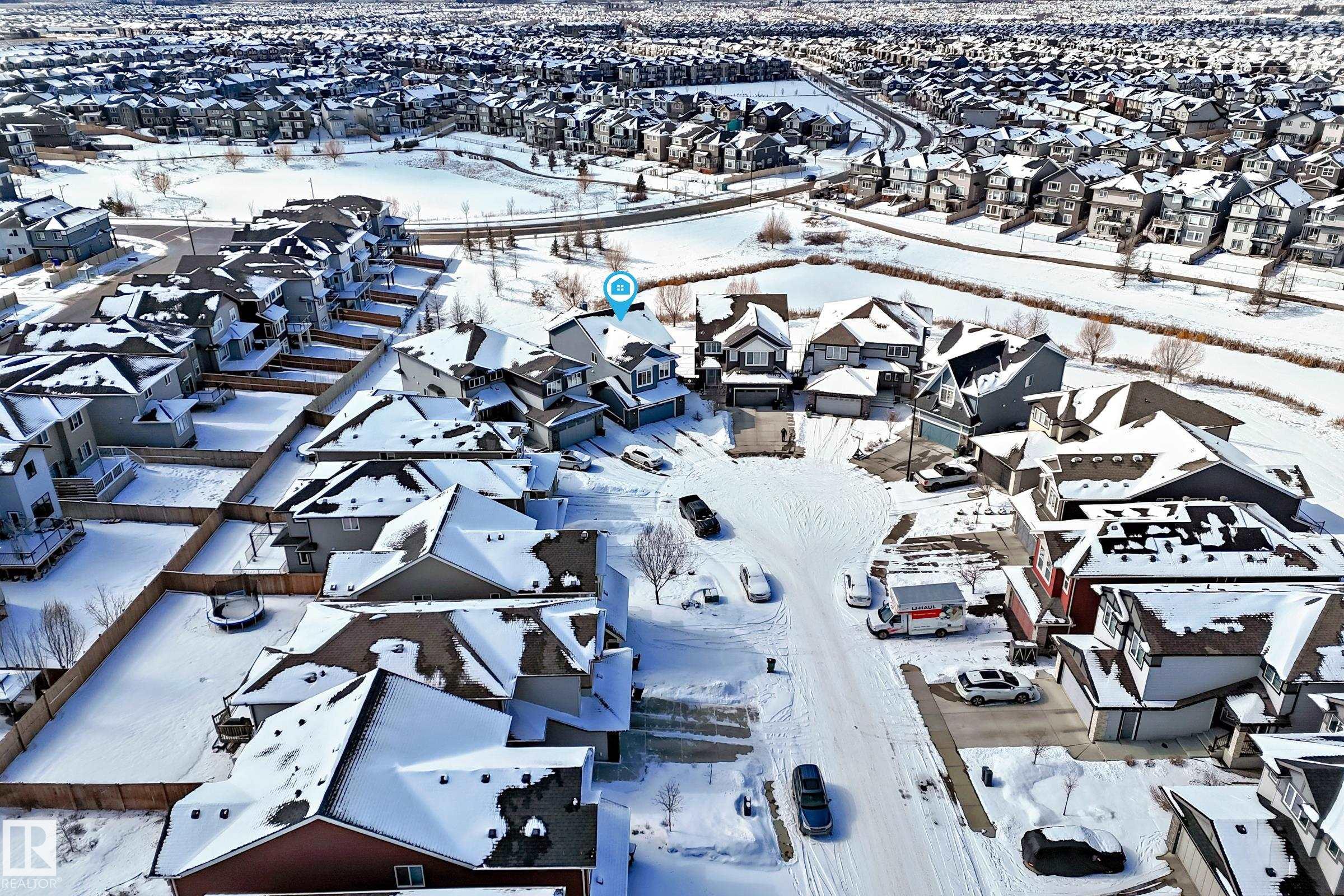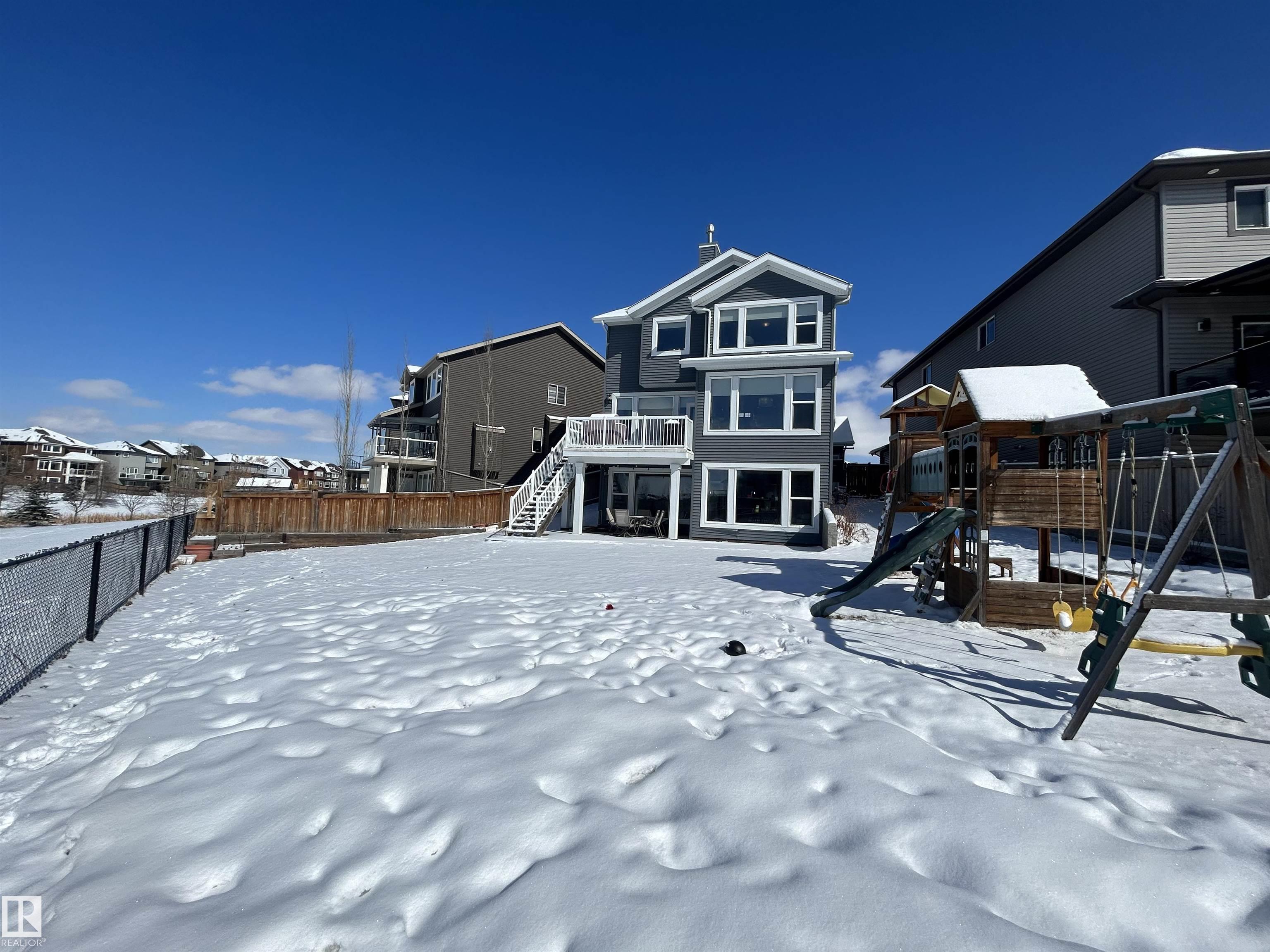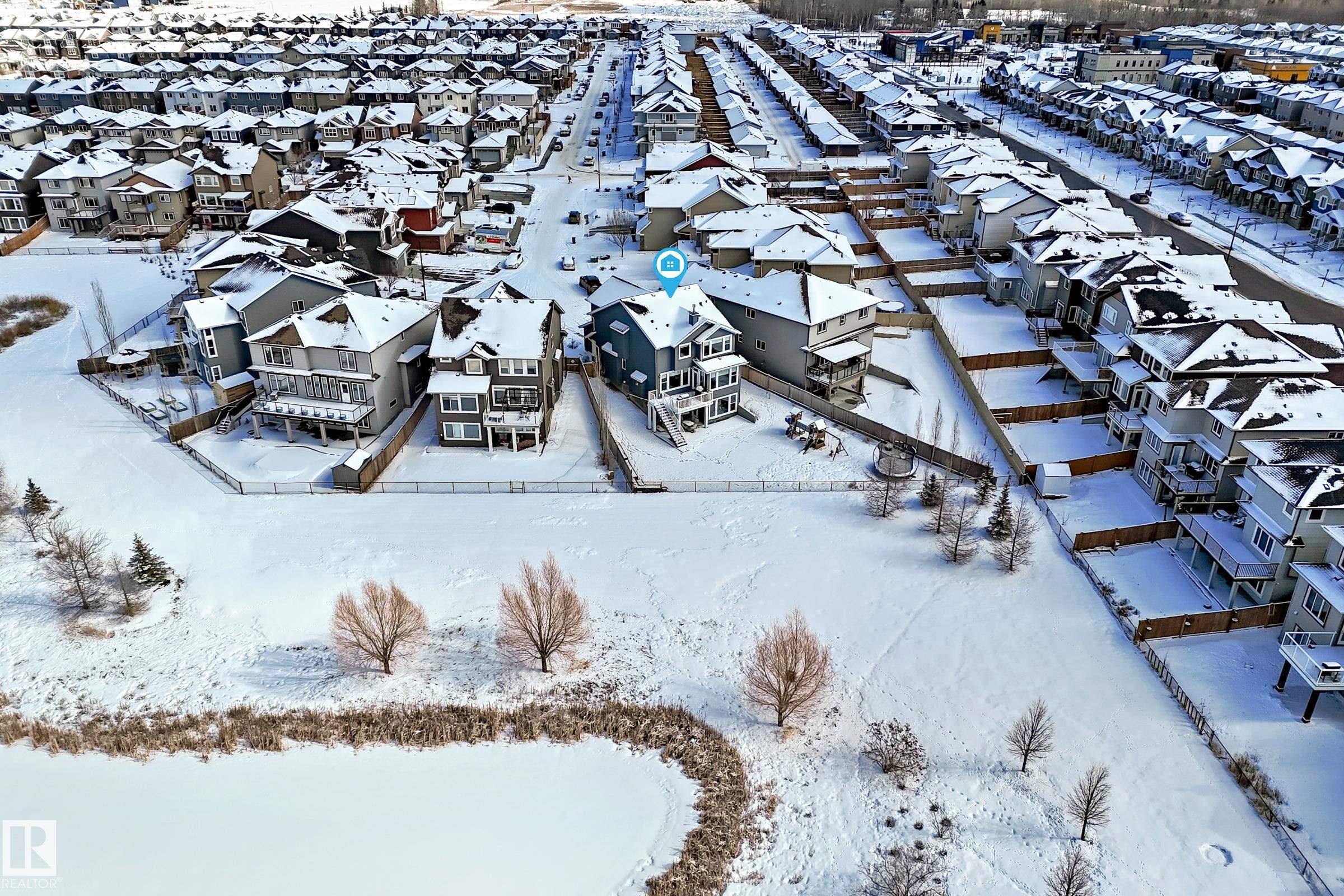 Amazing walk-out two story on a HUGE PIE LOT backing GREENSPACE/POND in a quiet cul-de-sac close to amenities and schools. The inviting, freshly painted, spacious main floor is flooded with natural light from the large west facing windows and has 9' ceilings. It features a gas fireplace, flex space for office or den, a luxury kitchen with granite countertops, separate coffee nook and entry onto the deck overlooking the pond... perfect for summer bbqs and sunset watching! The kitchen connects to the large back mudroom. Garage is oversized and heated. Upstairs you will find a massive bonus room, the master w/fireplace, walk in closet and spa like bathroom as well as 2 more bedrooms. A 4 pc bath and laundry room with tons of work space completes the upper level. The basement has heated floors and awaits your imagination. Walk out from the basement leads to the beautiful yard. Newer furnace and new A/C. Do NOT miss out on this amazing home that the whole family will love.