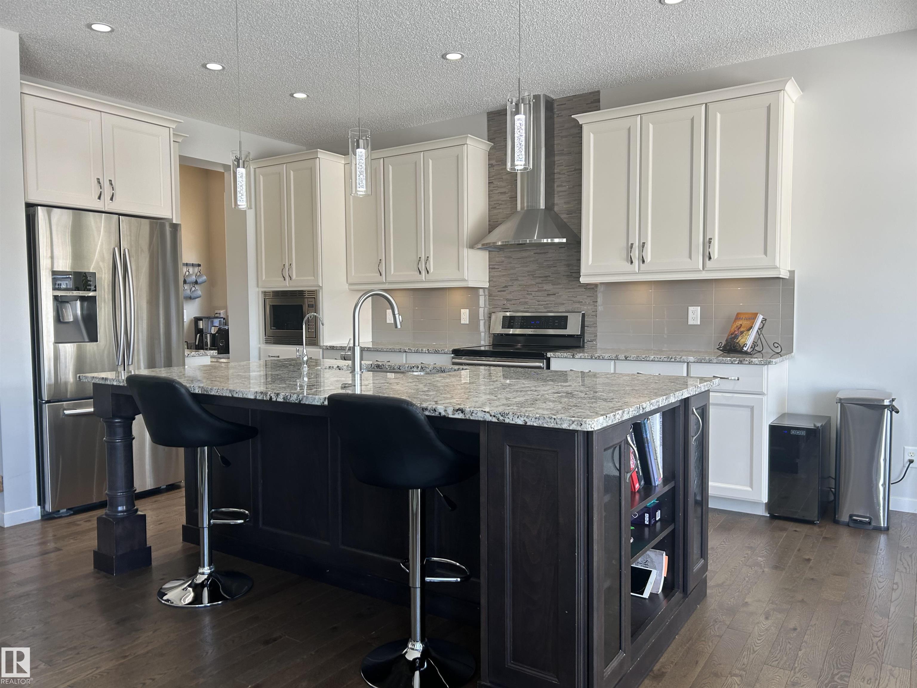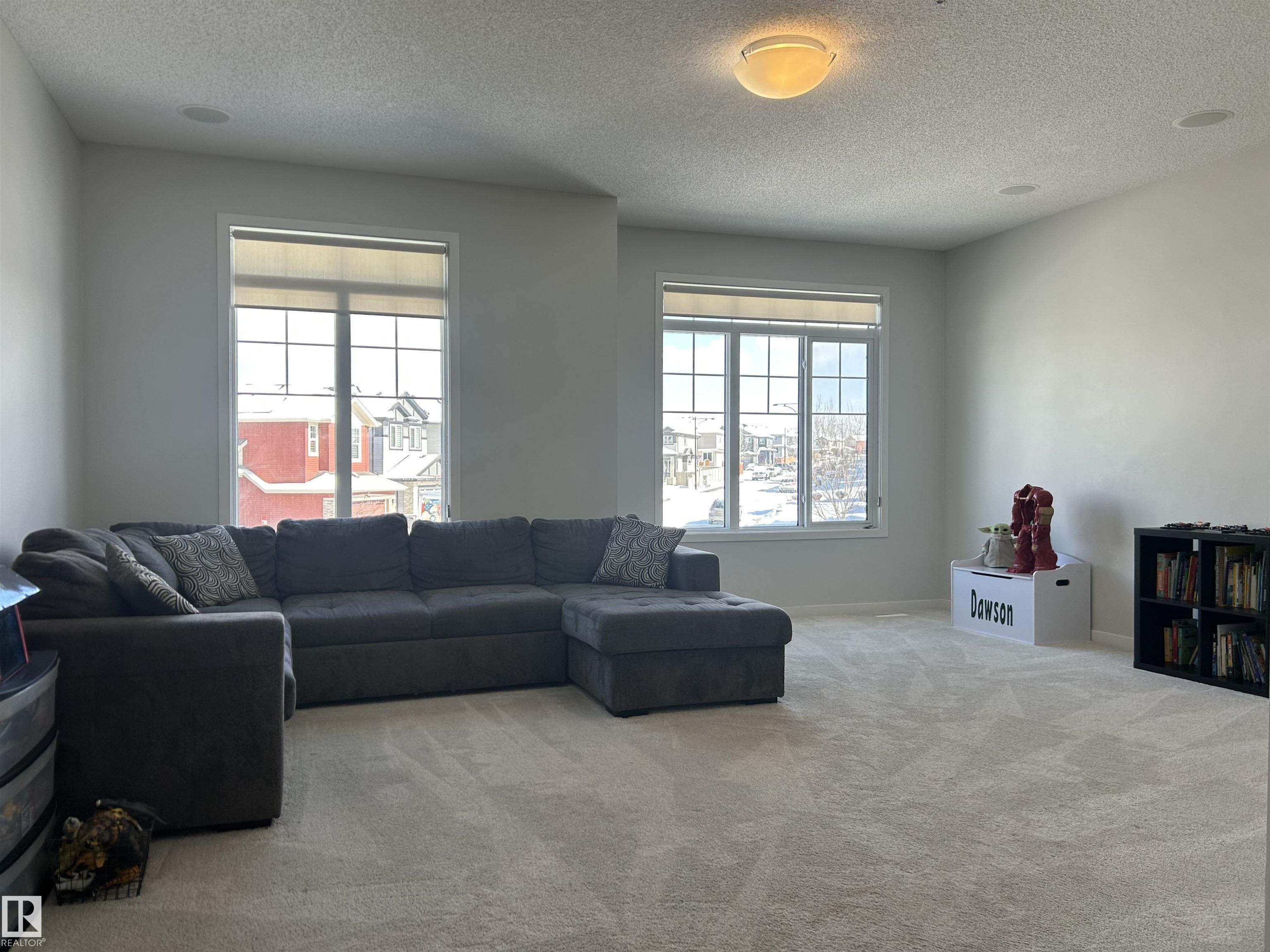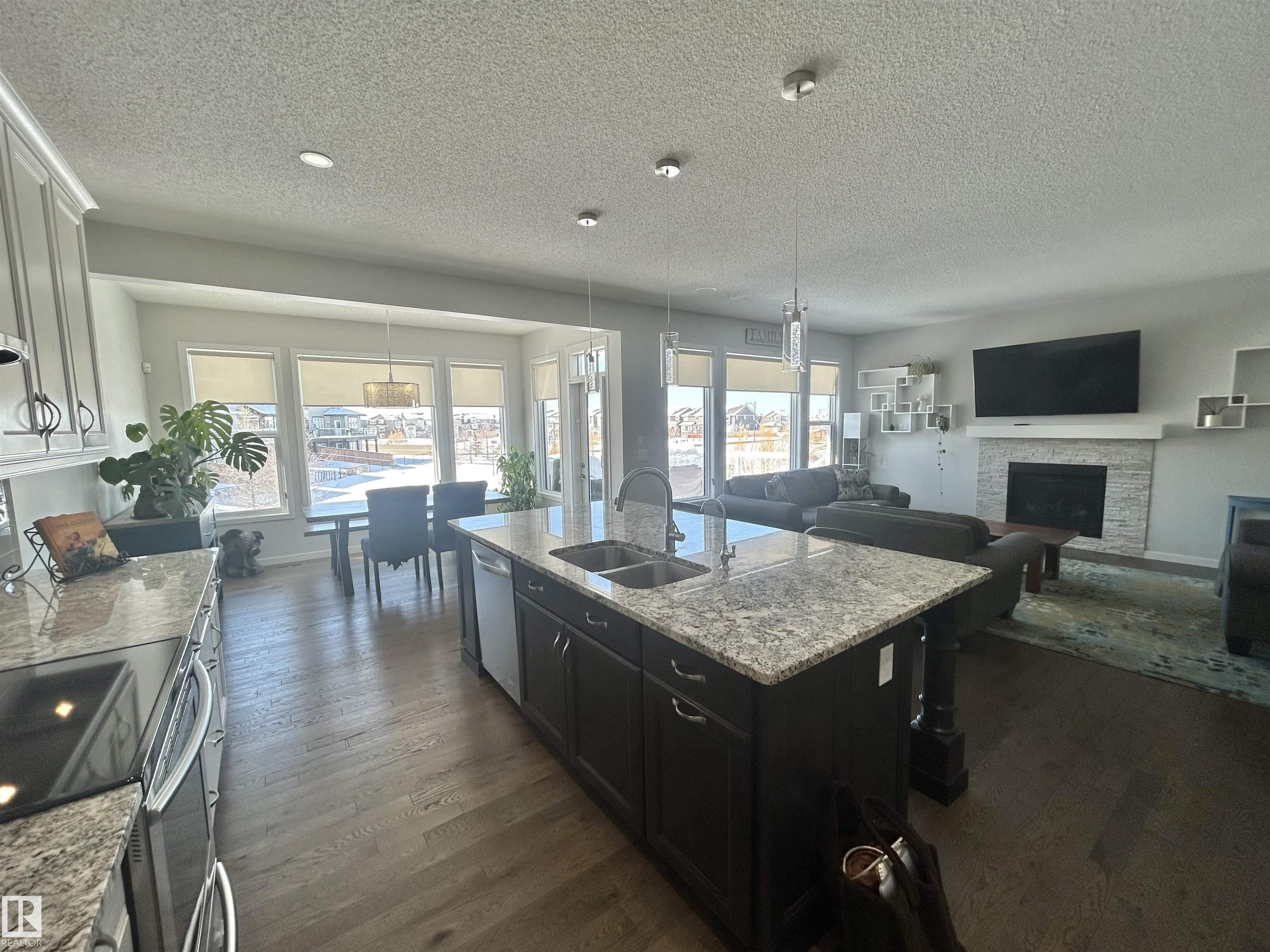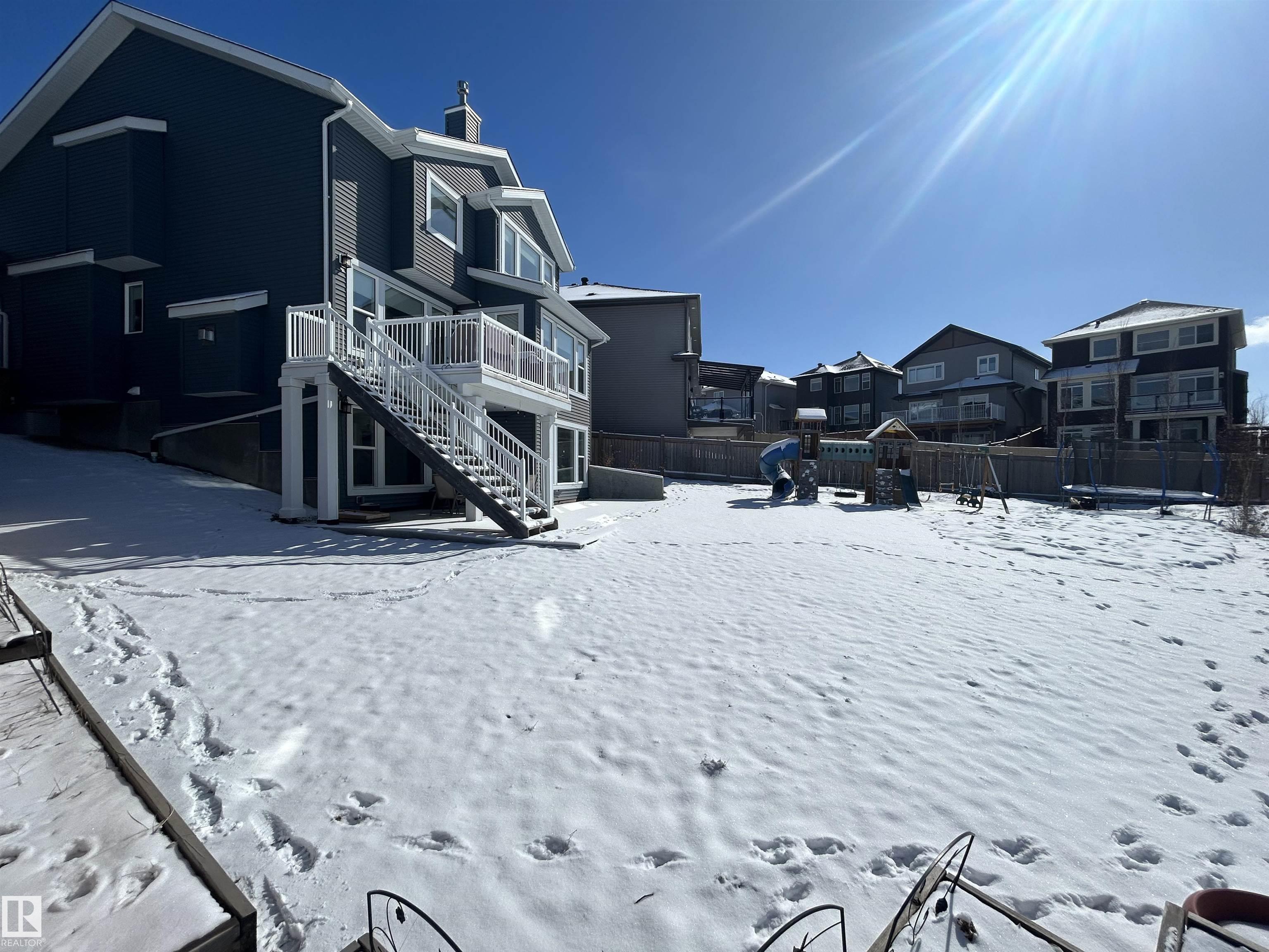 Amazing walk-out two story on a HUGE PIE LOT backing GREENSPACE/POND in a quiet cul-de-sac close to amenities and schools. The inviting, freshly painted, spacious main floor is flooded with natural light from the large west facing windows and has 9' ceilings. It features a gas fireplace, flex space for office or den, a luxury kitchen with granite countertops, separate coffee nook and entry onto the deck overlooking the pond... perfect for summer bbqs and sunset watching! The kitchen connects to the large back mudroom. Garage is oversized and heated. Upstairs you will find a massive bonus room, the master w/fireplace, walk in closet and spa like bathroom as well as 2 more bedrooms. A 4 pc bath and laundry room with tons of work space completes the upper level. The basement has heated floors and awaits your imagination. Walk out from the basement leads to the beautiful yard. Newer furnace and new A/C. Do NOT miss out on this amazing home that the whole family will love.