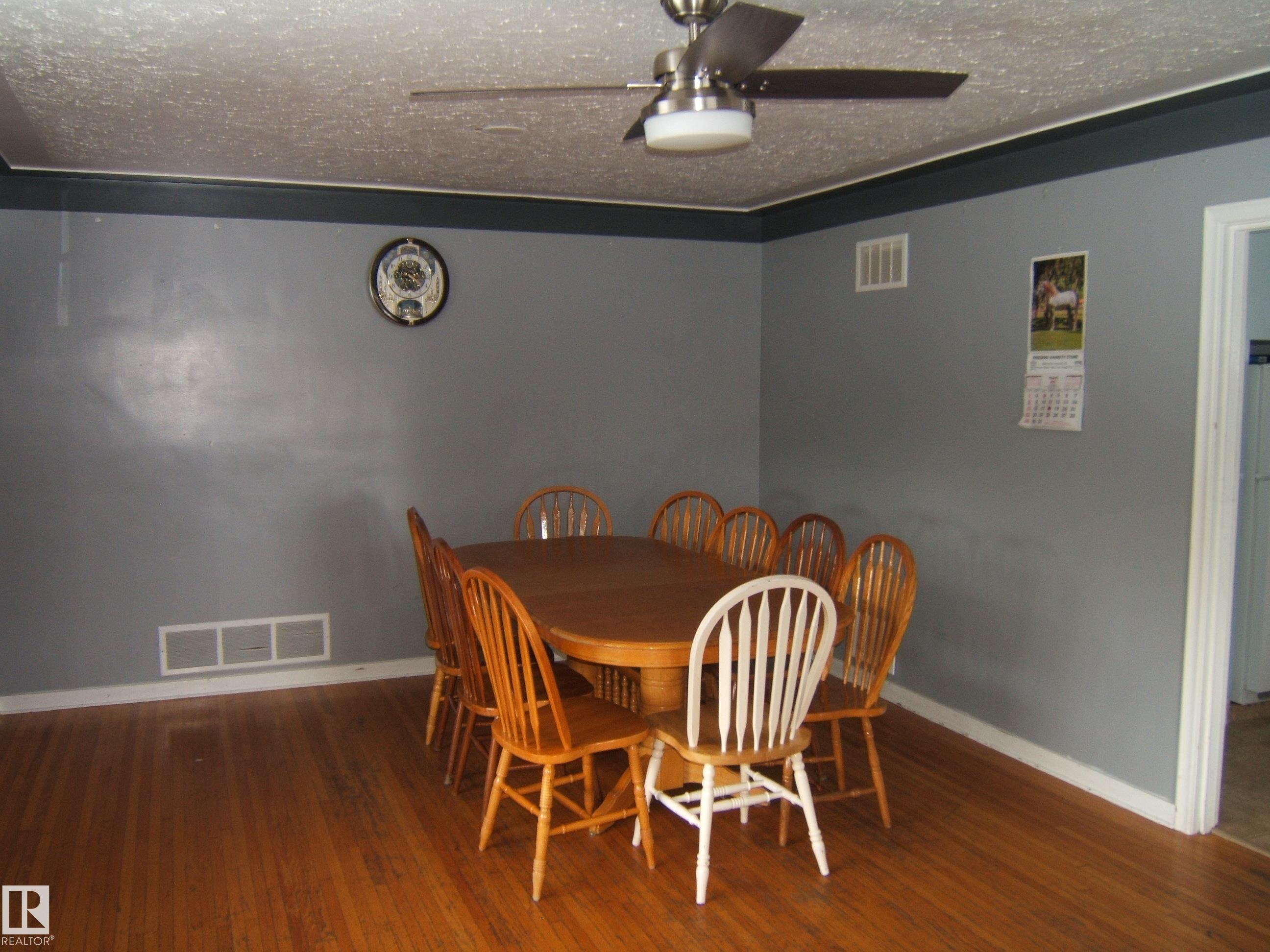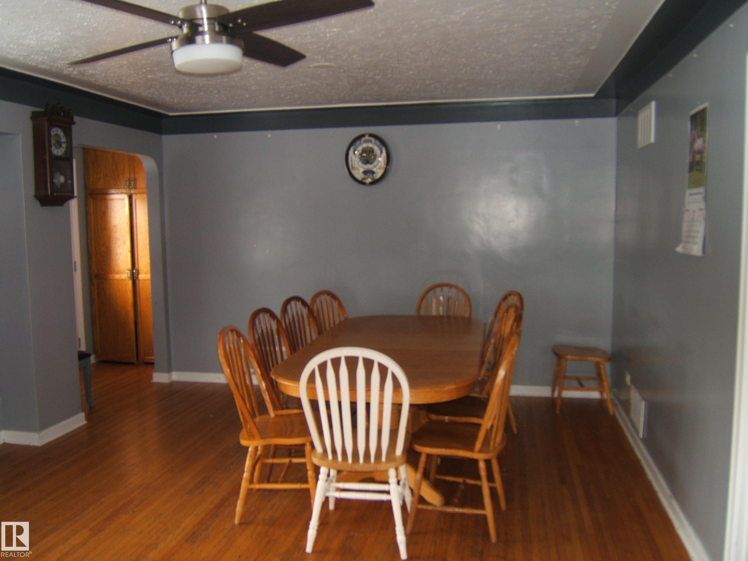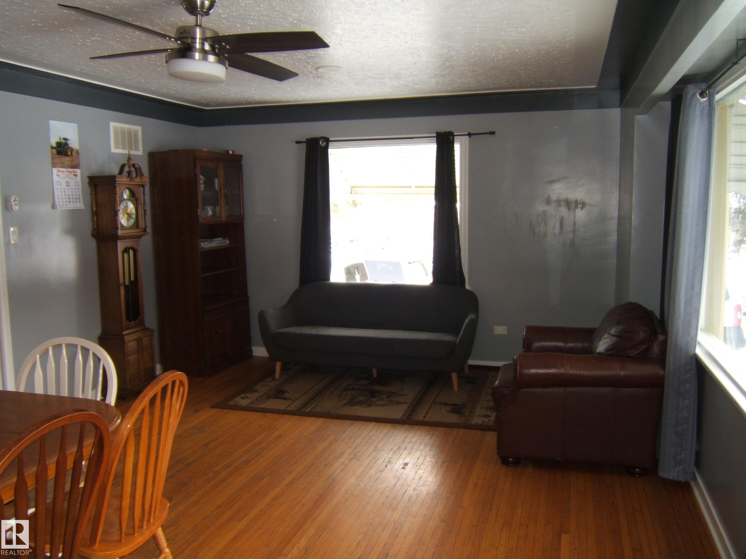 Location-Location! Family Home located only 1 Block from Shopping, a couple of blocks from schools and a short walk to most amenities in the Friendly Community of Two Hills. 11325 sq. ft. lot gives you plenty of space for family activities, garden, your RV-Trailers and still room to for a garage/shop. Upgrades in recent years include, shingles, vinyl siding, insulated entrance doors, paint, laminate flooring 100 amp electrical panel box and a new hot water tank in 2026. Main floor features kitchen, dining room,4 piece bathroom, 2 bedrooms and living room with the original hard wood flooring! Basement includes laundry room, bathroom, bedrooms, utility room and a sitting area. Great home for a young family or retirement couple!